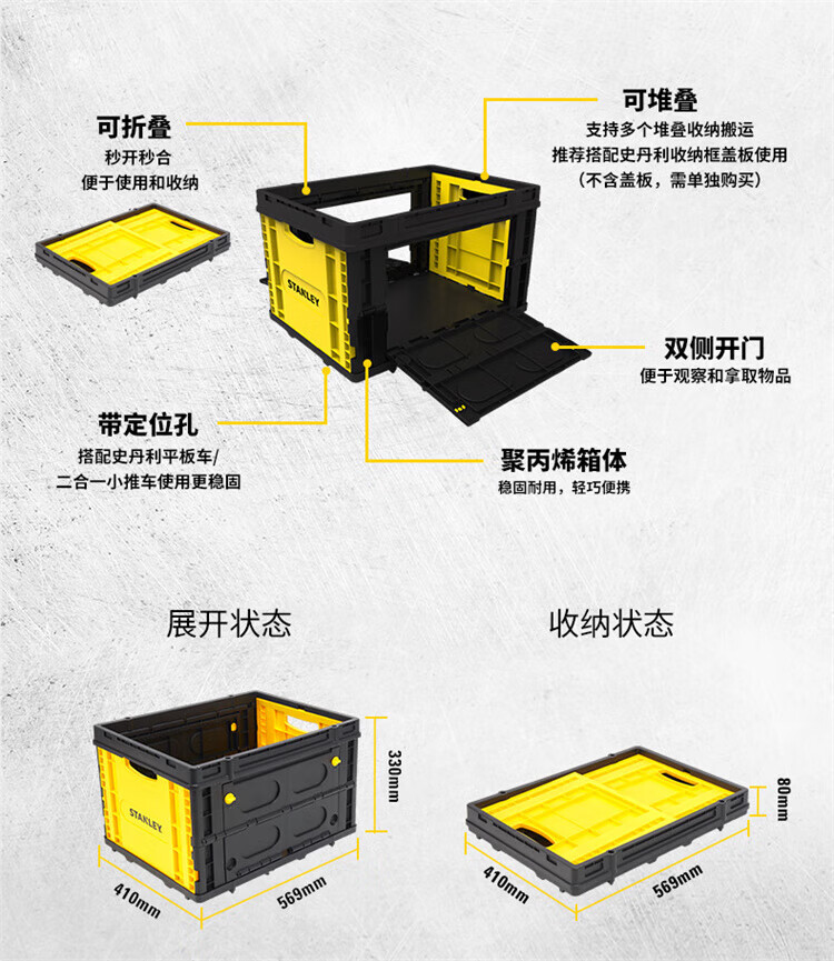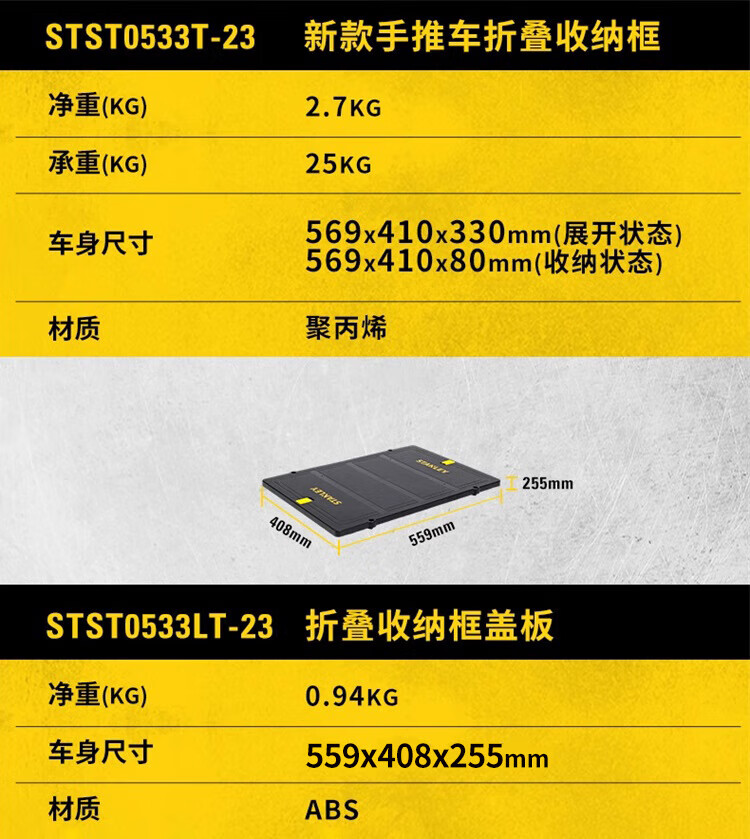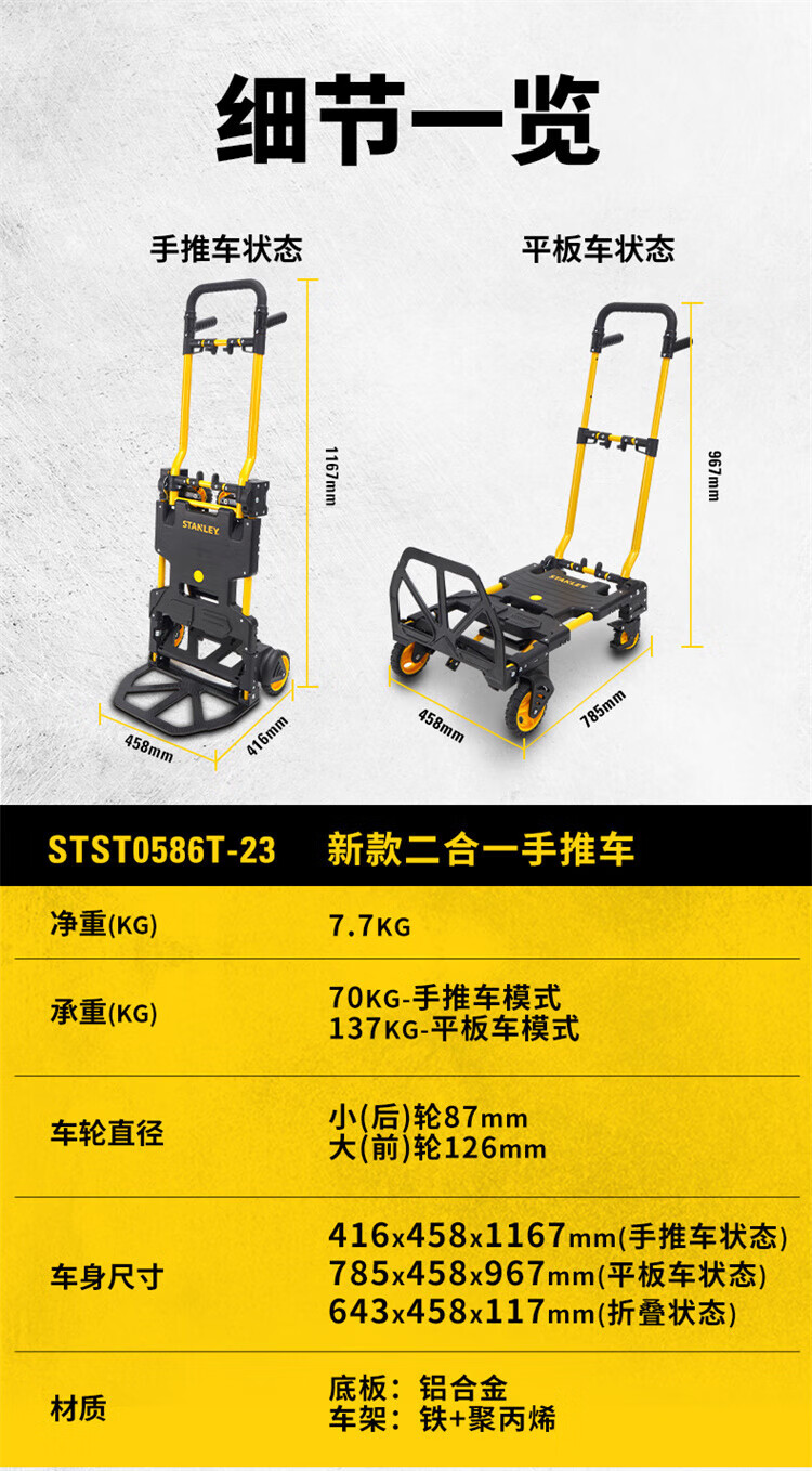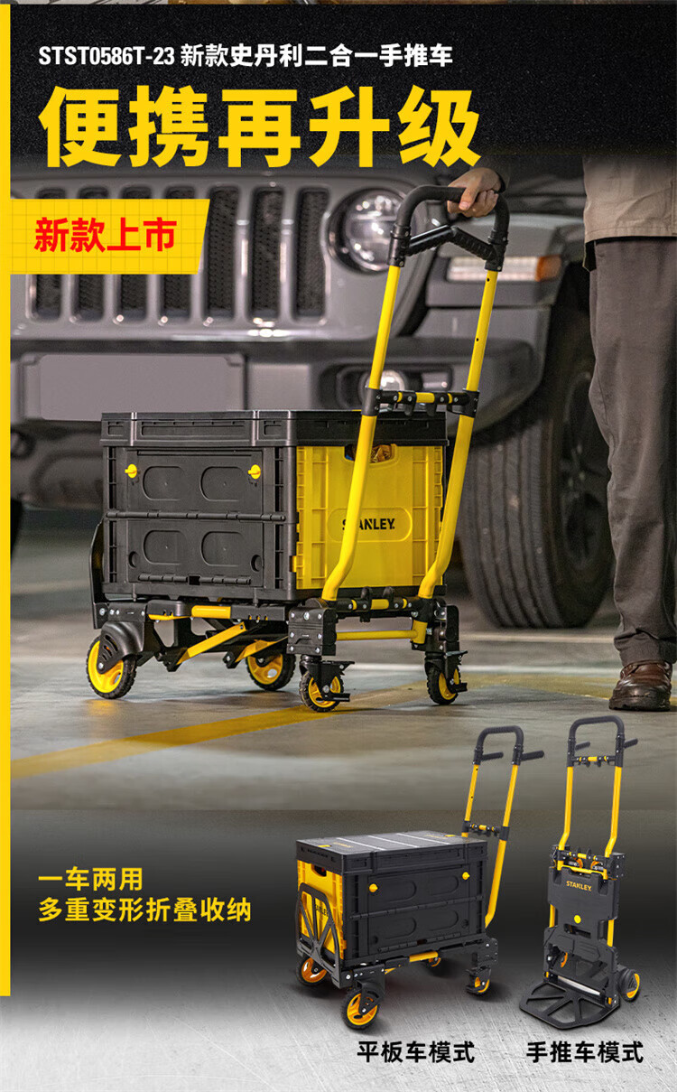 STANLEY Tool Trolley Flatbed Truck Handling Two-in-One Folding Cargo Moving Tool Brakeable Folding Trolley STST0586T-23