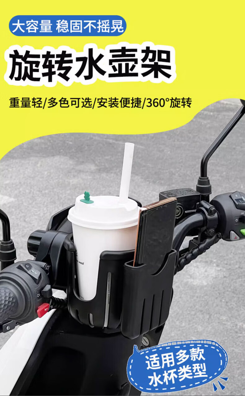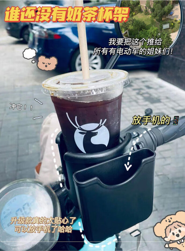 Tapaying Motorcycle Water Cup Holder Bicycle Cycling Water Bottle Holder Electric Car Baby Stroller Universal Cup Holder Bracket Walking Baby for Mobile Phone Milk Tea Black Can Hold Mobile Phone