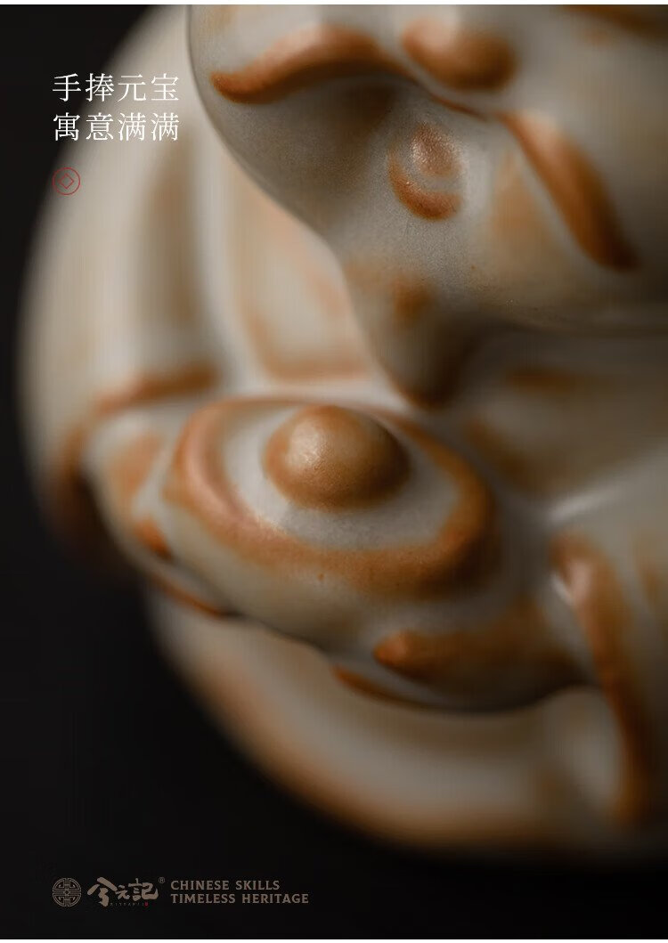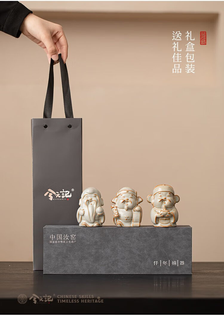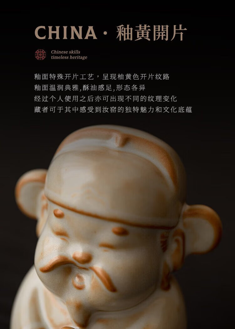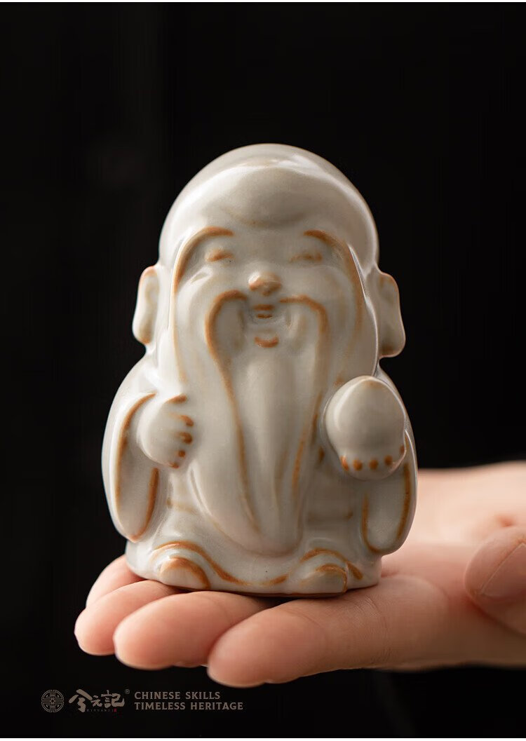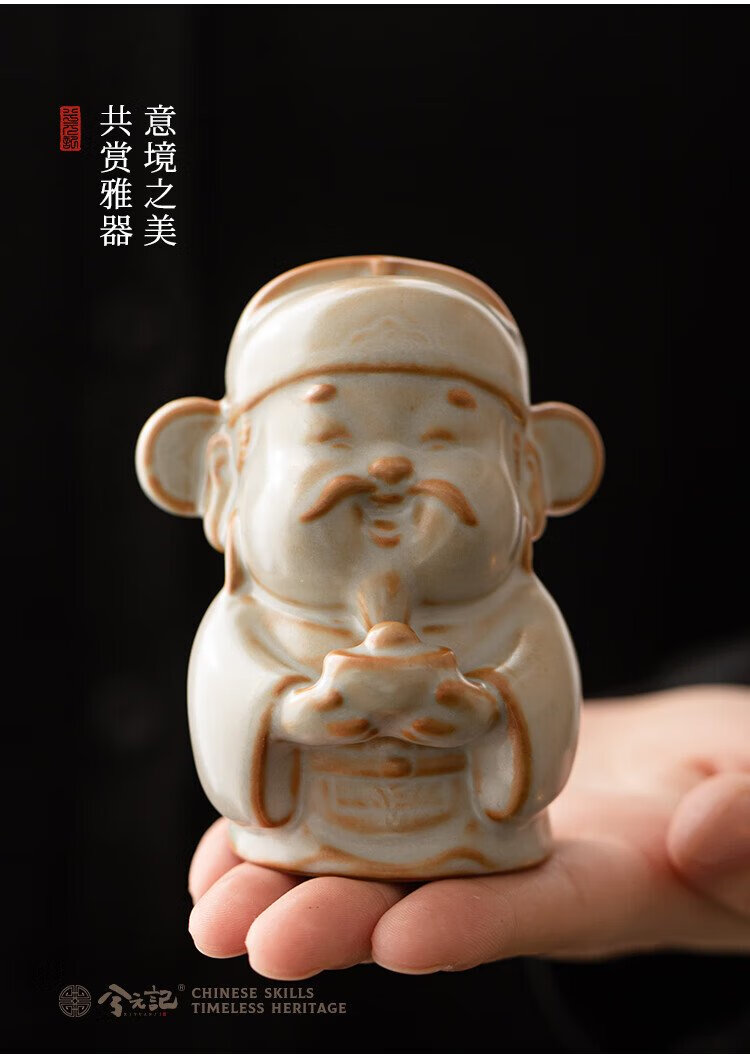 Xiyuanji Ru Kiln Lu Shou Cai Tea Pet Ornament as a Birthday Gift for Elders, New Year’s Birthday Gift, Housewarming Accompanying Gift Pomelo Yellow Ru Kiln Lu Shou Cai Tea Pet Ornament-Gift Box