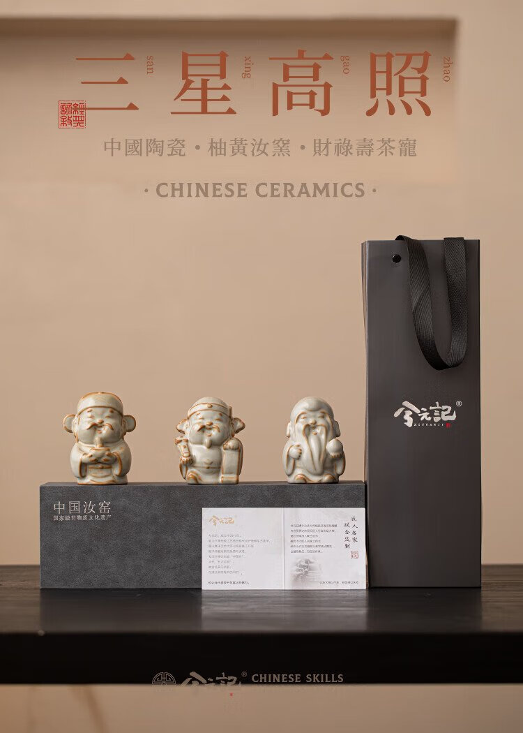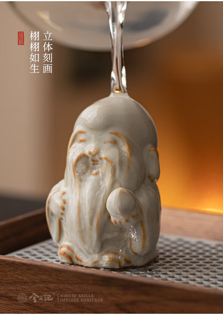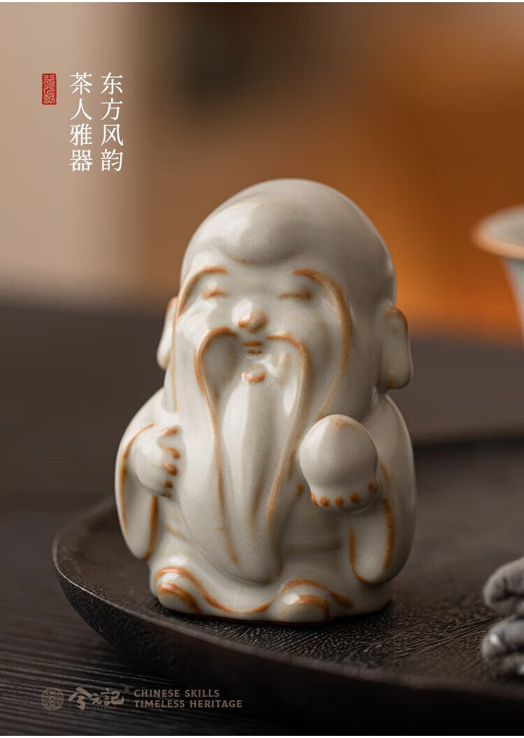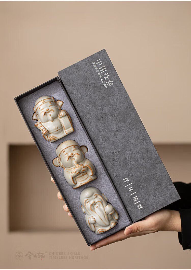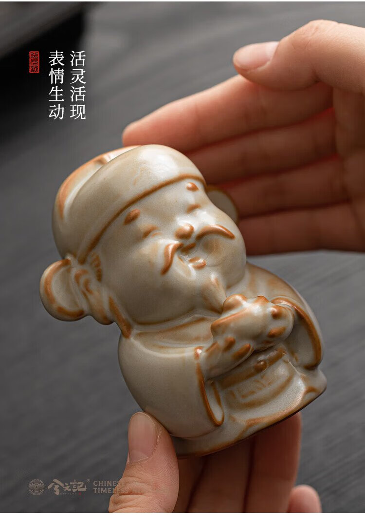 Xiyuanji Ru Kiln Lu Shou Cai Tea Pet Ornament as a Birthday Gift for Elders, New Year’s Birthday Gift, Housewarming Accompanying Gift Pomelo Yellow Ru Kiln Lu Shou Cai Tea Pet Ornament-Gift Box