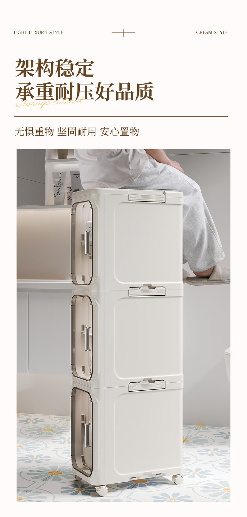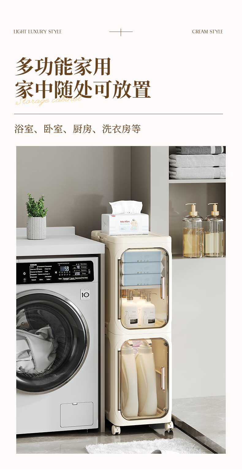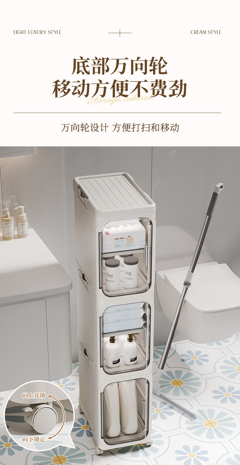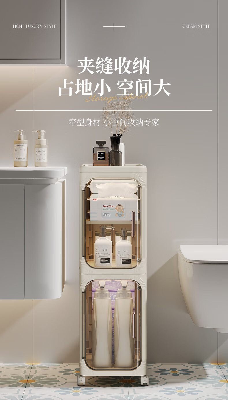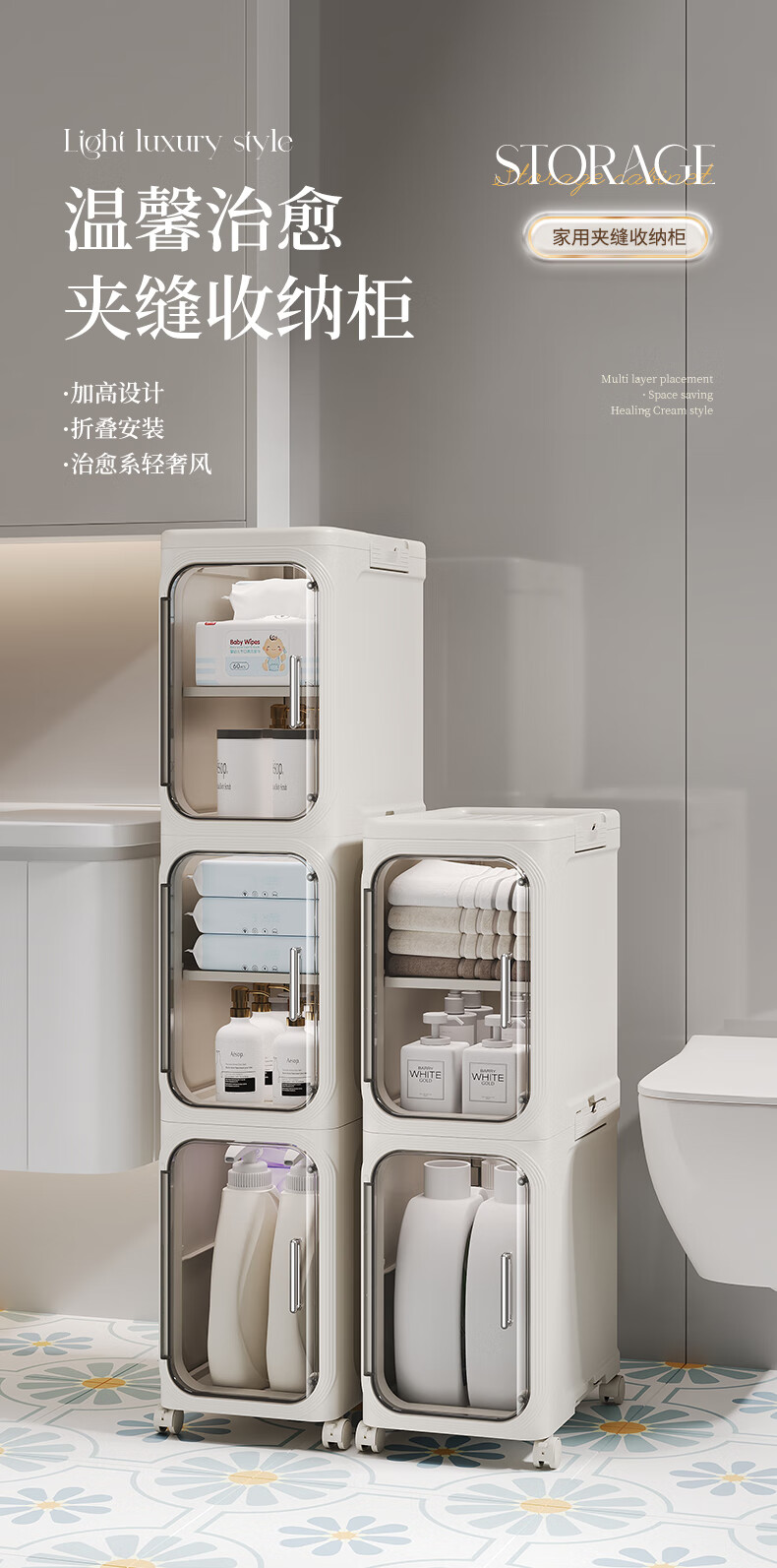 Baiyite Seam Storage Cabinet Free of Installation Bathroom Storage Cabinet Bathroom Side Cabinet Refrigerator Washing Machine Seam Floor Storage Cabinet Folding Seam Cabinet-Pure White + Gray Transparent 3 Layers