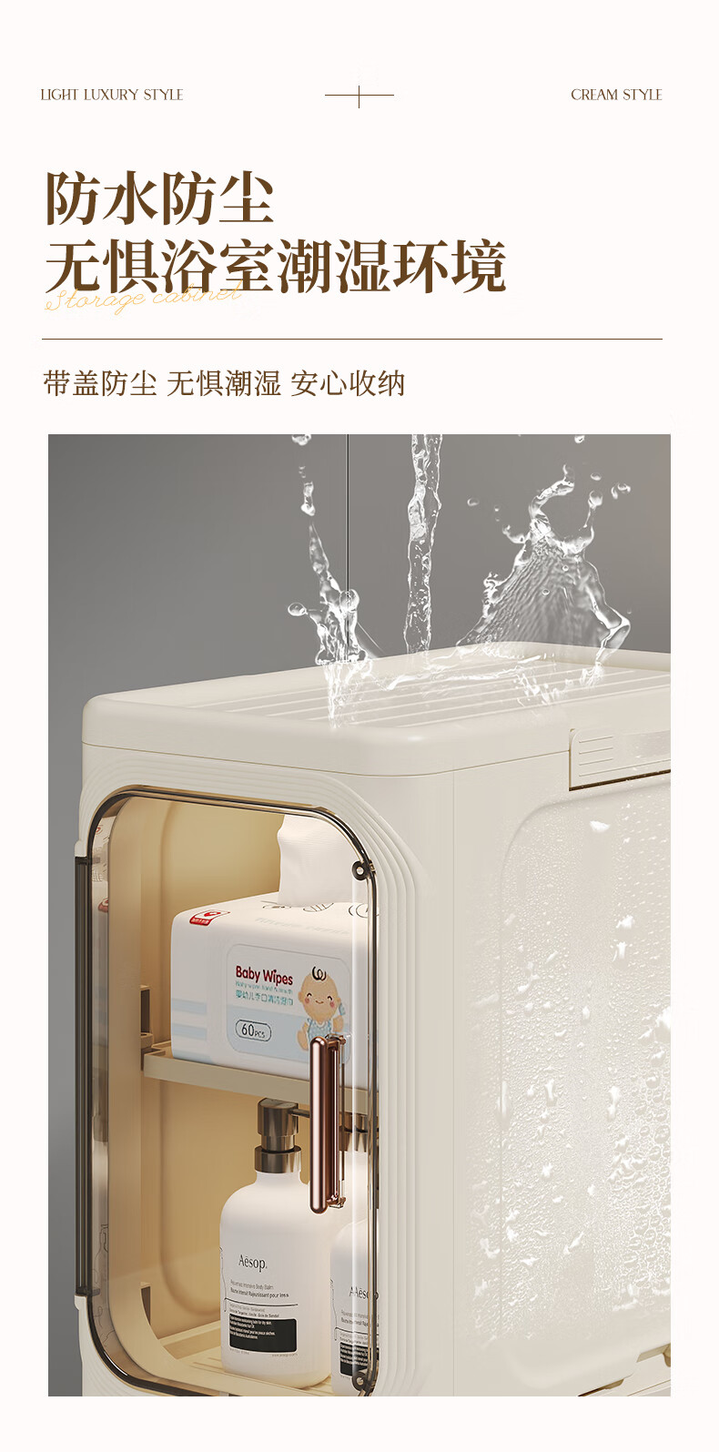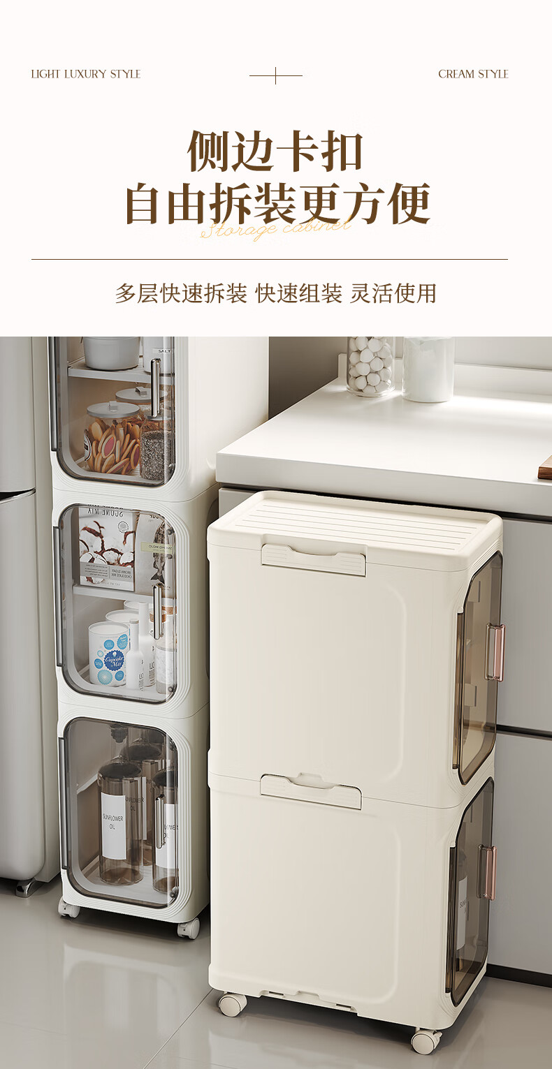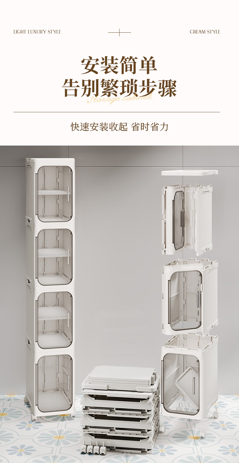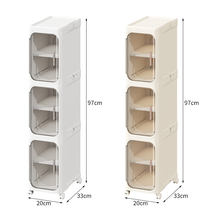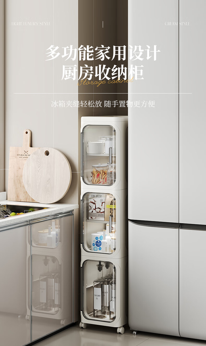Baiyite Seam Storage Cabinet Free of Installation Bathroom Storage Cabinet Bathroom Side Cabinet Refrigerator Washing Machine Seam Floor Storage Cabinet Folding Seam Cabinet-Pure White + Gray Transparent 3 Layers