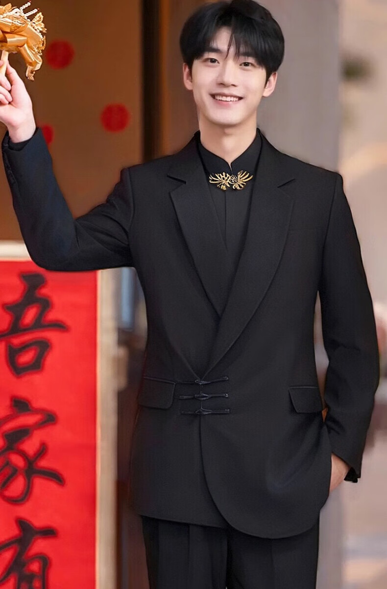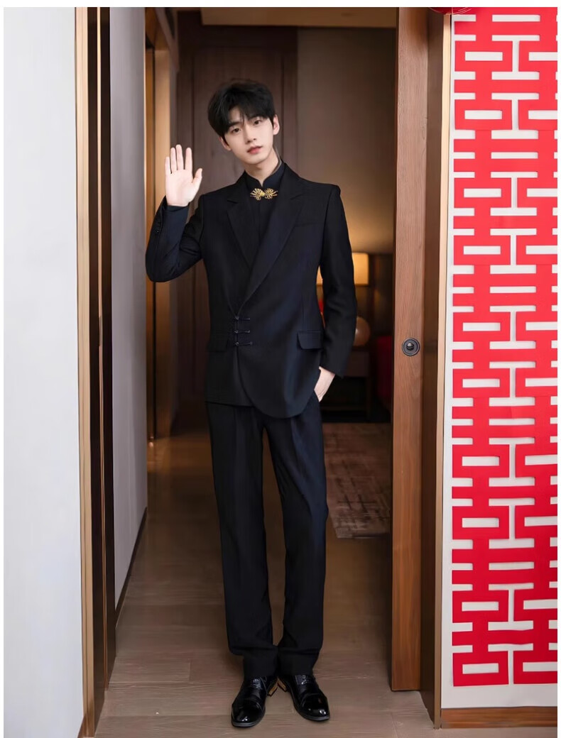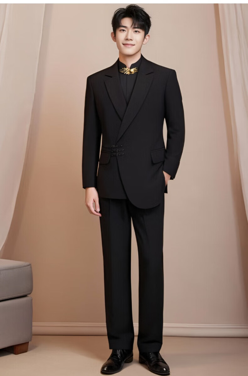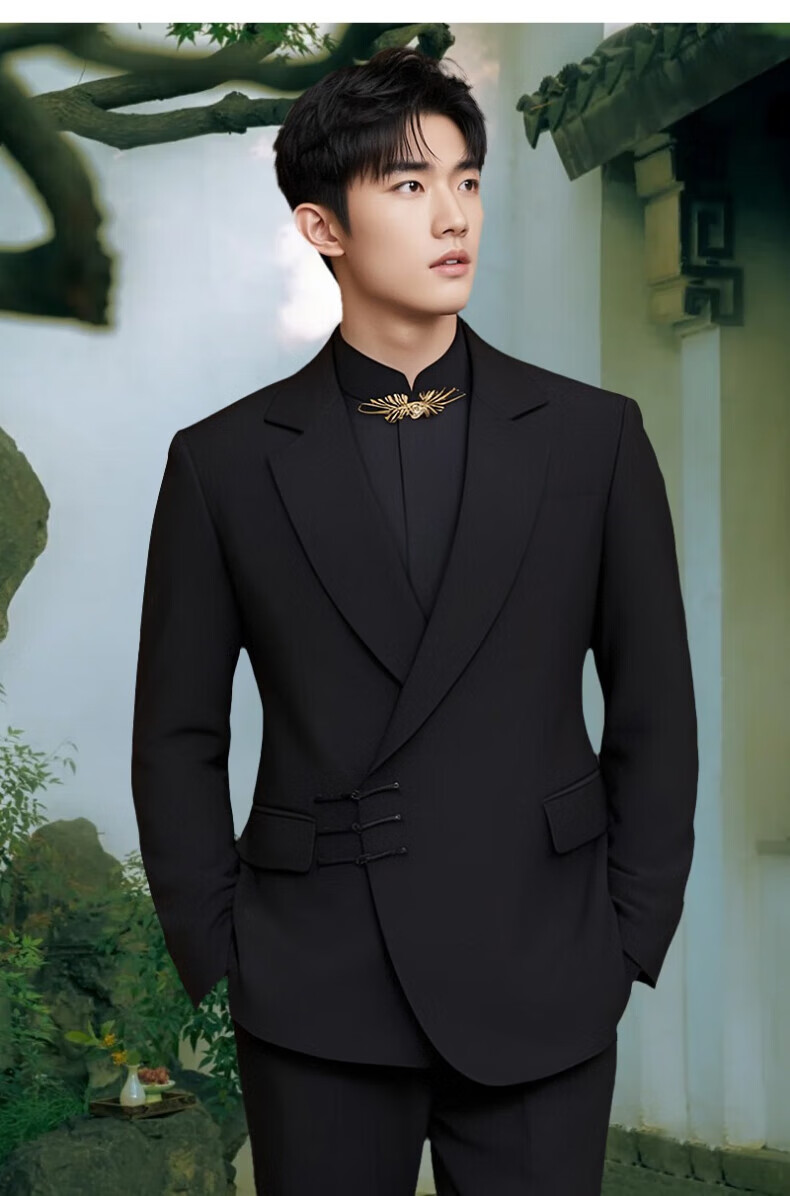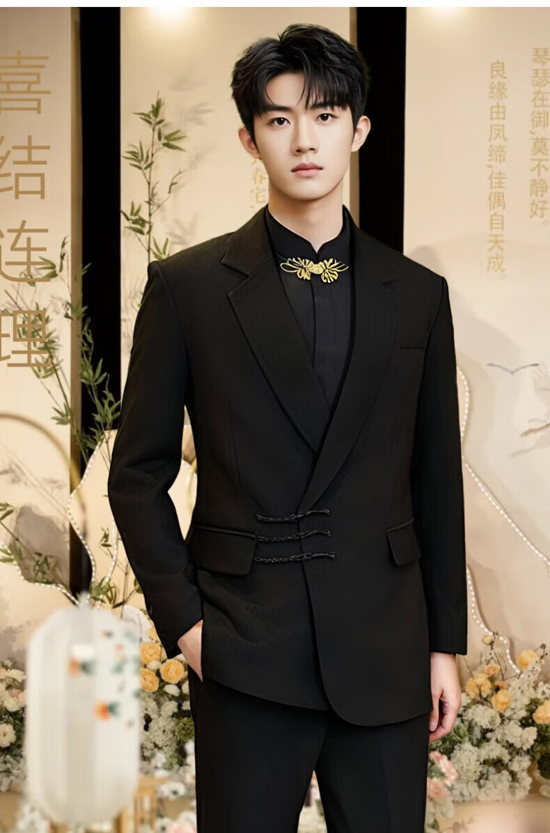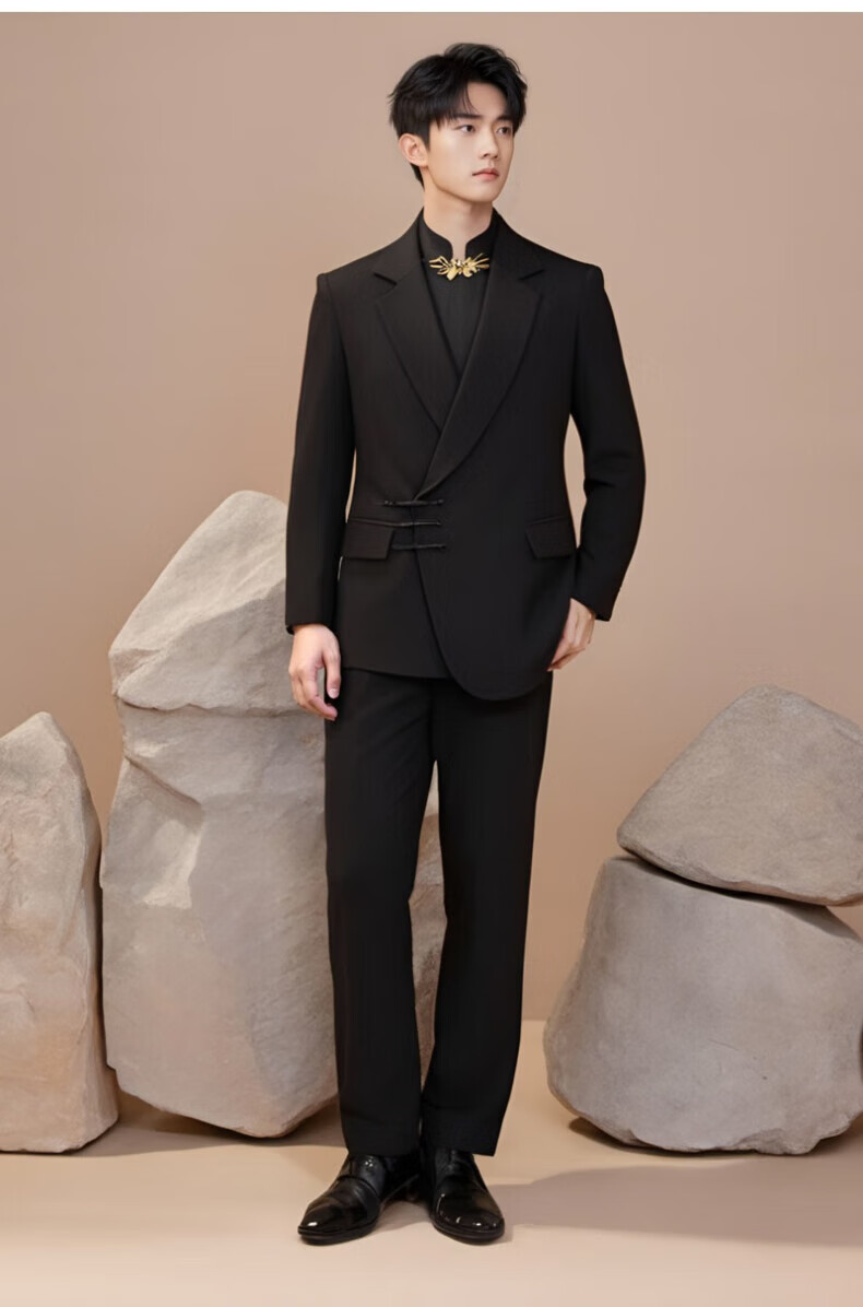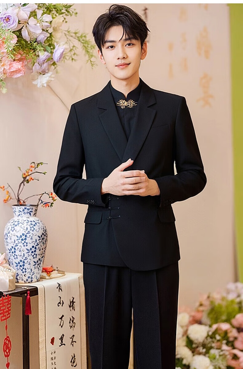 Pierre Cardin New Chinese tunic suit stand collar engagement groom suit men's wedding national style suit men's knitted jacket 2402 jacket + pants XL