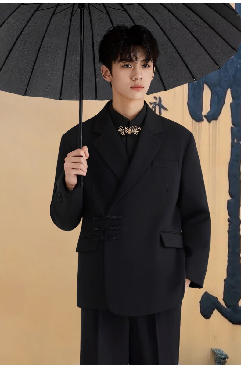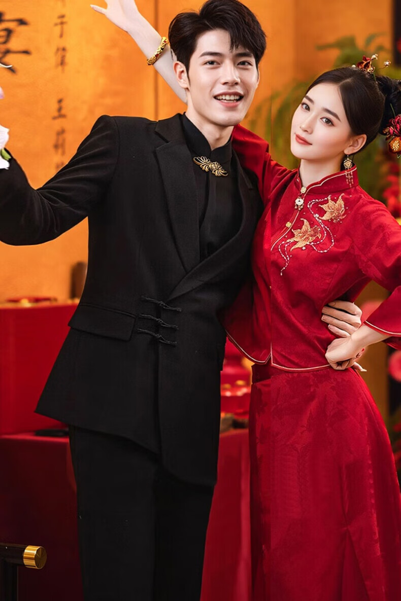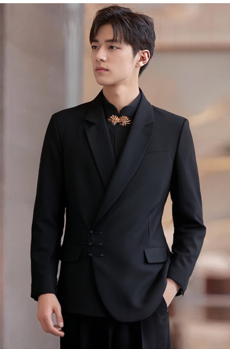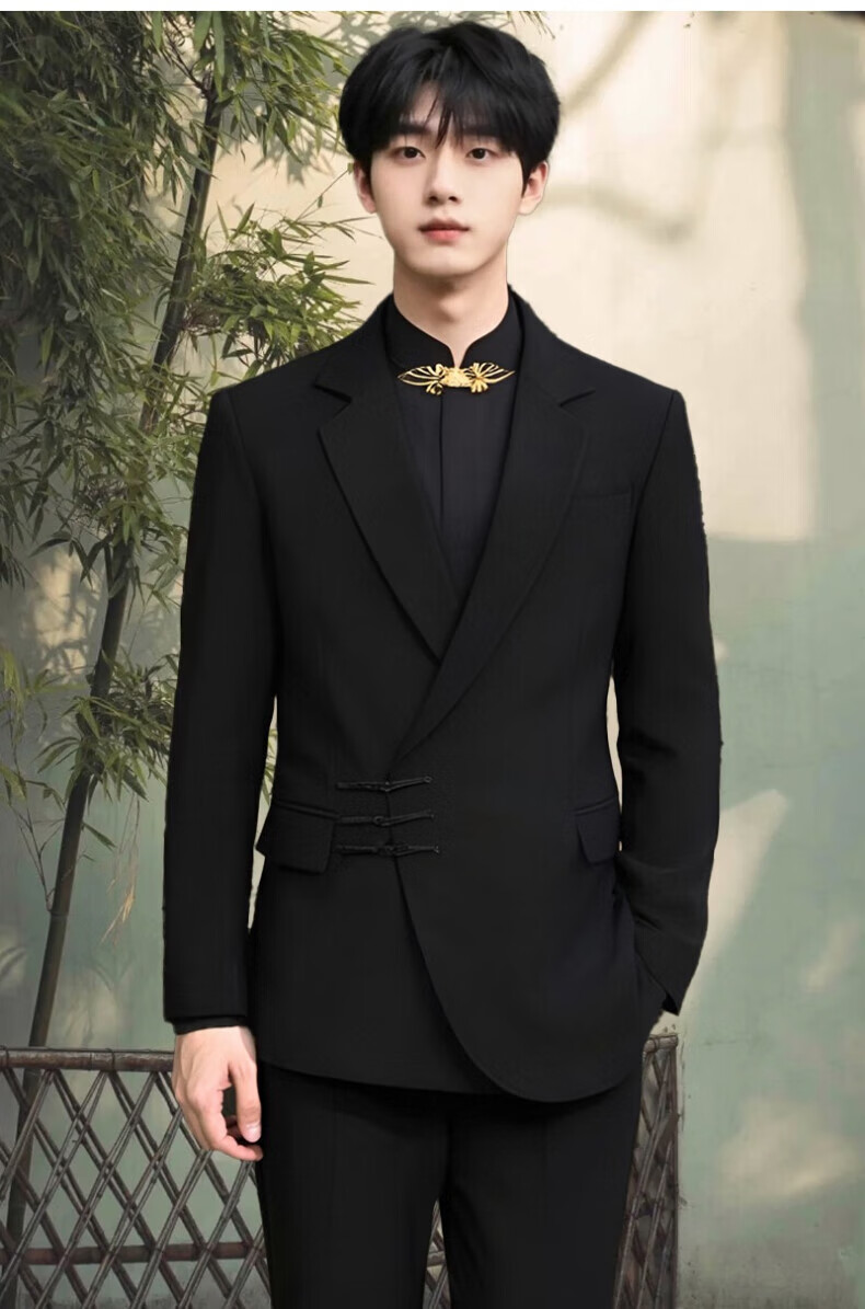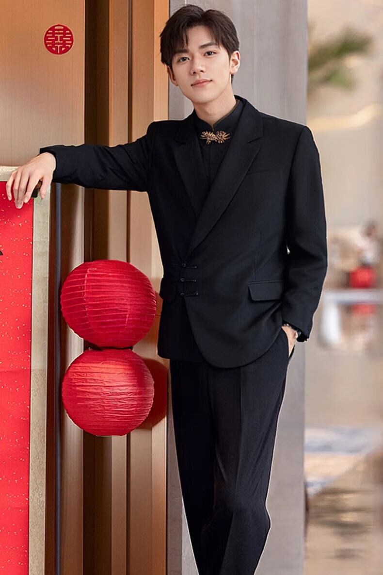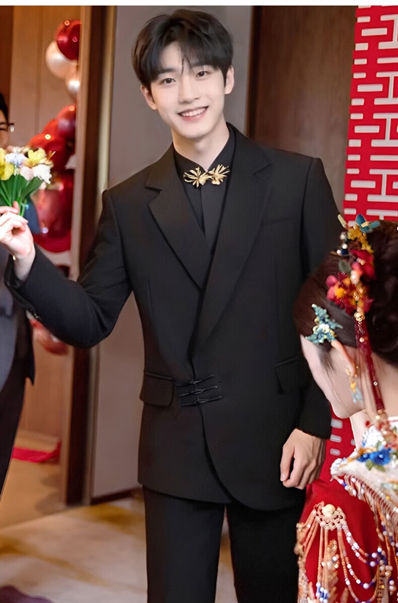 Pierre Cardin New Chinese tunic suit stand collar engagement groom suit men's wedding national style suit men's knitted jacket 2402 jacket + pants XL