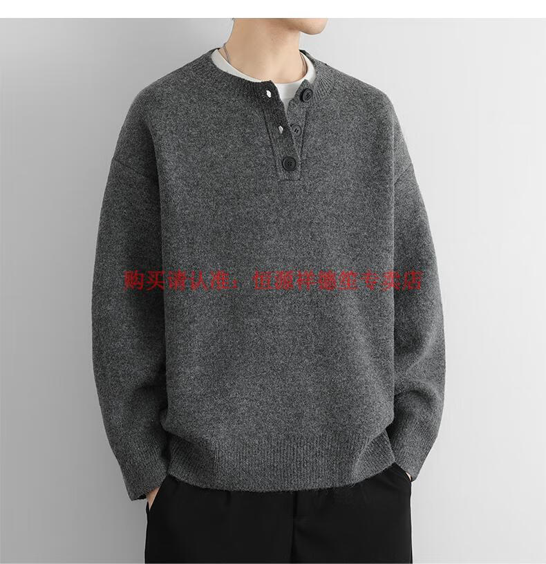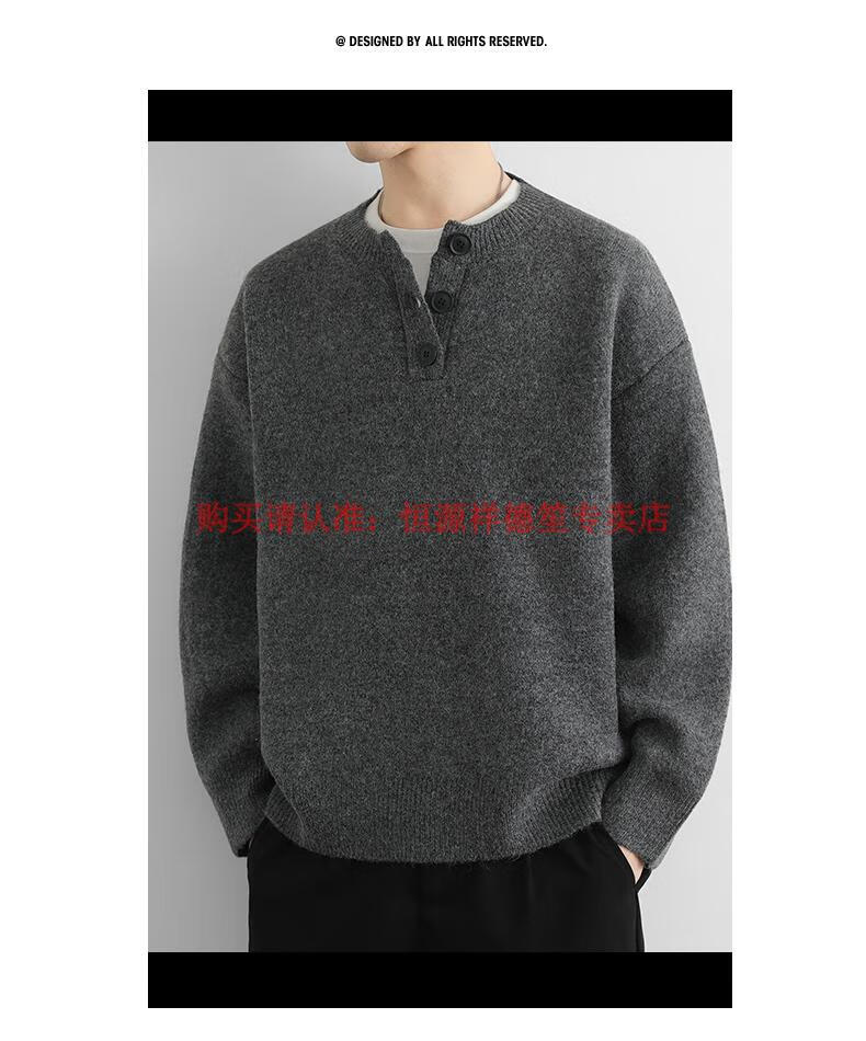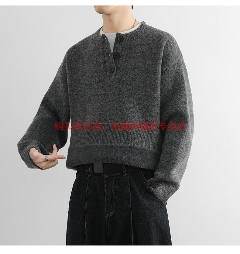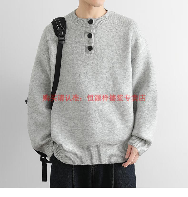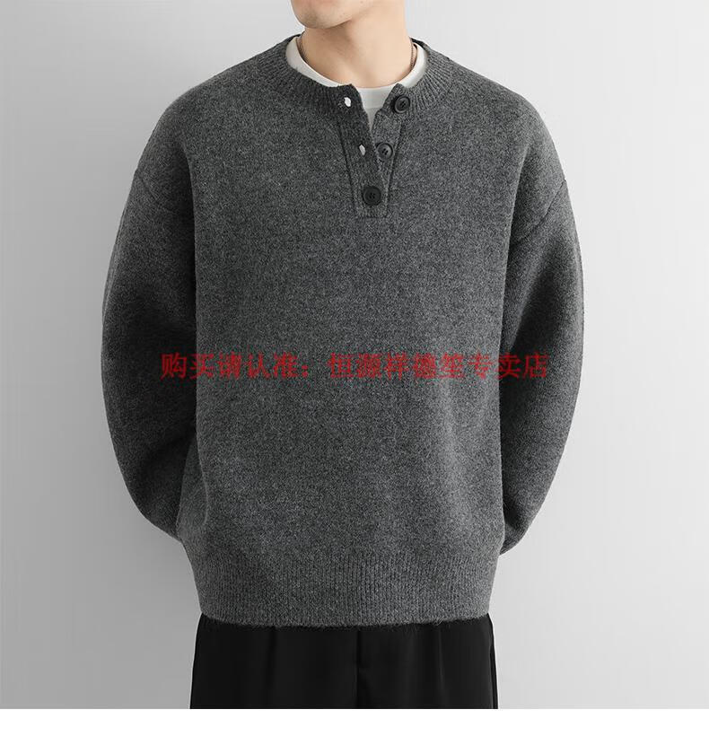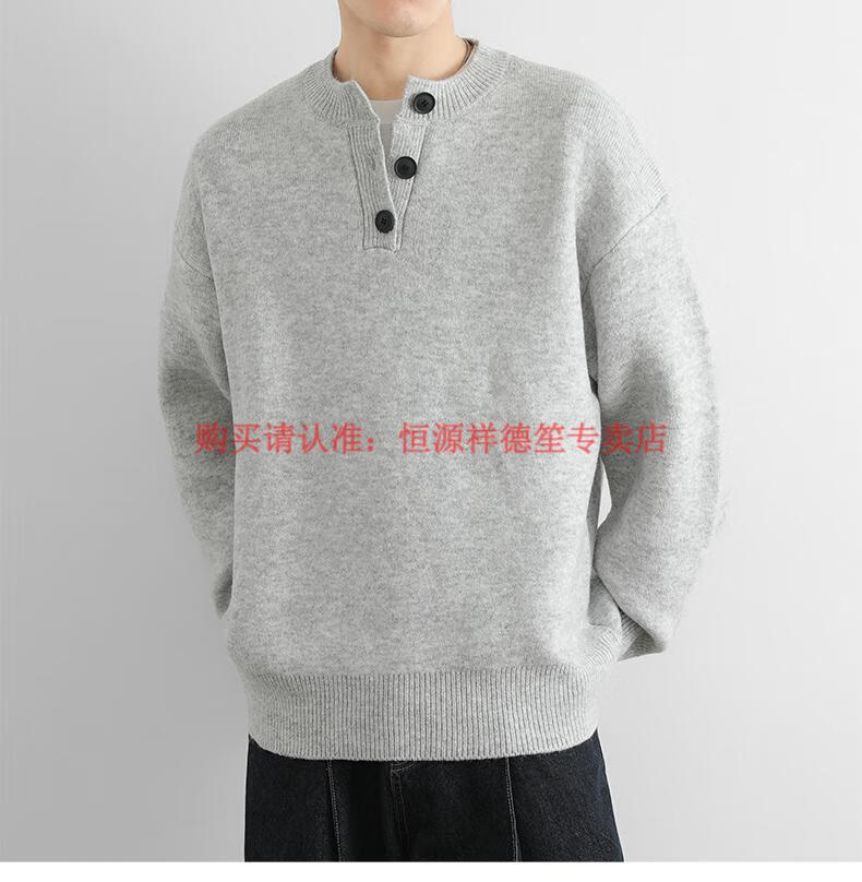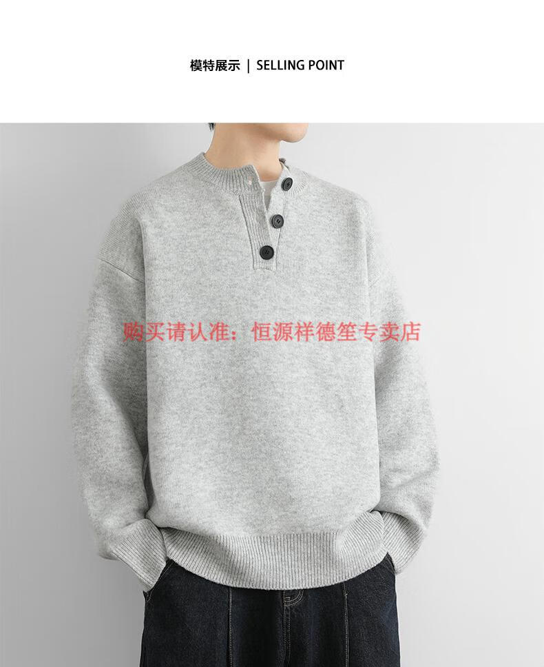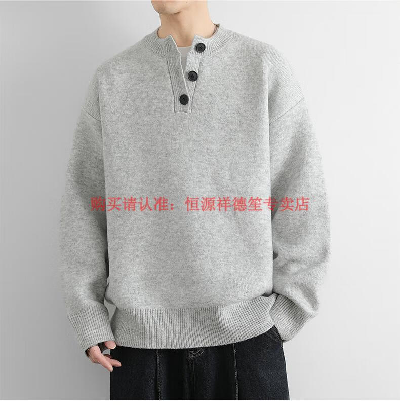 Hengyuanxiang velvet thickened Henry collar sweater men's autumn and winter American sweater all-in-one velvet retro inner base woolen sweater light gray all-in-one velvet M 110Jin Jin is equal to within 0.5 kg