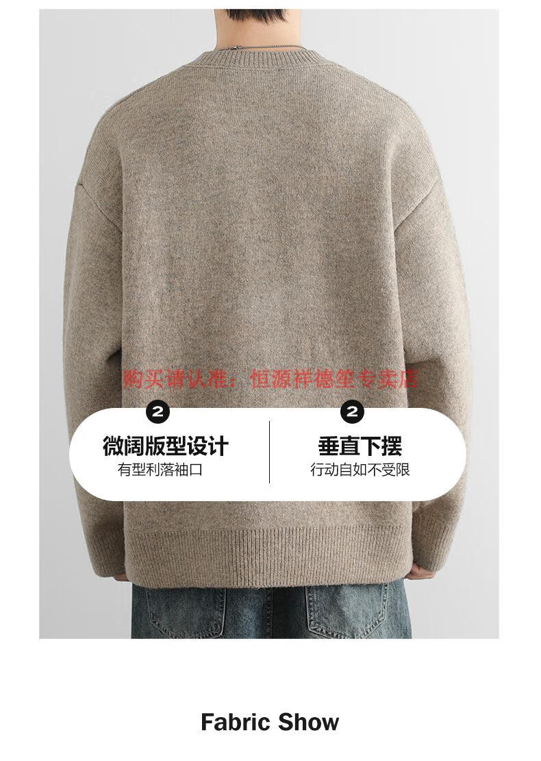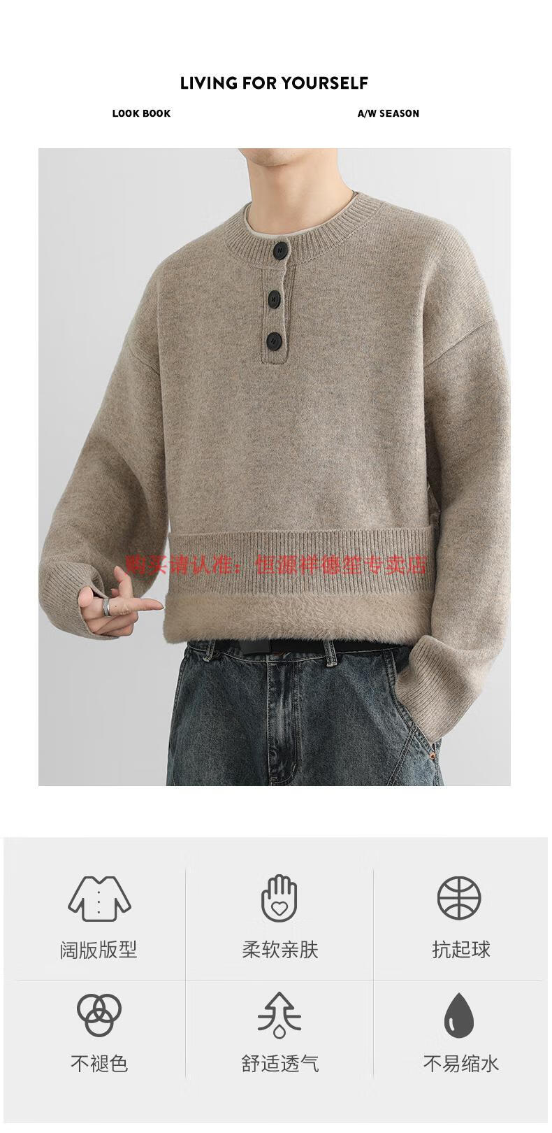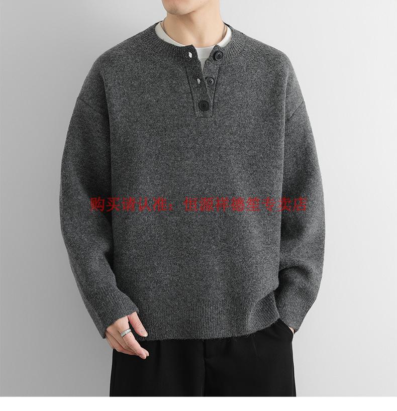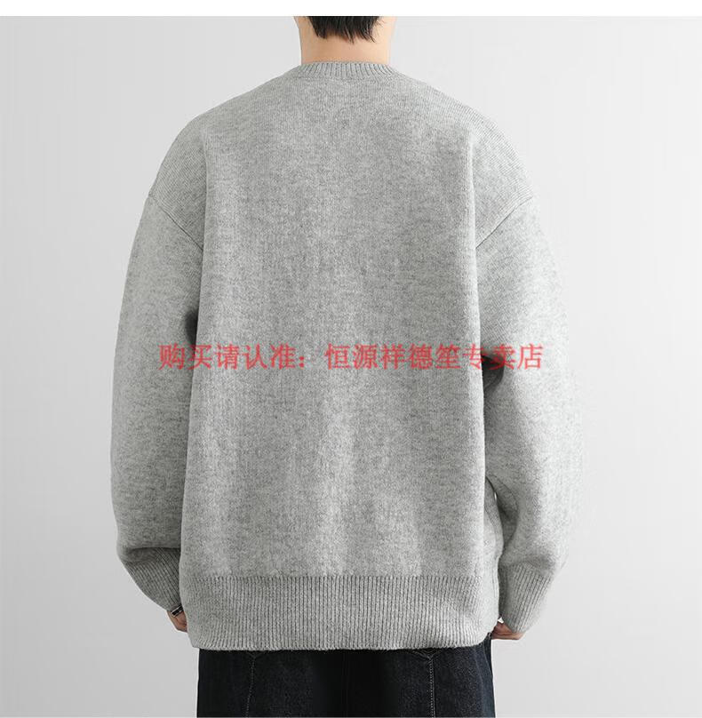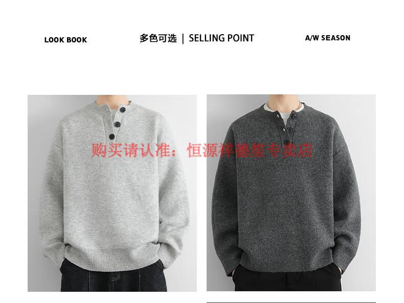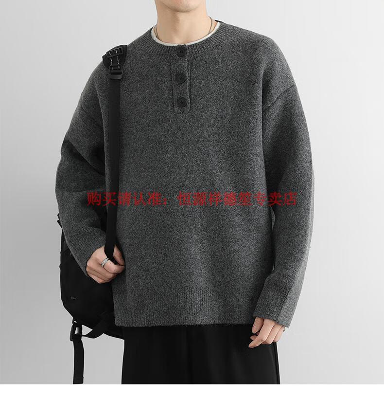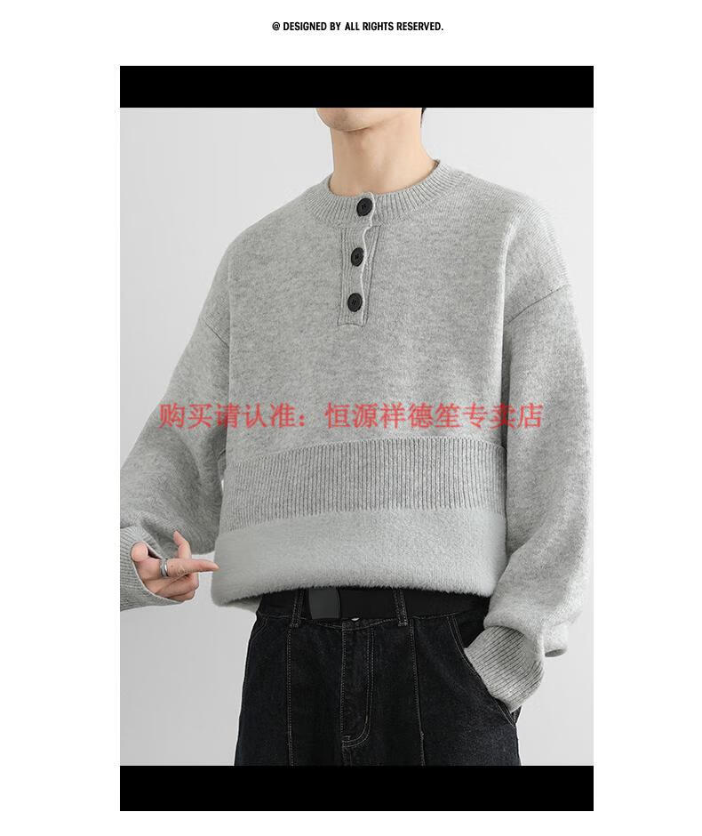 Hengyuanxiang velvet thickened Henry collar sweater men's autumn and winter American sweater all-in-one velvet retro inner base woolen sweater light gray all-in-one velvet M 110Jin Jin is equal to within 0.5 kg