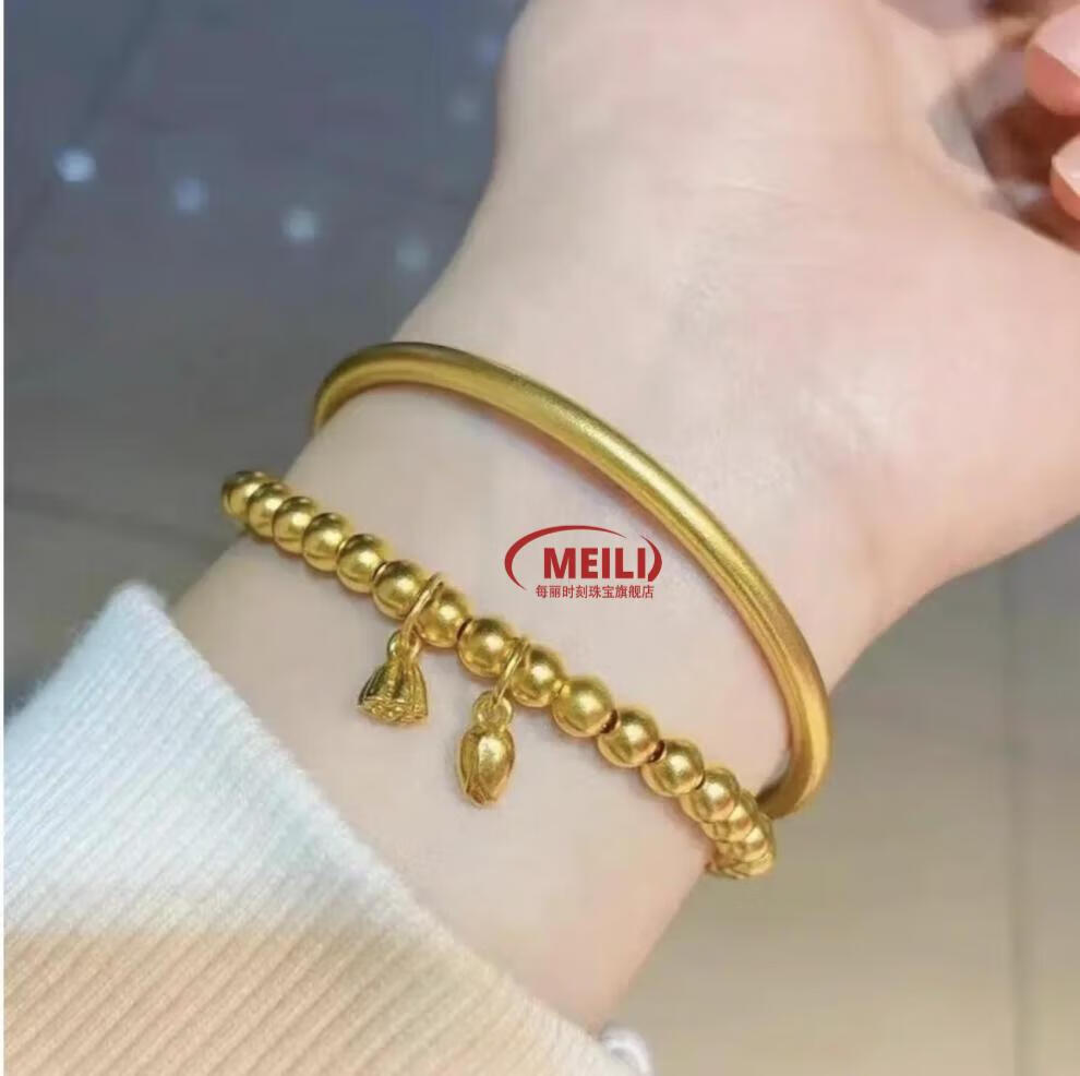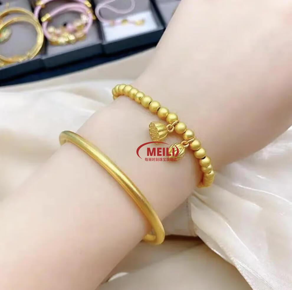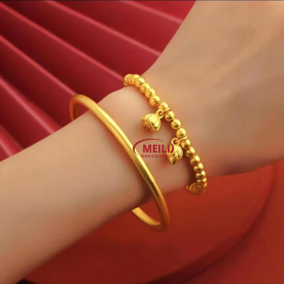 Fat Donglai's same style gold-plated silver bracelet for women, Vietnamese sand gold ancient method inheritance bracelet + two generations of joy bracelet, 4N 40g two-piece set 150-180Jin Jin is equal to 0.5kg (65 circle)