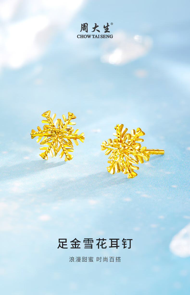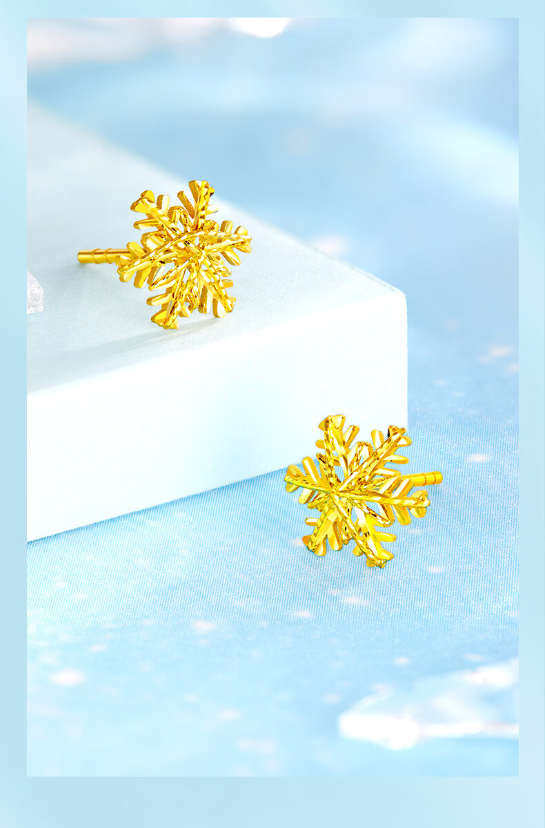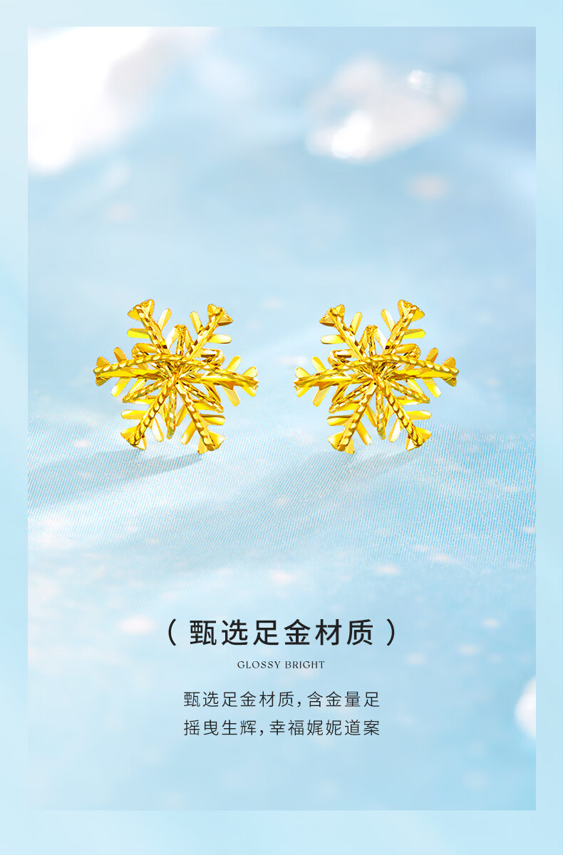 Zhou Taisheng gold earrings snowflake rose clover as a gift for mother, girlfriend, wife anniversary anniversary birthday pure gold clover earrings gold weight about 1g