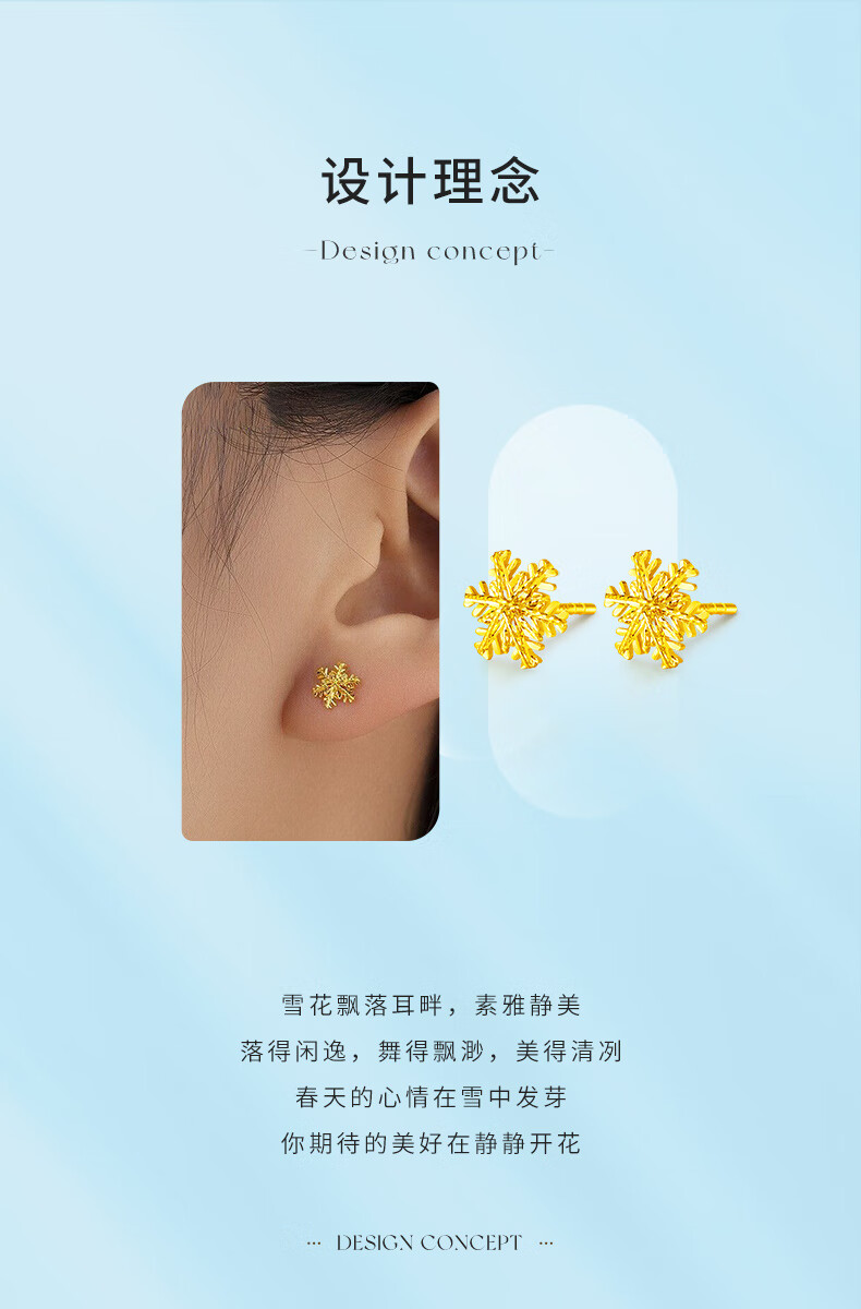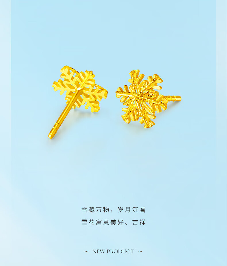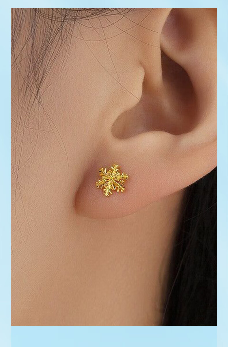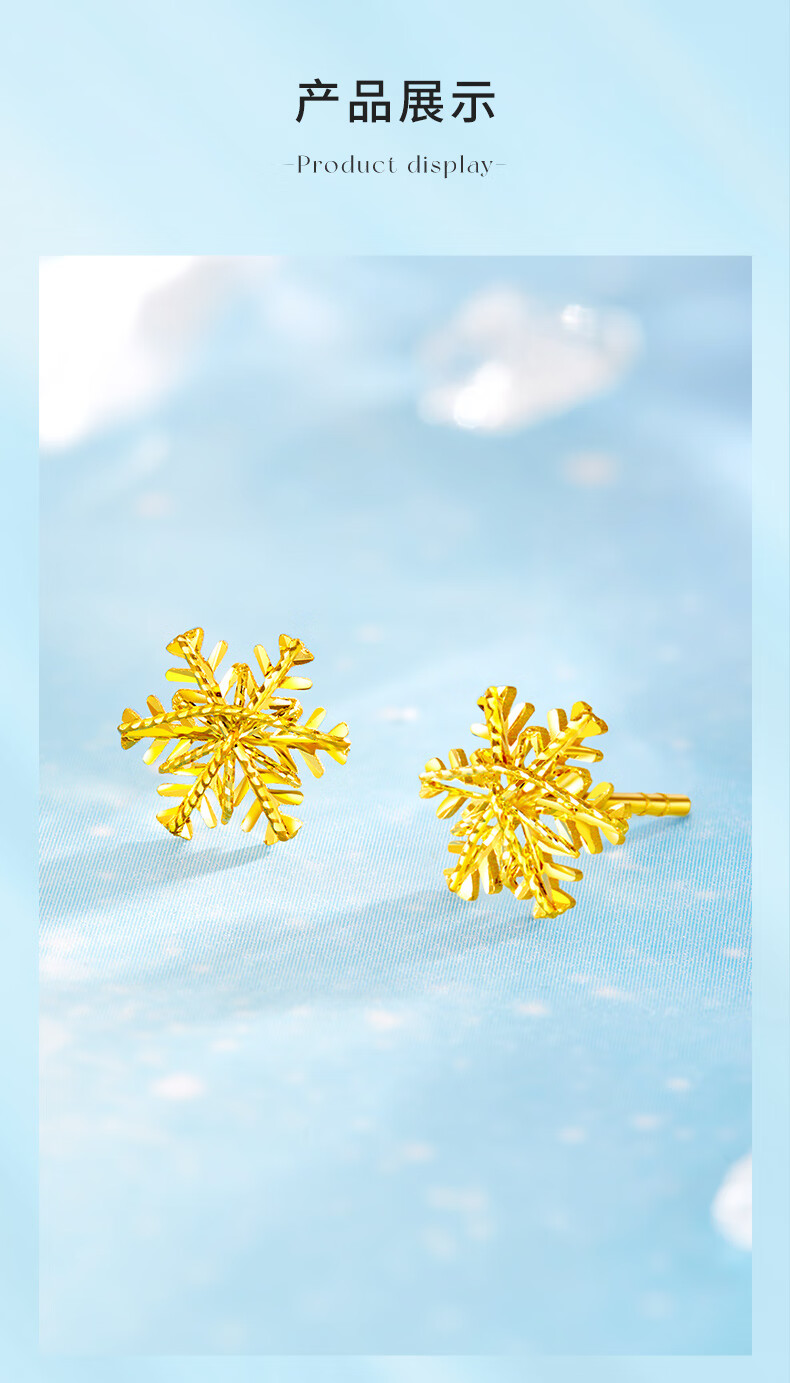 Zhou Taisheng gold earrings snowflake rose clover as a gift for mother, girlfriend, wife anniversary anniversary birthday pure gold clover earrings gold weight about 1g