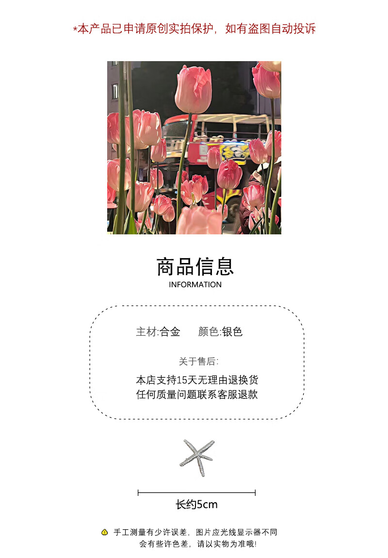 Yufang silver retro metal starfish hairpin for women Korean style ins style bangs side clip sweet cool y2k hot girl hair accessories headdress silver starfish hairpin 1 pack