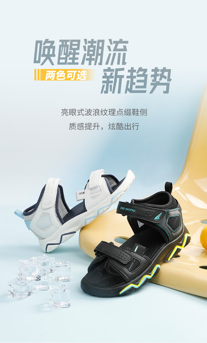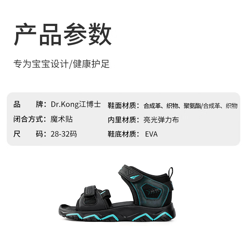 DR KONG summer boys' breathable casual children's sandals, medium and large children's Velcro all-match children's shoes, m/blue 31, foot length approximately 19.4-20.0