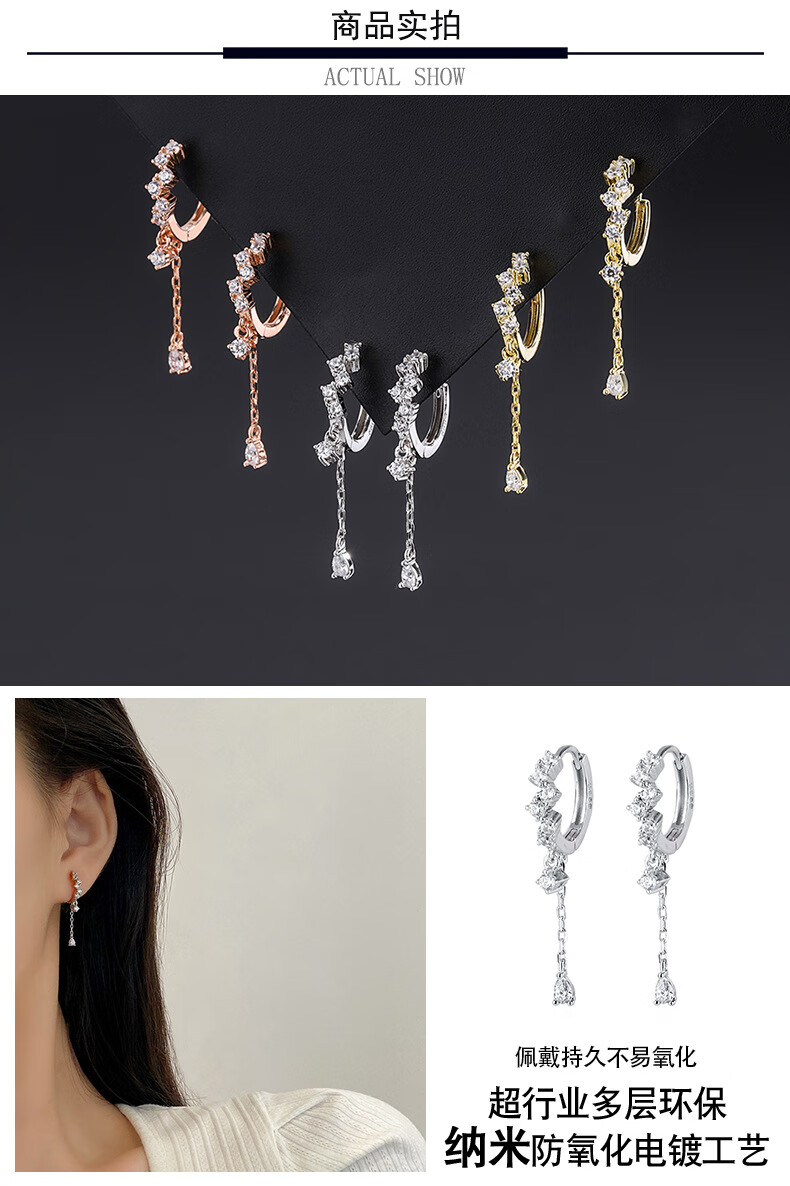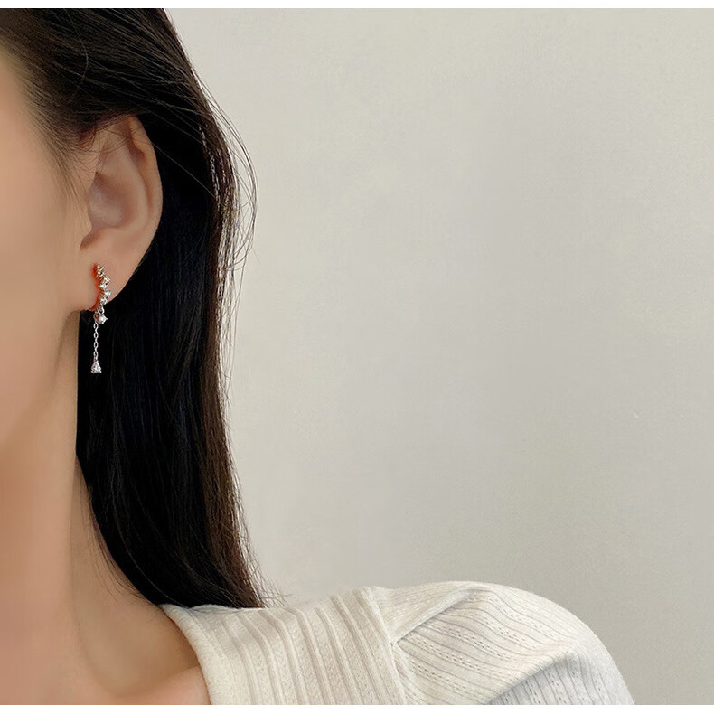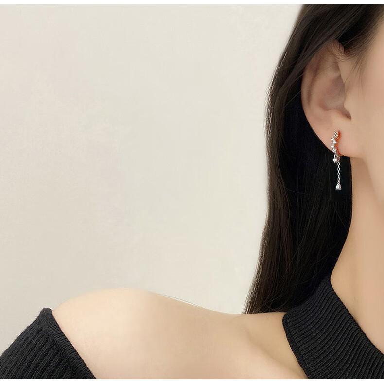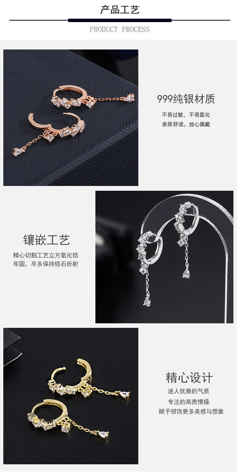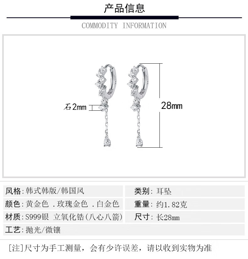 Lipan s999 sterling silver sparkling diamond drop earrings for women new earrings tassel earrings cold trend earrings Christmas gift 999 sterling silver earrings exquisite gift box + pair