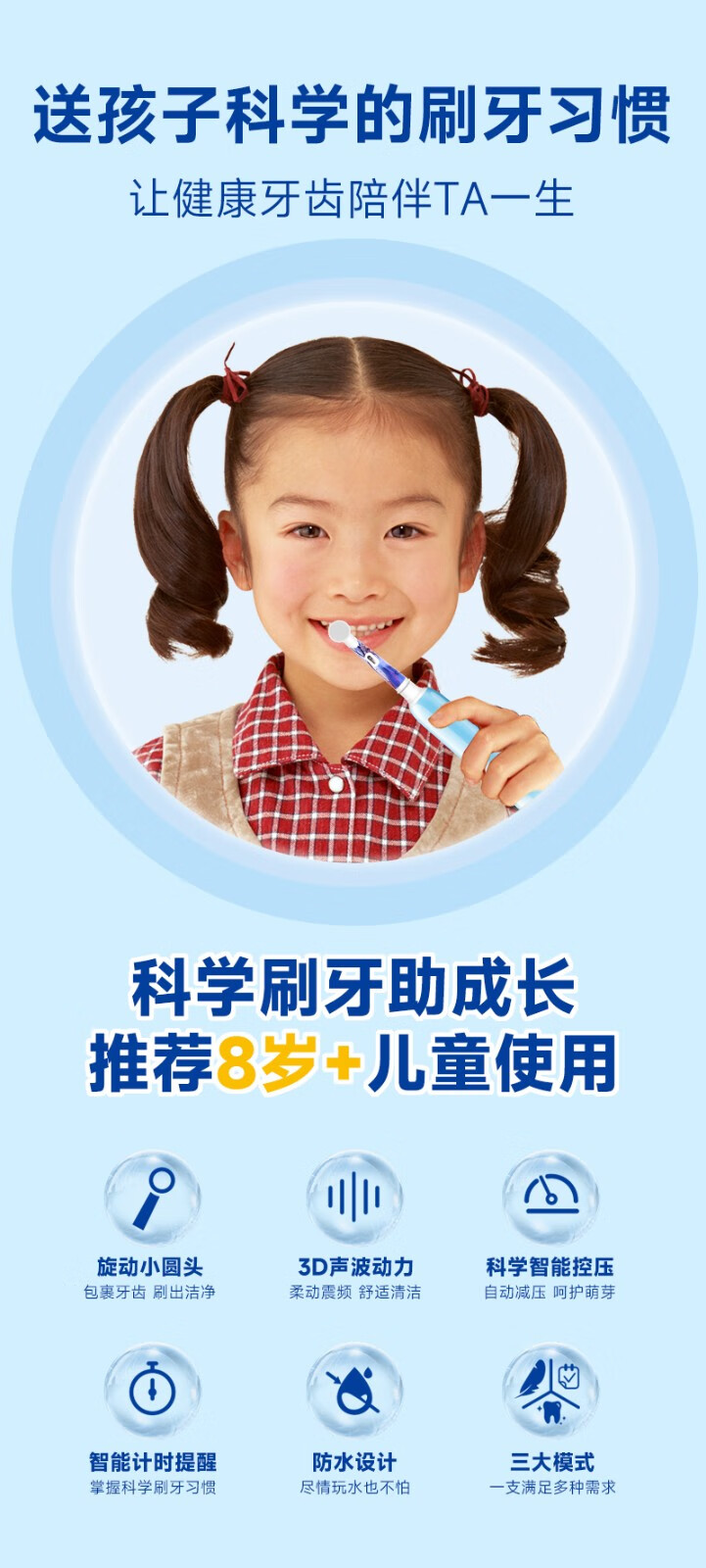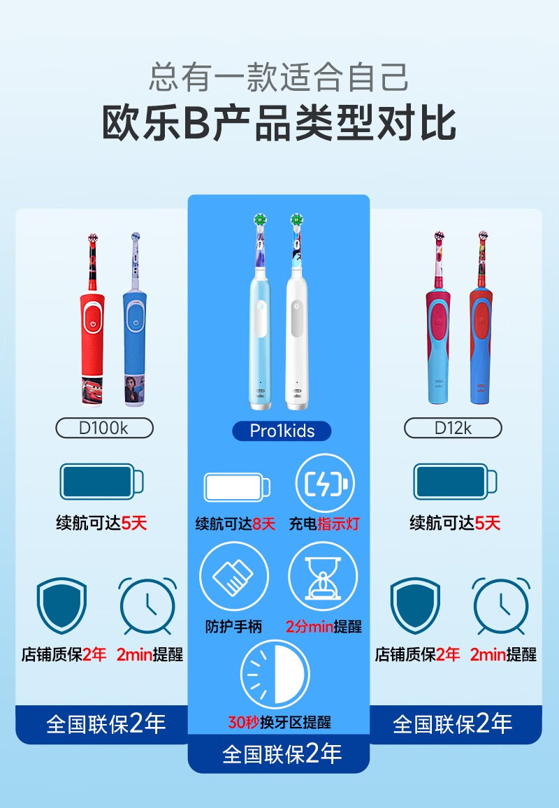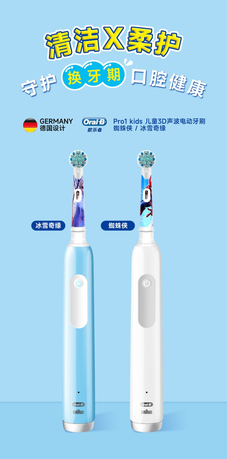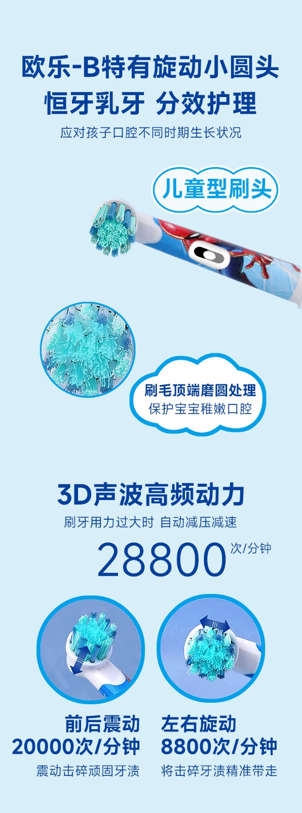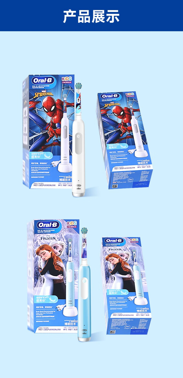 Oral-B Oral-B children's electric toothbrush children 8-12 years old primary school brush Pro 1Kids3D Spider-Man Mickey version 103K contains 2 original heads