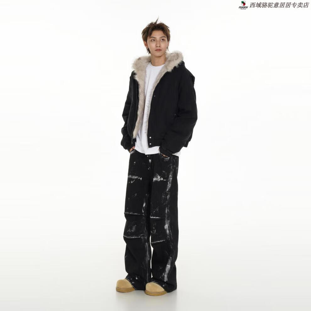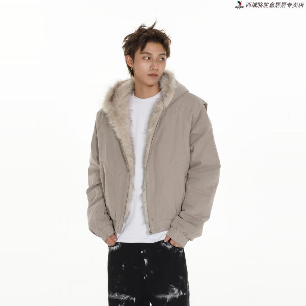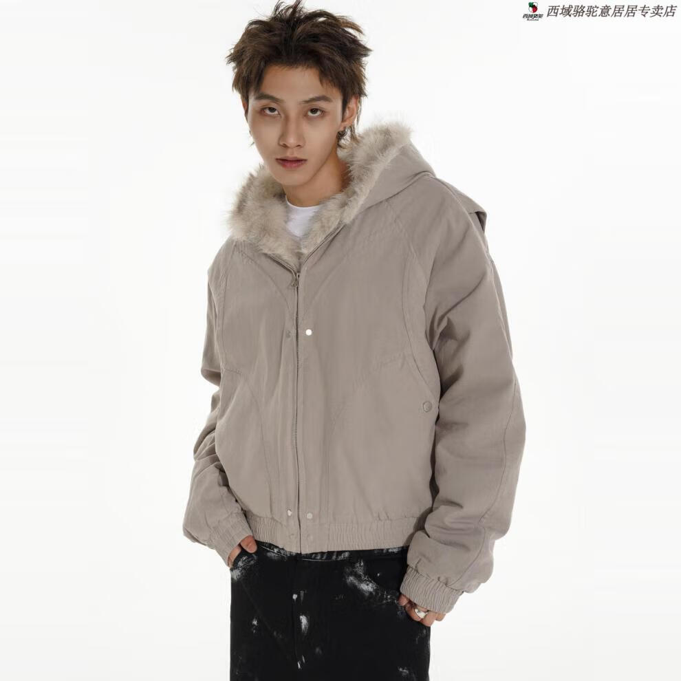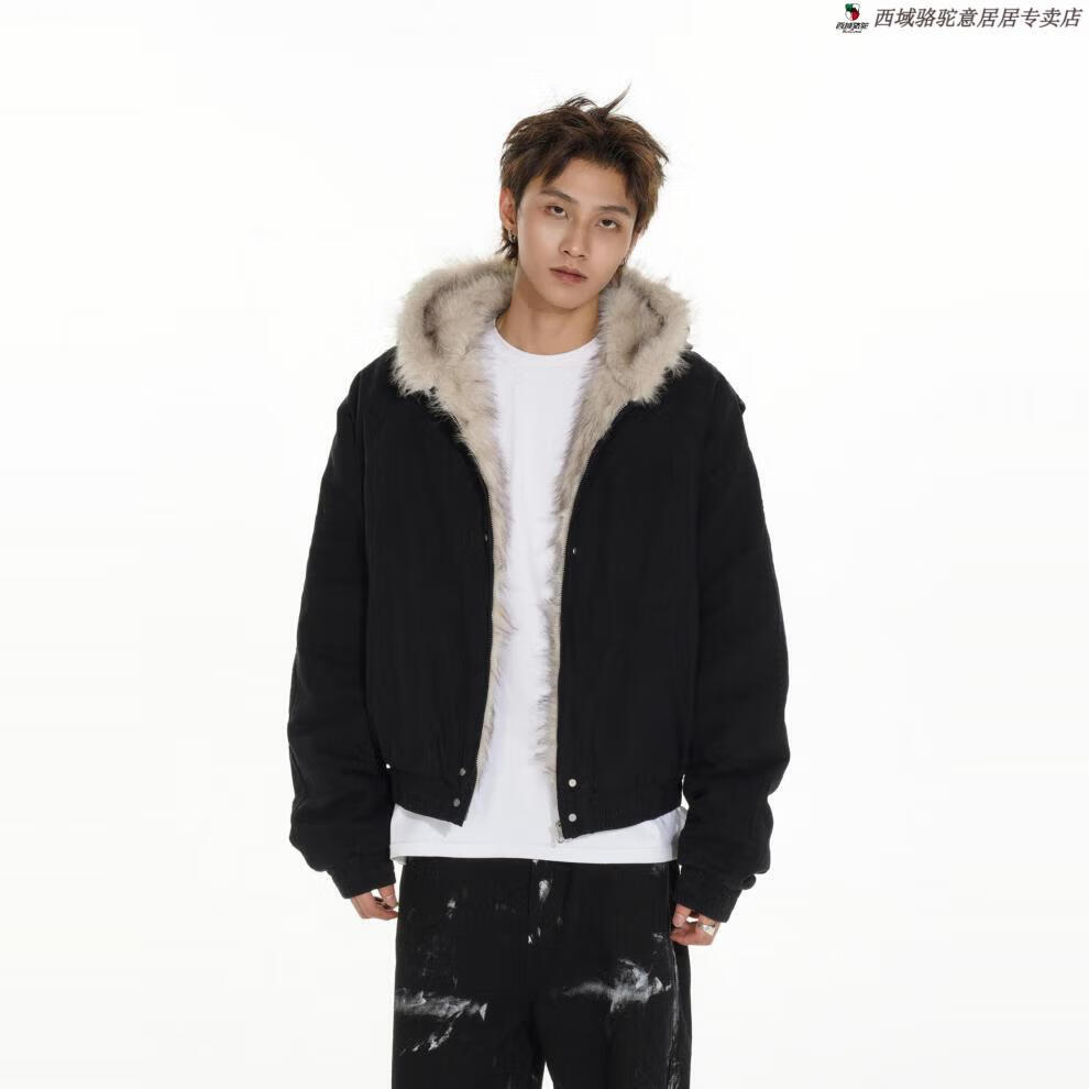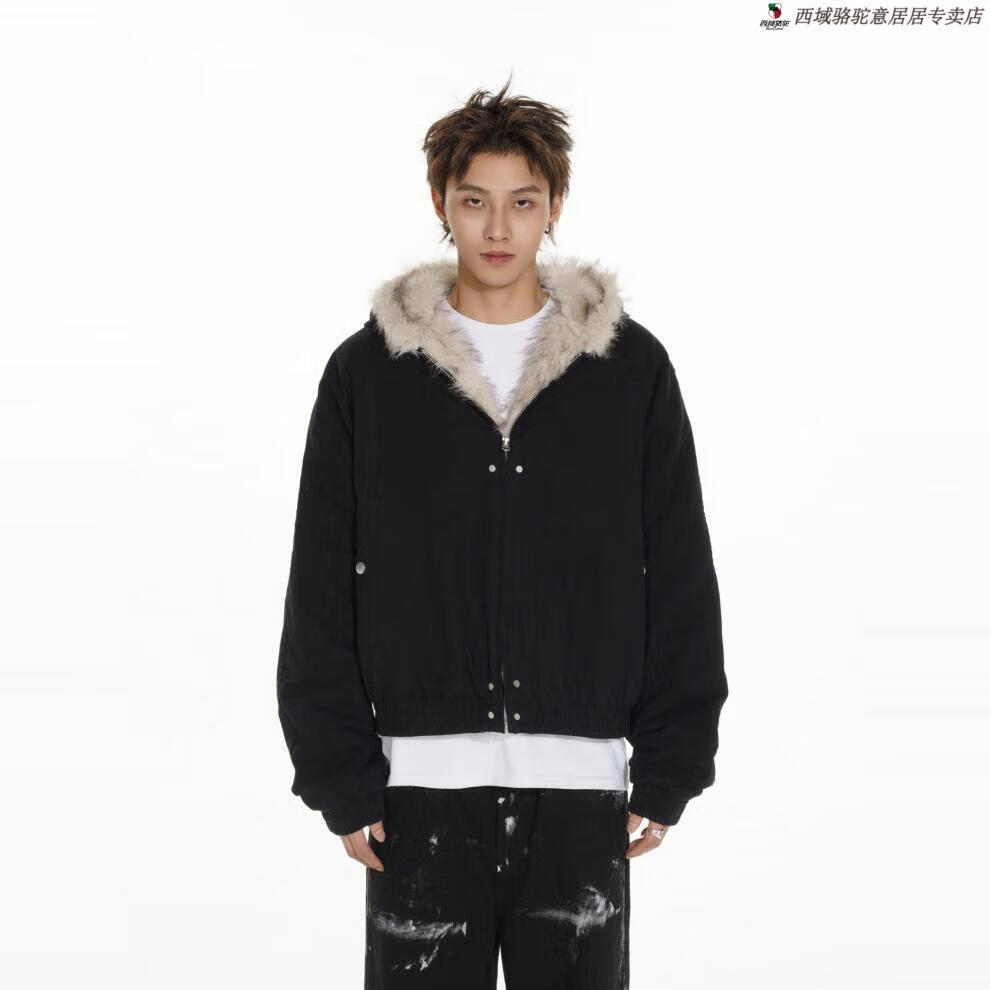 Western Camel (VANCAMEL) high-end MRNEARLY American cleanfit fur collar mountain carving jacket cotton jacket men's winter thickened short work clothes black (normal style) XL