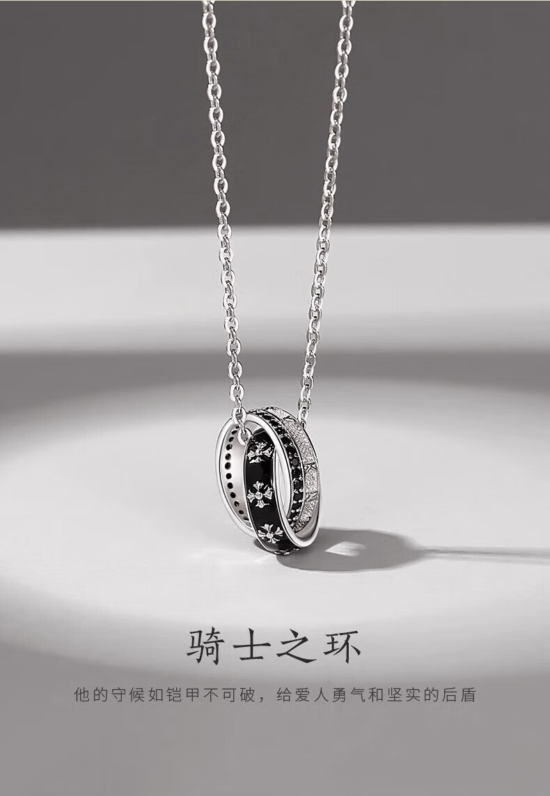 China Gold S925 Silver Riding Ring Necklace Men's Clavicle Chain Pendant Jewelry Practical Birthday Gift for Boyfriend *Free Ghostwriting Greeting Card/Customized Engraving Take this message