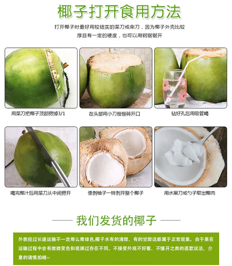 Hainan Coconut Green Hainan Straight Hair Freshly Picked Fresh Pregnant Women Amniotic Water Tender Coconut Specialty Fruit Coconut with Skin Single Fruit 3-5 Jin Jin equals 0.5 kg About 6 pcs