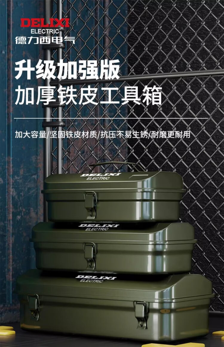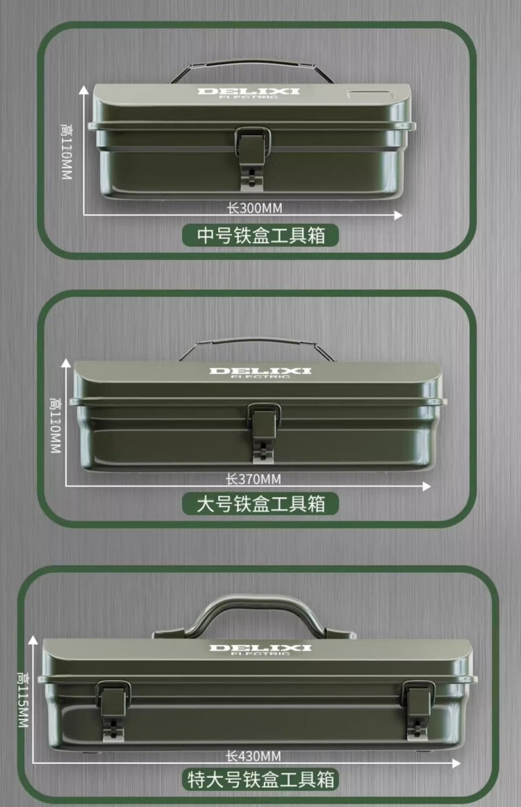Delixi Multifunctional Household Hardware Tool Box Industrial Grade Storage Box Thickened Metal Auto Repair Tin Car Box Large and Thickened Huge Size 430*215*140 + Password Lock