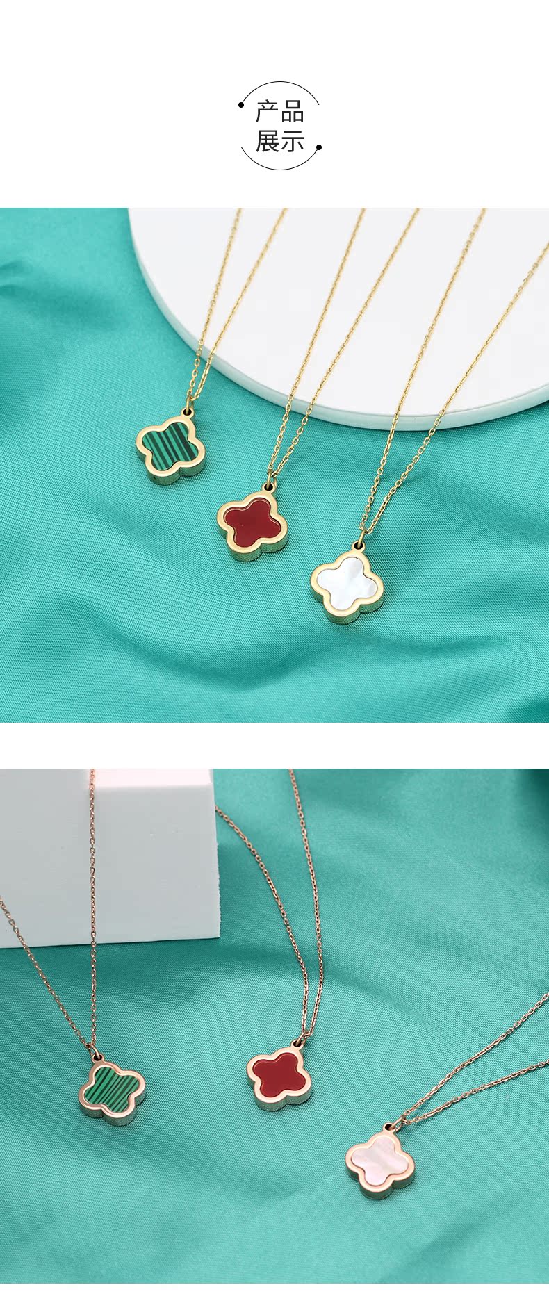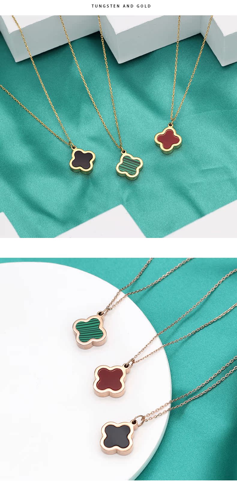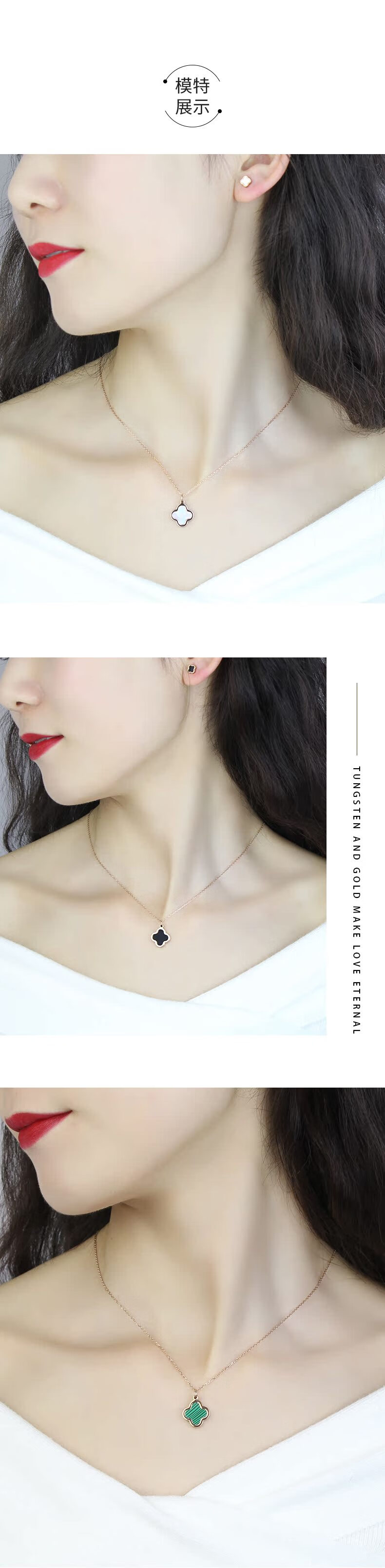 Puli K4 tungsten gold jewelry internet celebrity four-leaf clover necklace for women rose gold 18K gold clavicle chain pendant girlfriend birthday gift gold green black