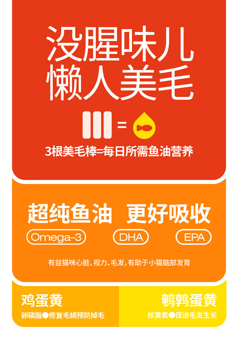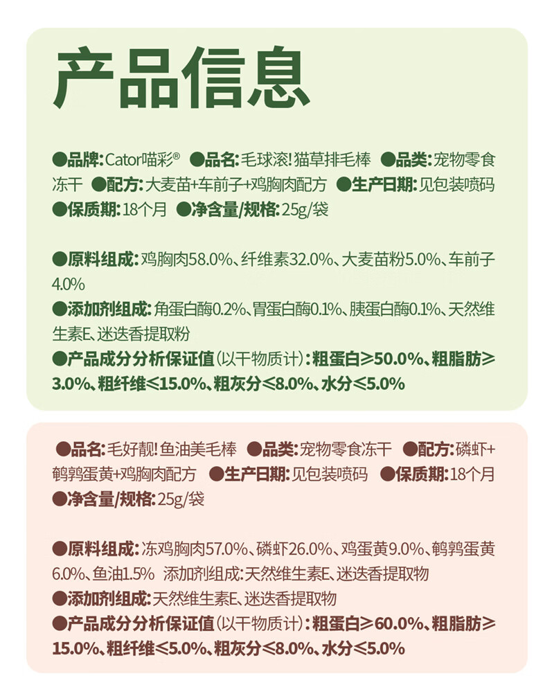 Cator Meow Colorful Pet Snacks Freeze-Dried Hair Ball Rolling Cat Good-looking Cat Grass Hair Stick Fish Oil Hair Beauty Stick Freeze-dried Chicken Cat Grass Hair Stick 25g