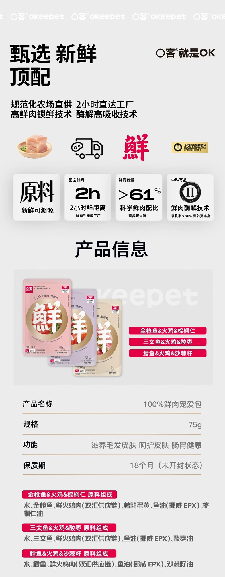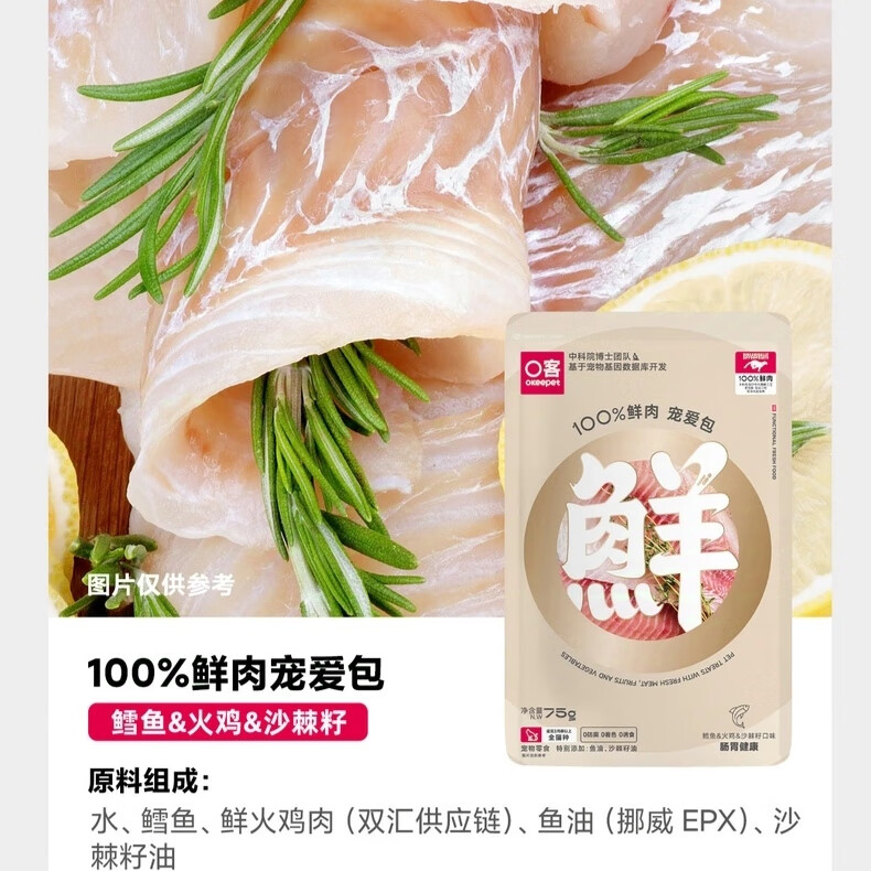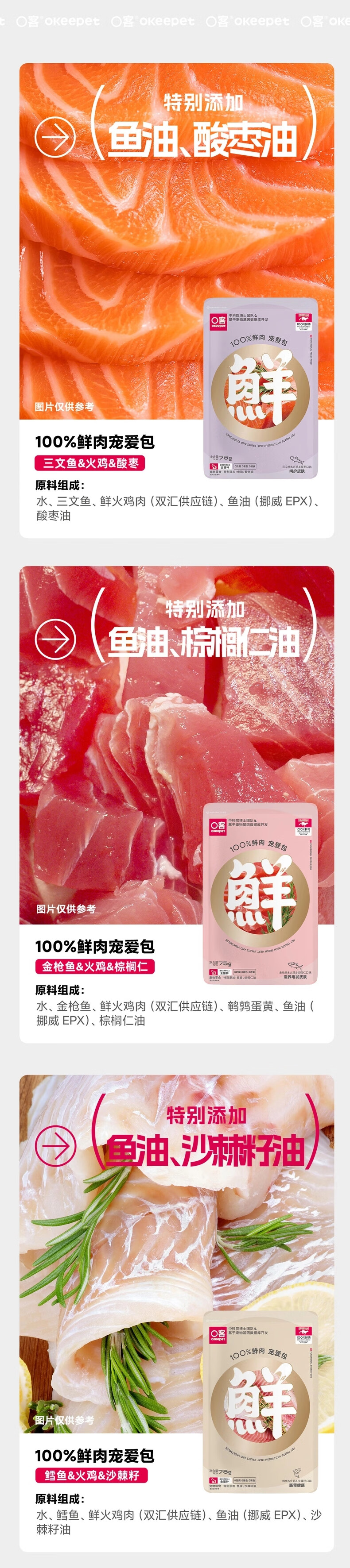 Baichan Pampering Pack Fresh Meat 0 Added Salmon, Cod, Tuna, Cat and Dog Staple Food Wet Food Replenishing Meat Meal Pack (for Cats) Tuna Palm Kernel 75g*6 Packs (Nourishment 75g