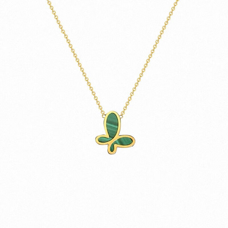Puri Butterfly Necklace Women's 19716 gold-plated 22K gold malachite white mother-of-pearl carnelian candy pink sterling silver invincible butterfly necklace/white mother-of-pearl