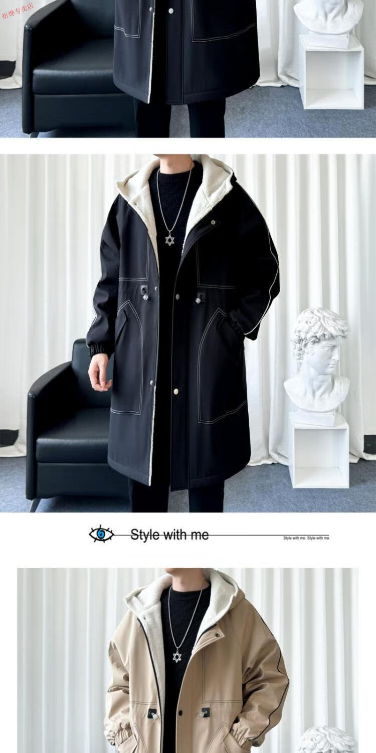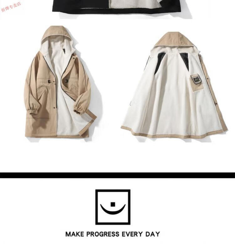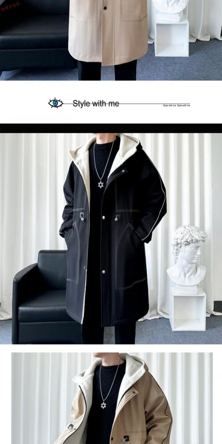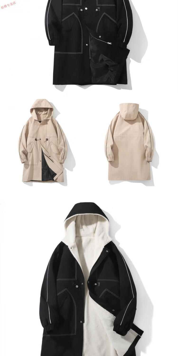 JEEP velvet thickened lamb velvet coat men's autumn and winter handsome hooded windbreaker coat mid-length jacket black velvet M