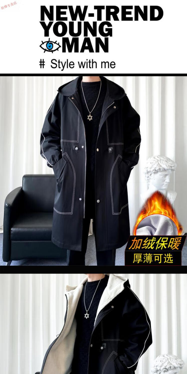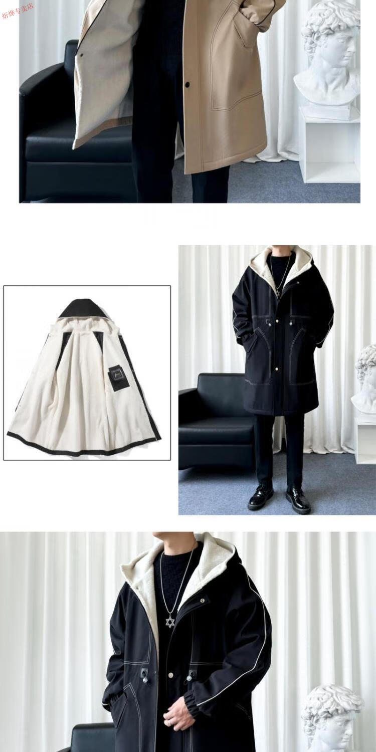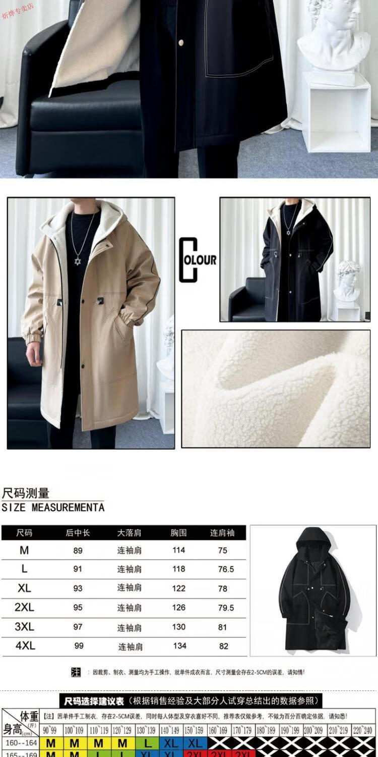 JEEP velvet thickened lamb velvet coat men's autumn and winter handsome hooded windbreaker coat mid-length jacket black velvet M