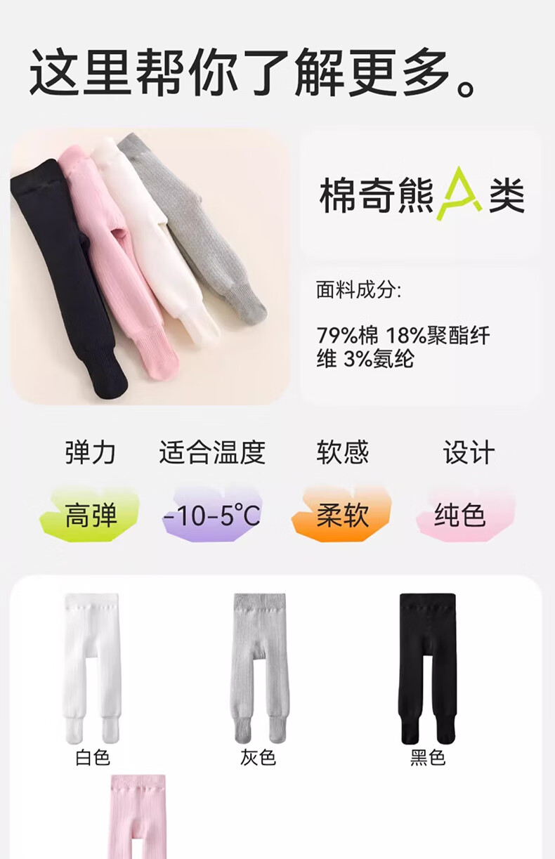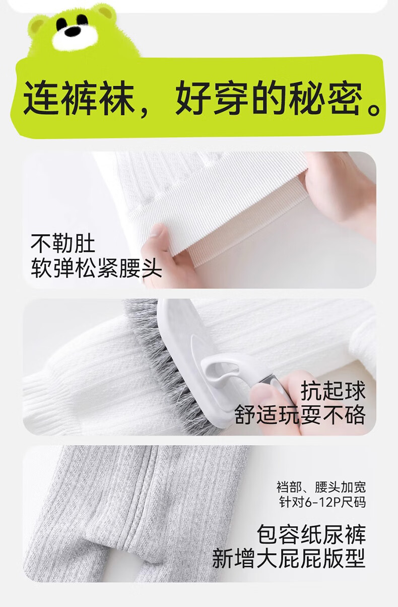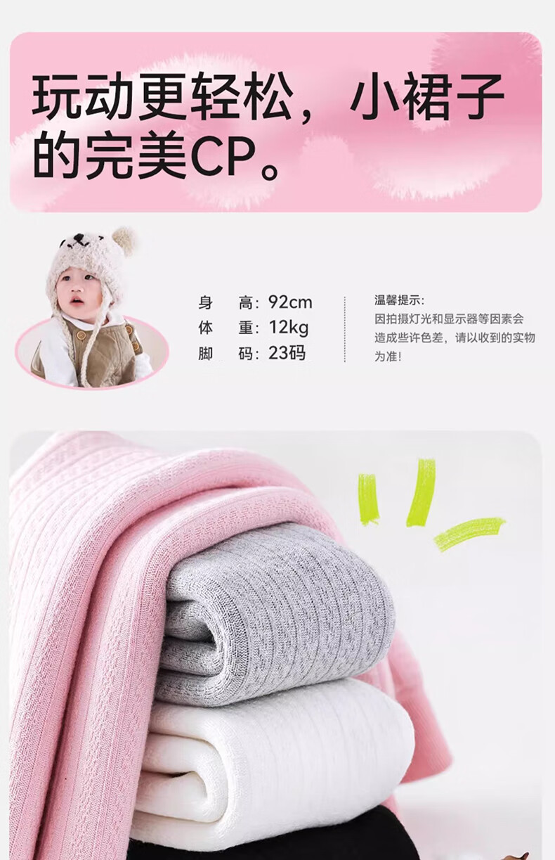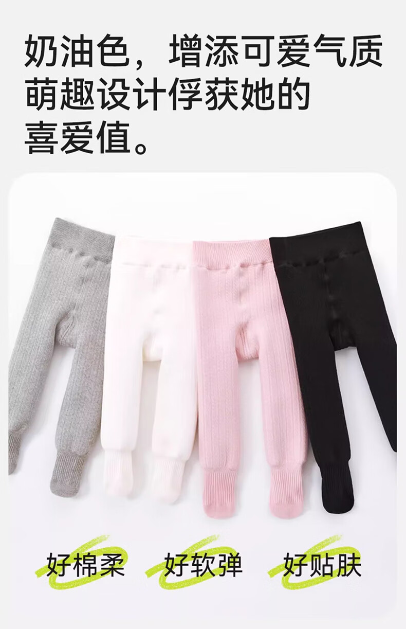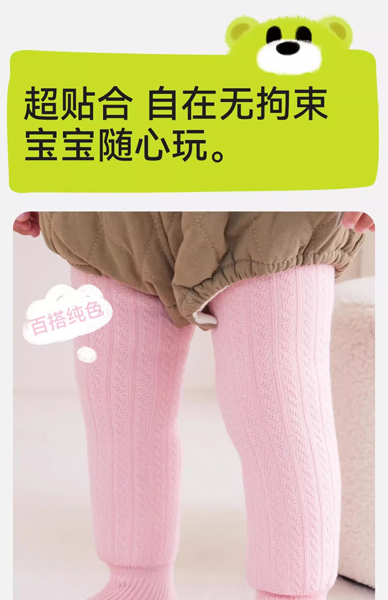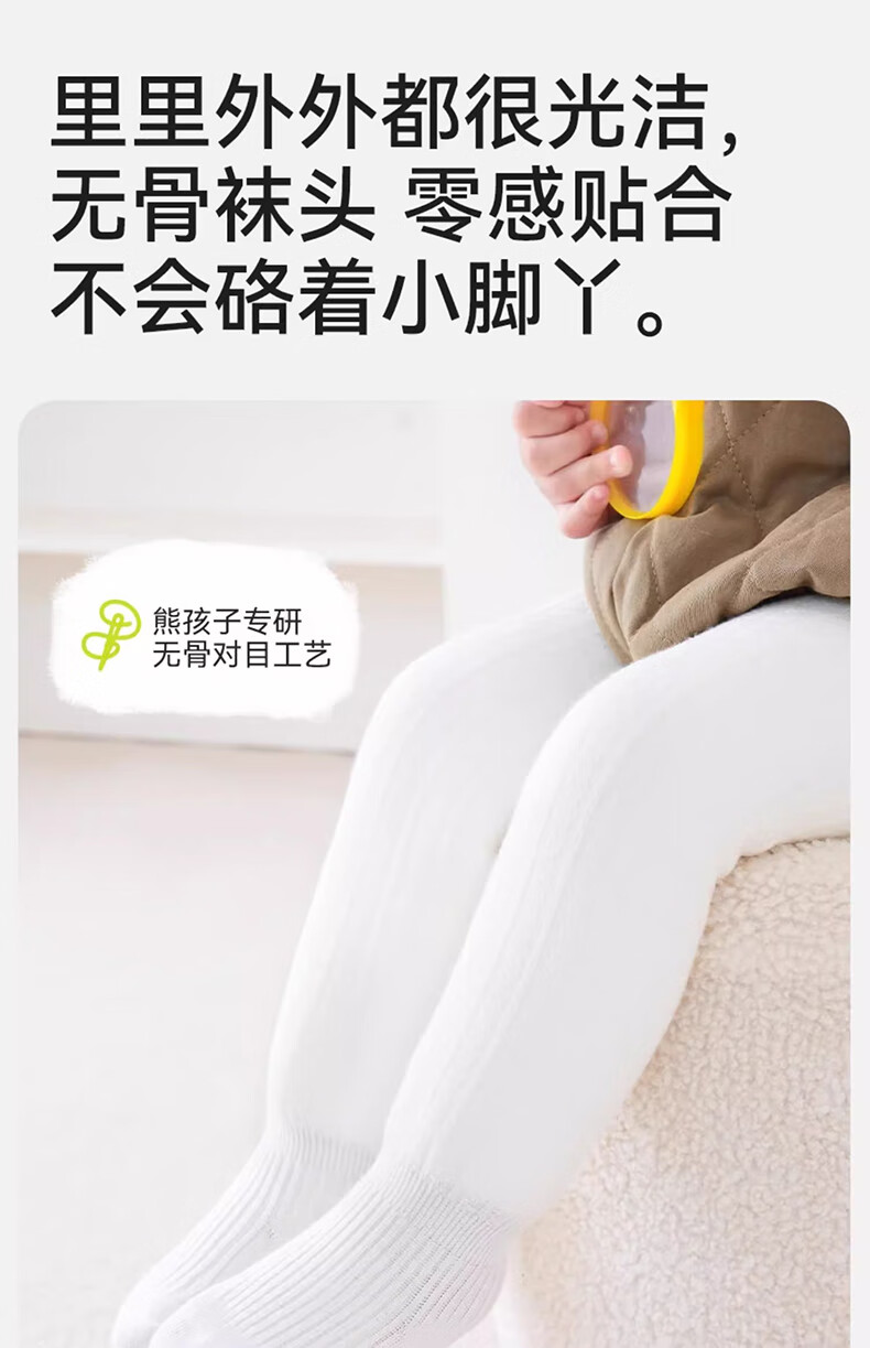 Mianqi Bear baby leggings winter thickened plus velvet baby pantyhose girls autumn and winter all-in-one velvet warm children's pantyhose KW74-824 white soft and skin-friendly 1 pair 1-3 years old - pants length 50cm