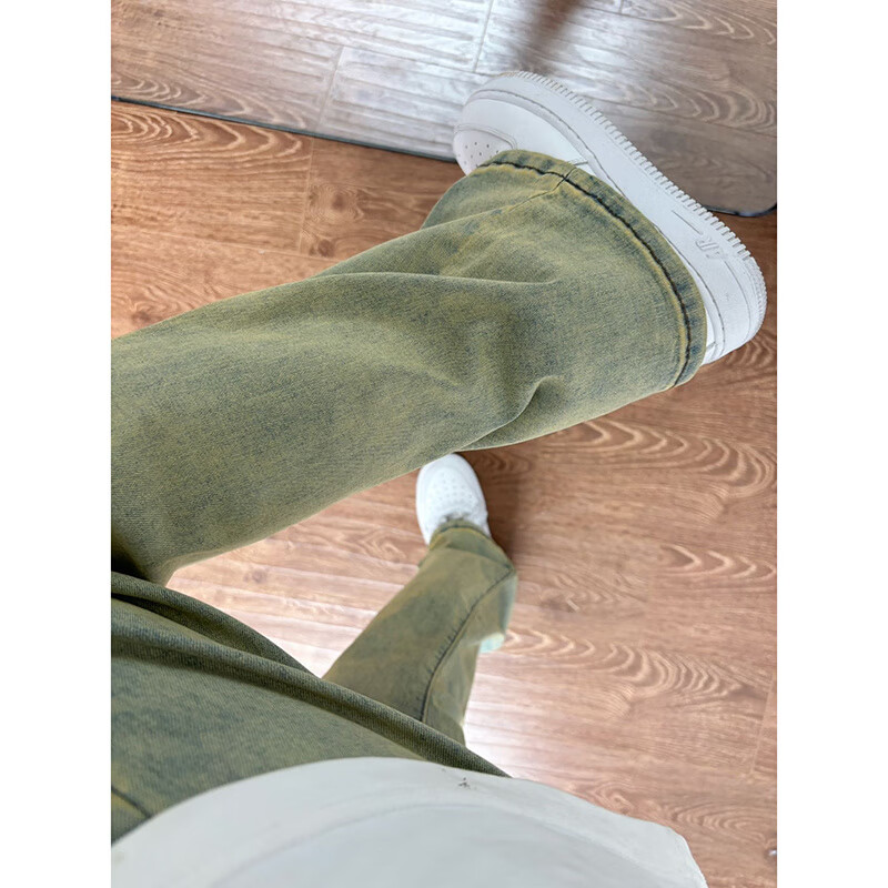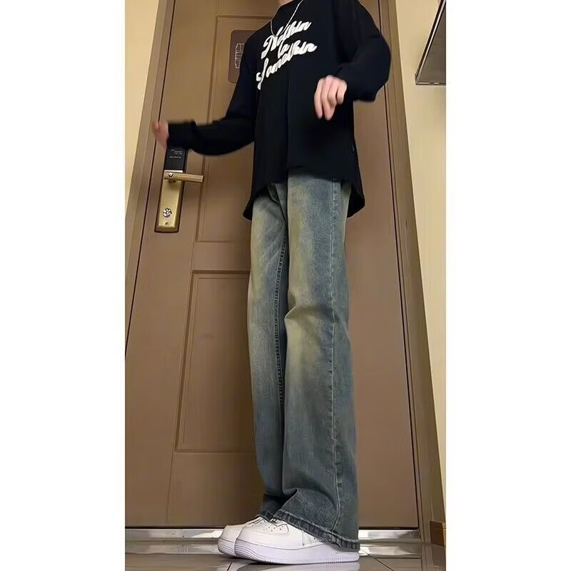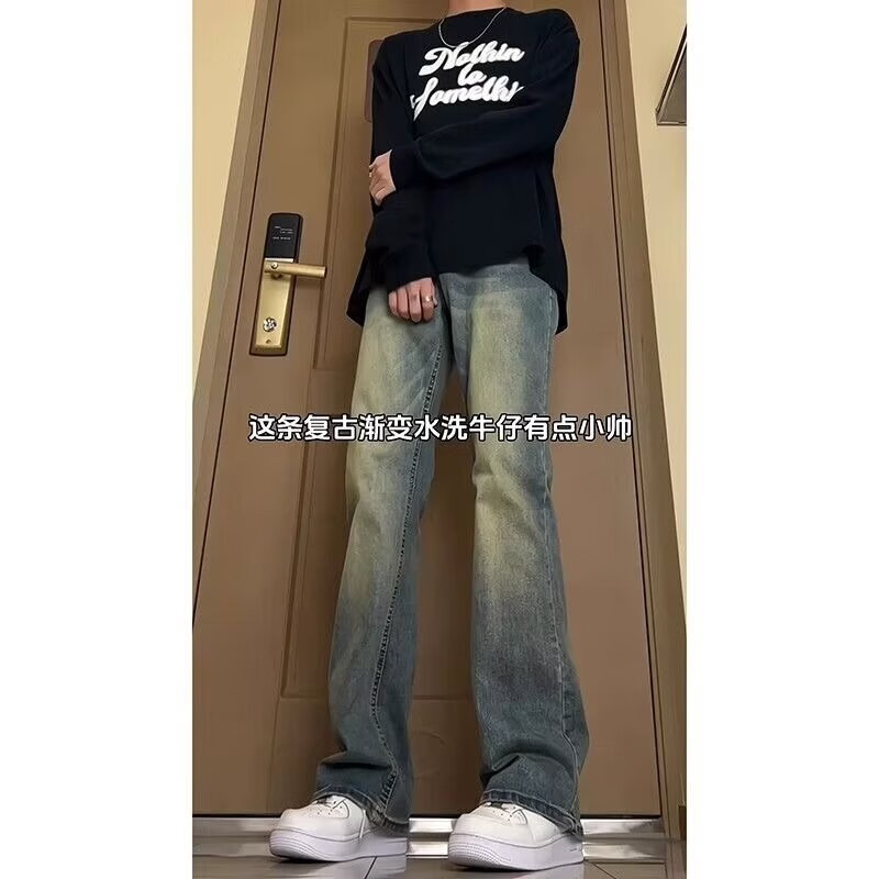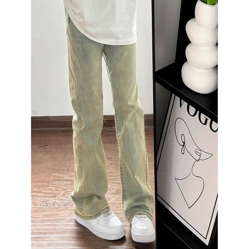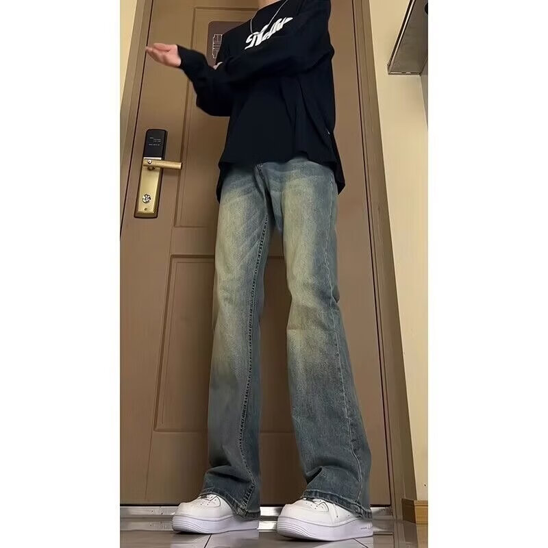 Digada American trendy winter retro distressed bootcut jeans for men with velvet and drapey floor-length men's trousers warm trousers YGFS-D824 yellow mud color regular M recommended 80-100Jin Jin equals 0.5 kg