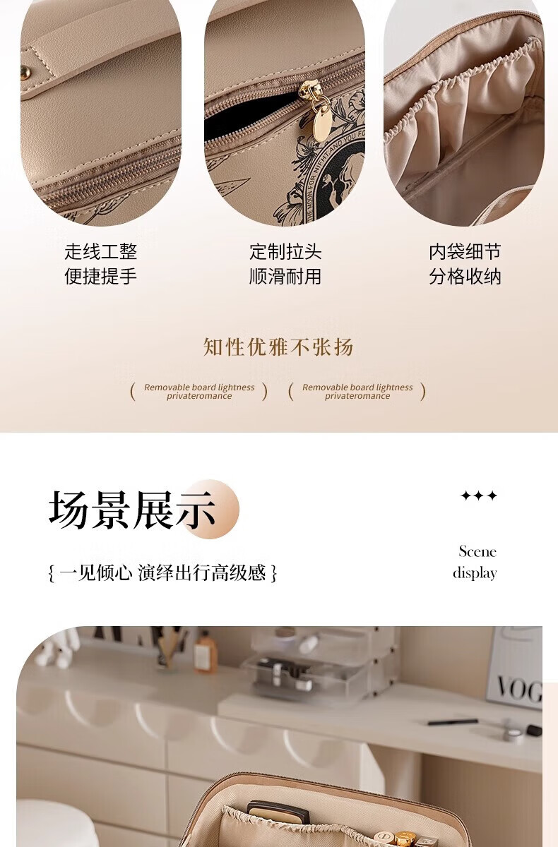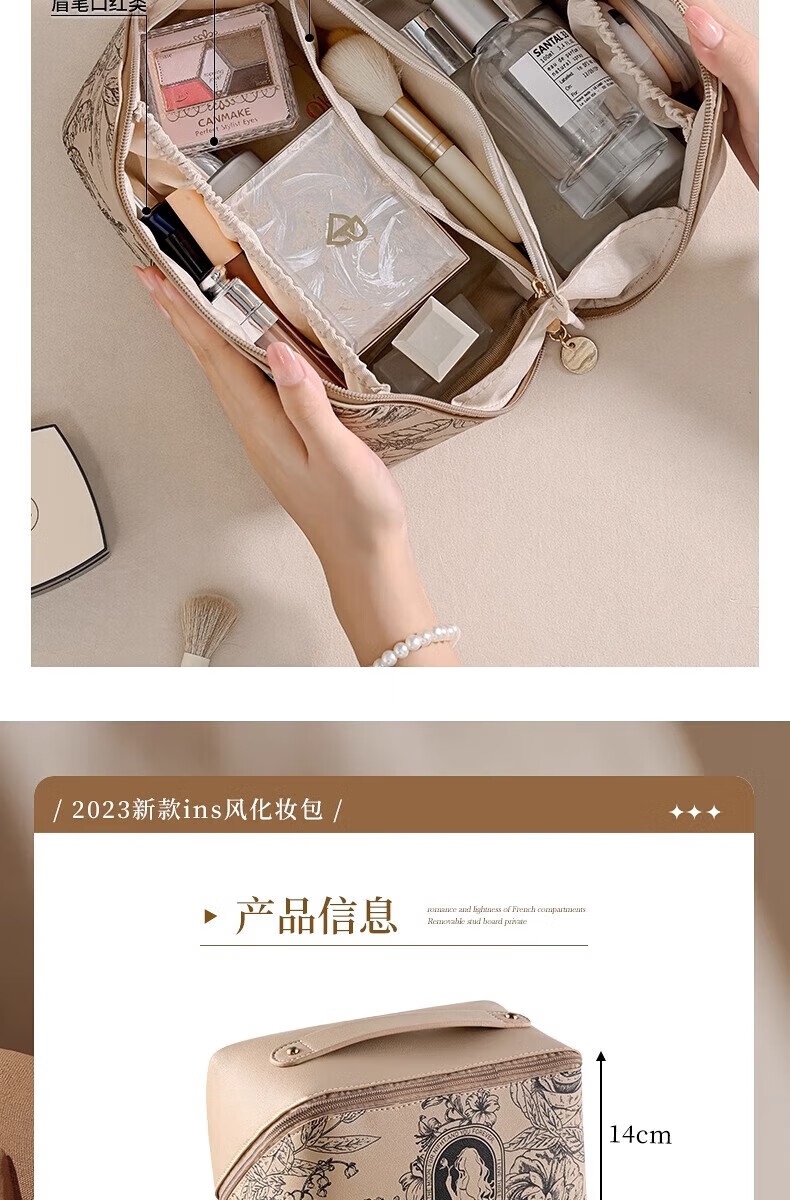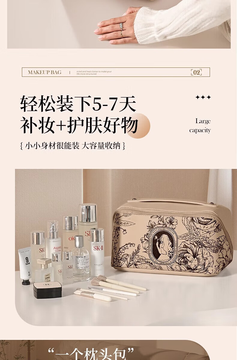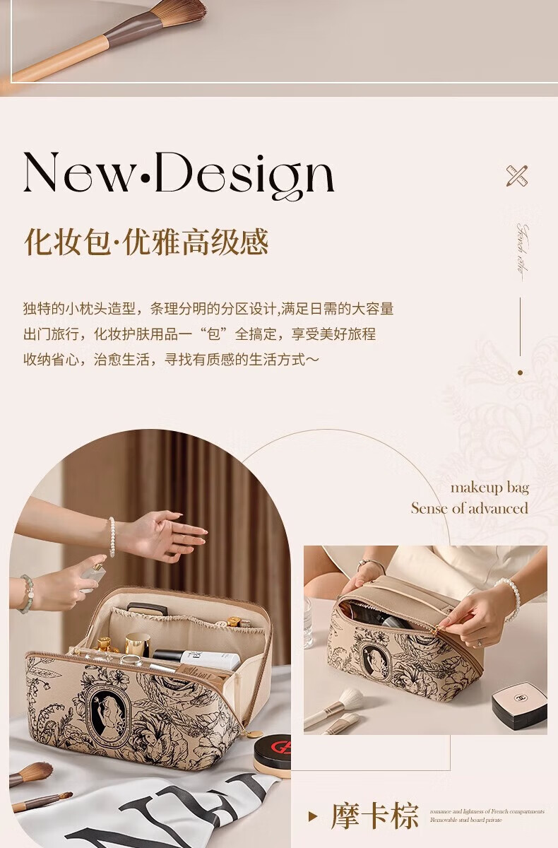 Mai Shute Cosmetic Bag Women's Large Capacity 2025 New High-End Portable Travel Cosmetic Wash Storage Bag Mocha Brown