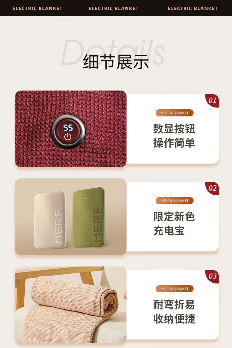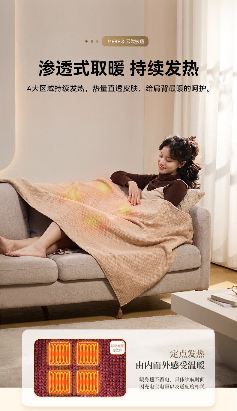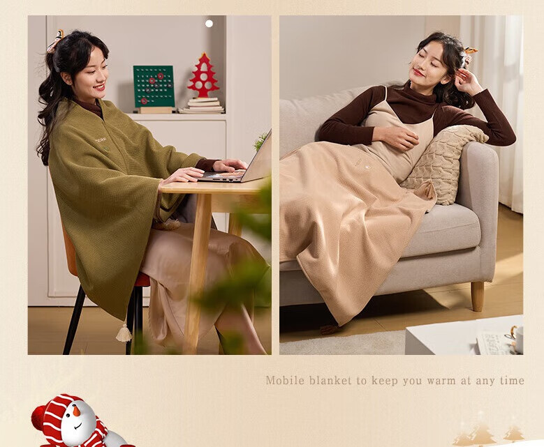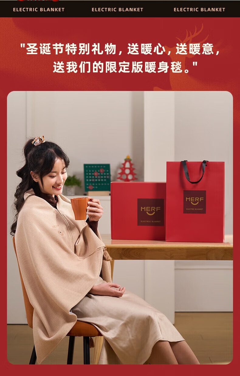 Merf Yunshang Electric Heating Blanket Heating Shawl USB Washable Leg Cover Outdoor Home Office Christmas Edition Christmas Limited Edition Shanzhi Green + 5000 mAh Power Bank + Gift Box
