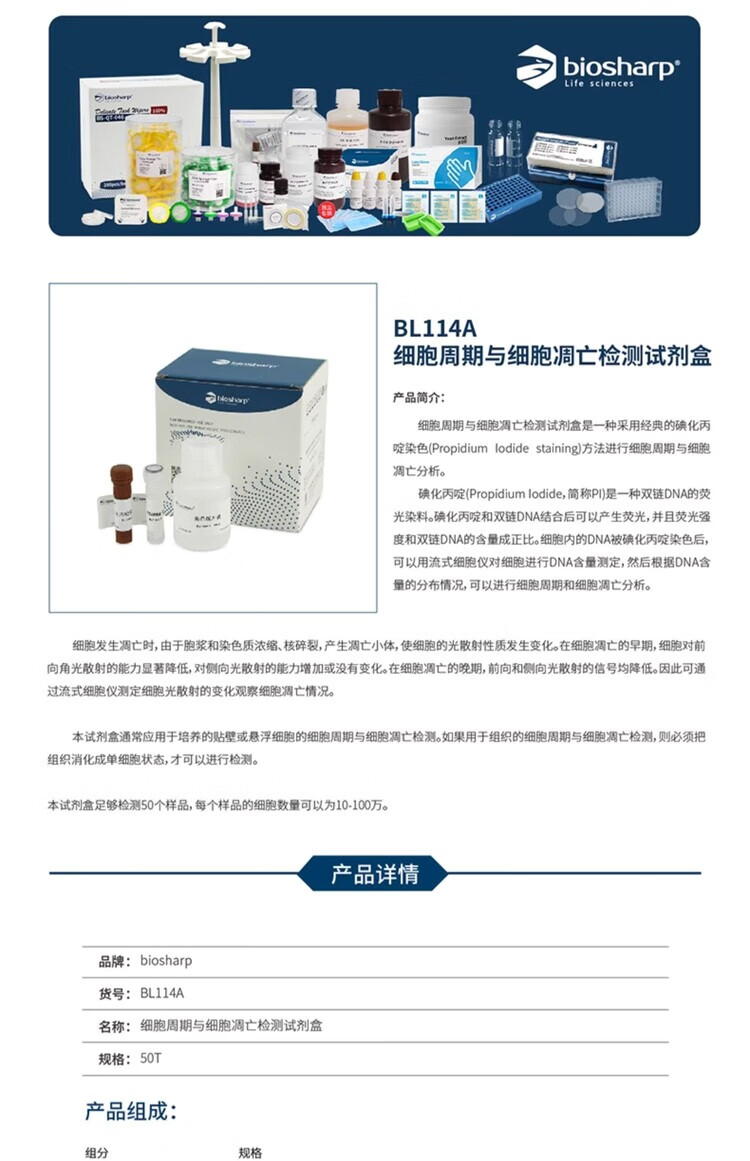 BIOSHARP LIFE SCIENCES White Shark Cell Cycle and Apoptosis Detection Kit BL114A (50T/box)