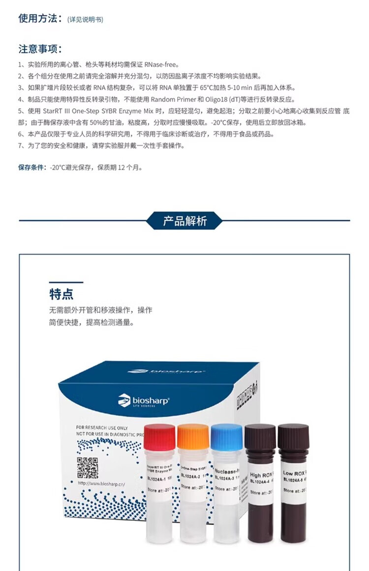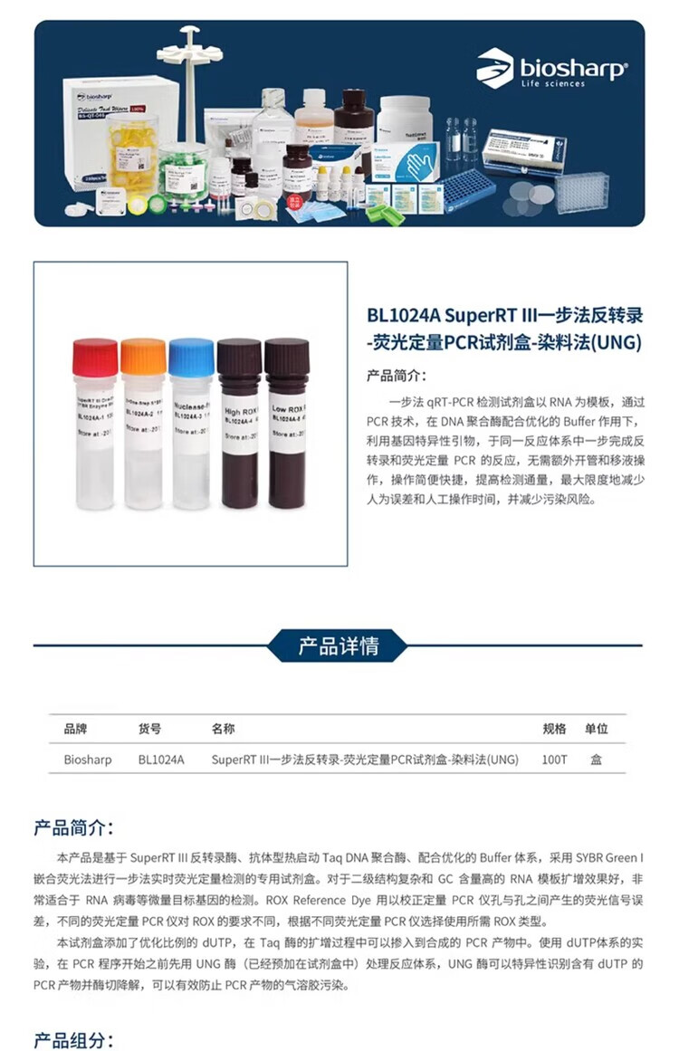 BIOSHARP one-step reverse transcription-fluorescence quantitative PCR kit-dye method (UNG) BL1024A (100T/box)