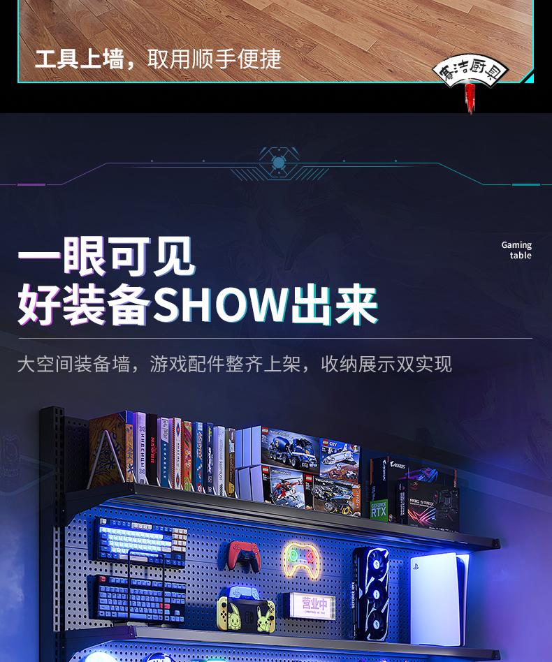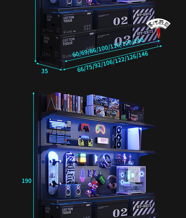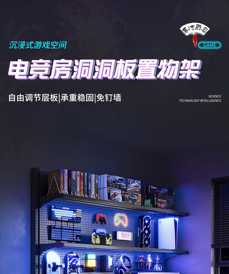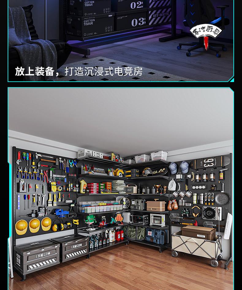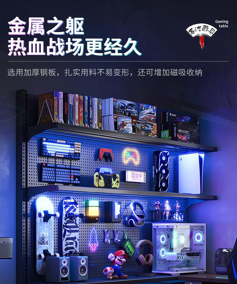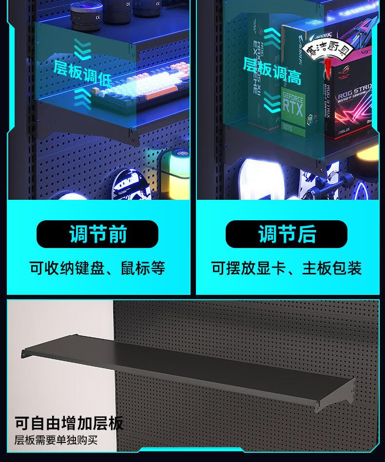 ROG gaming room accessories vertical hole-board storage rack floor-standing metal storage rack no punching computer desktop Samurai black 147*35*190 with 6-layer board +8