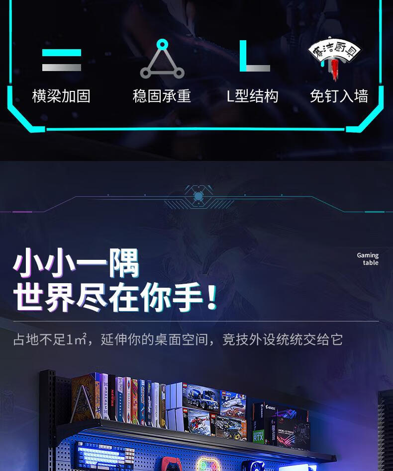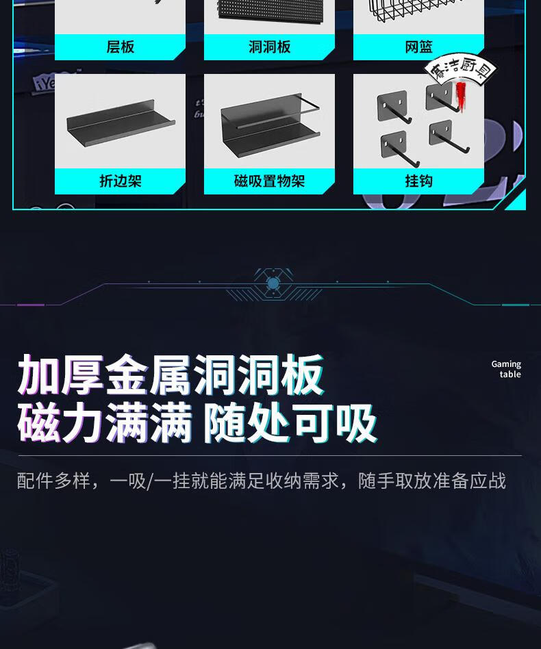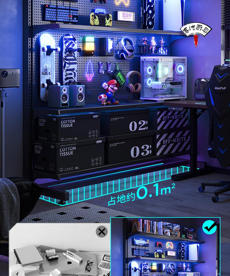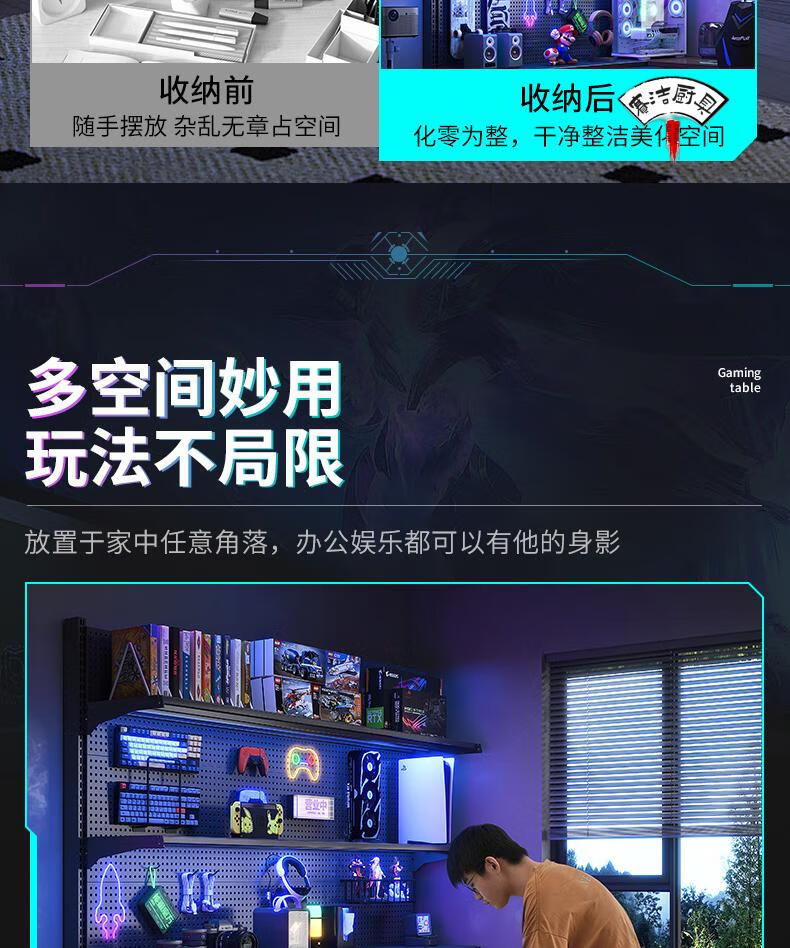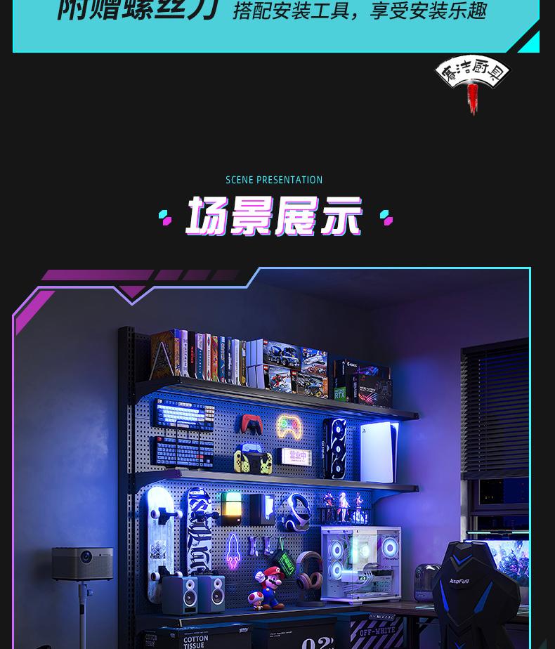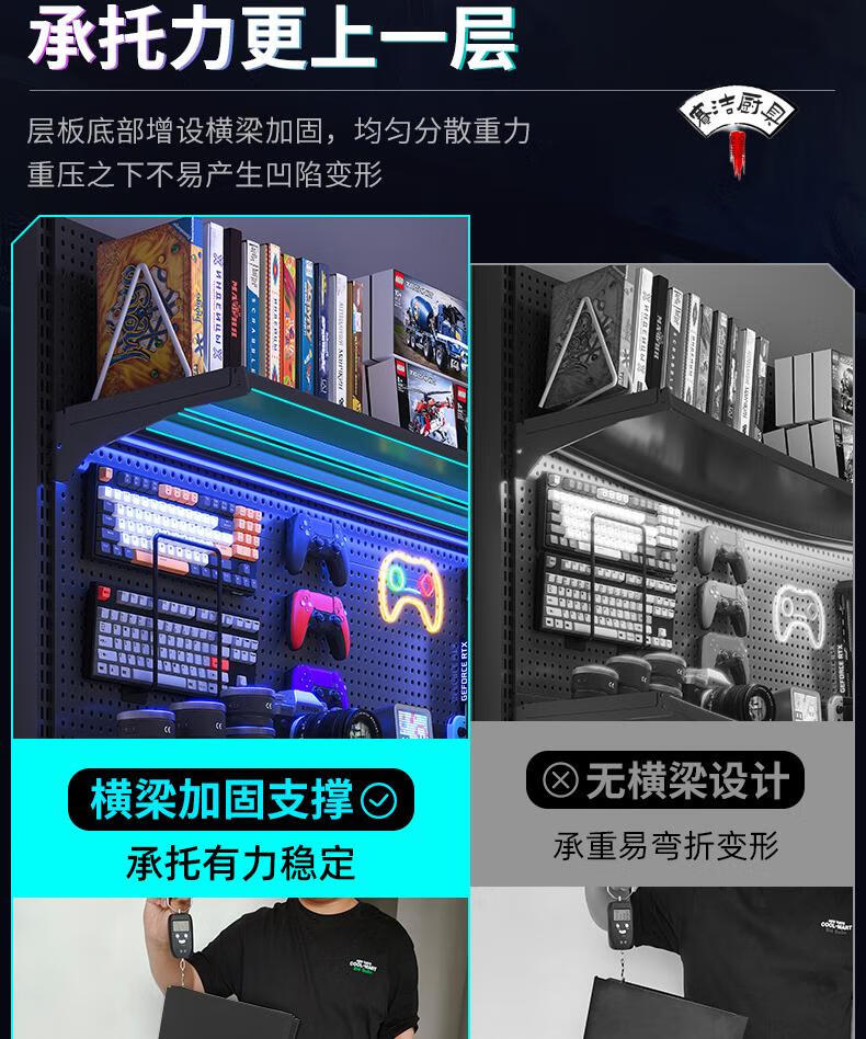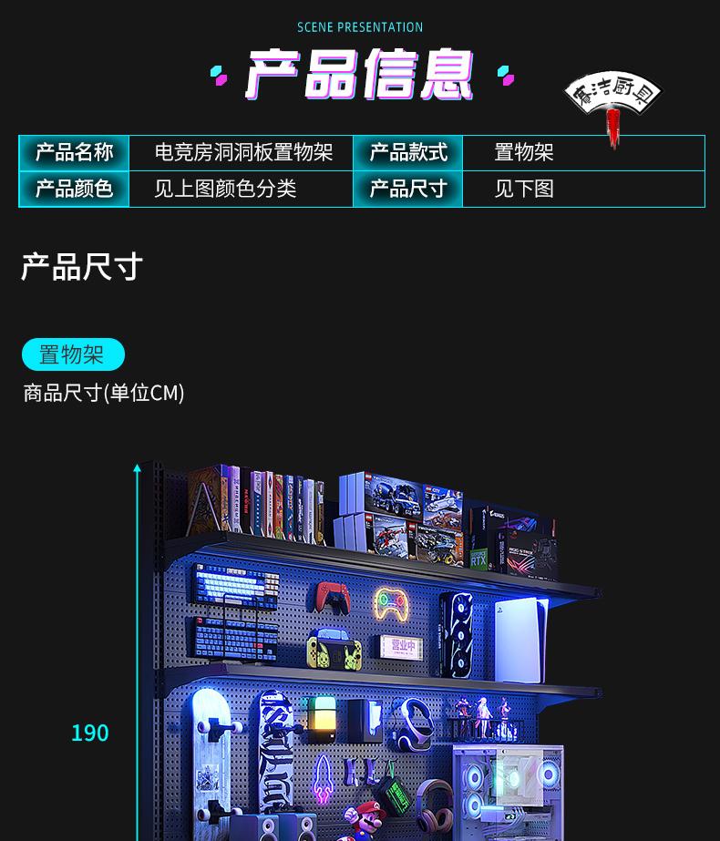 ROG gaming room accessories vertical hole-board storage rack floor-standing metal storage rack no punching computer desktop Samurai black 147*35*190 with 6-layer board +8