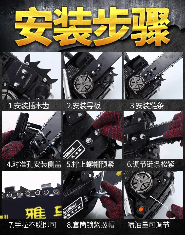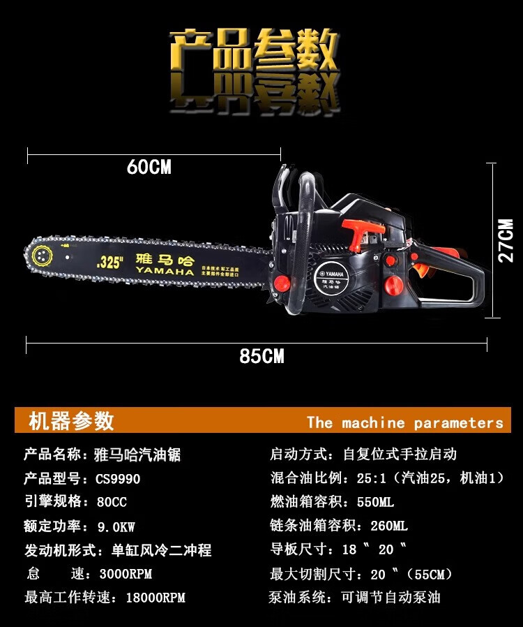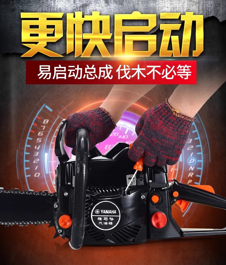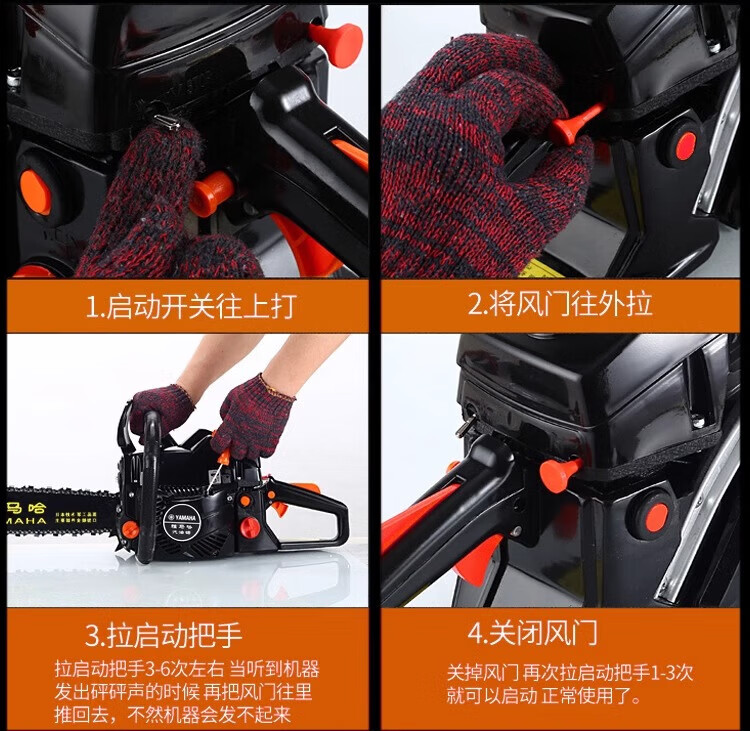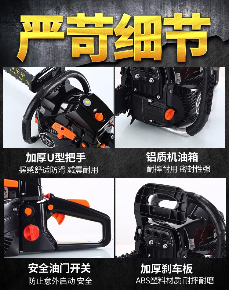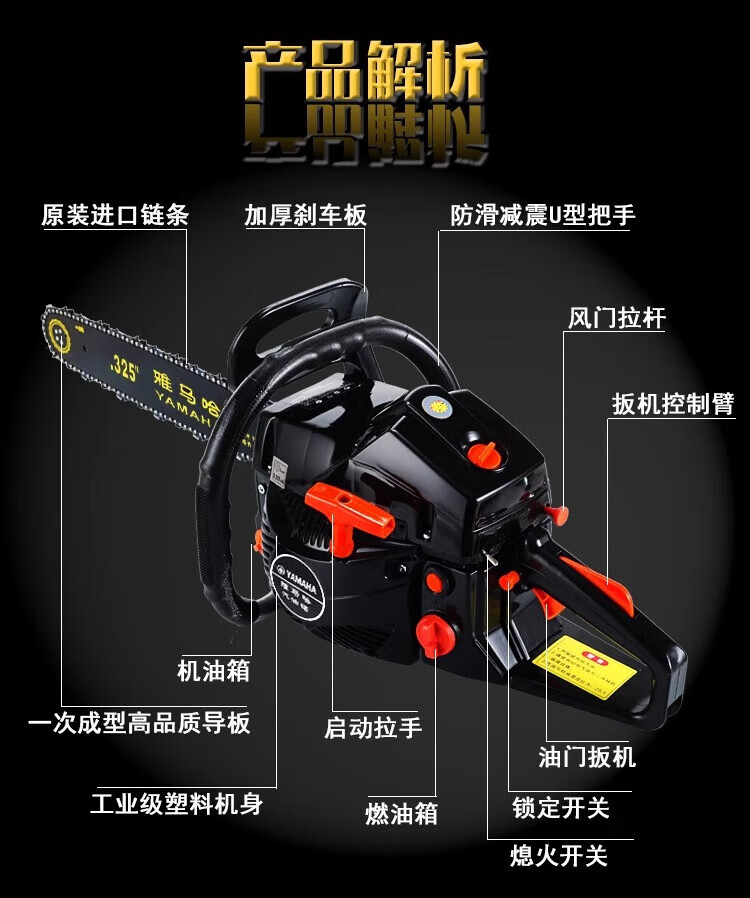 Yamaha Yamaha chain saw imported high-power gasoline saw four-stroke chain saw household small handheld tree feller felling saw upgraded black model (with 3 domestic chains) + gift bag