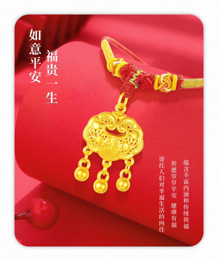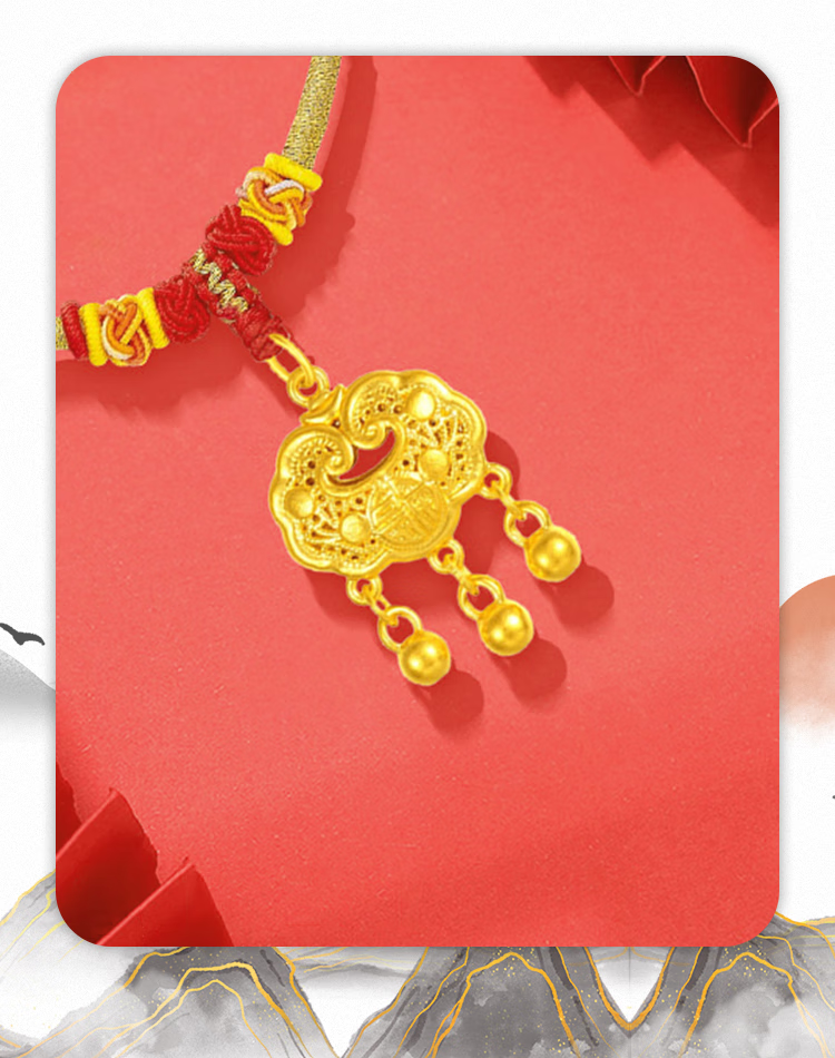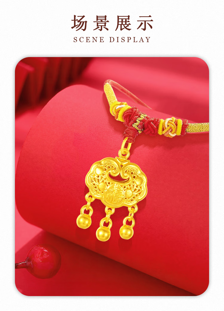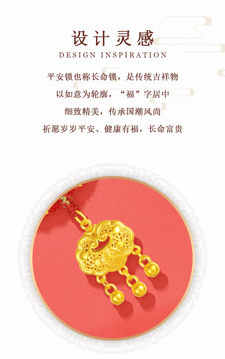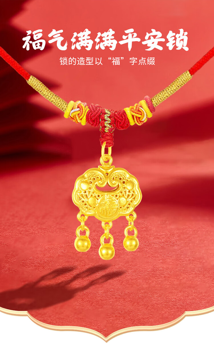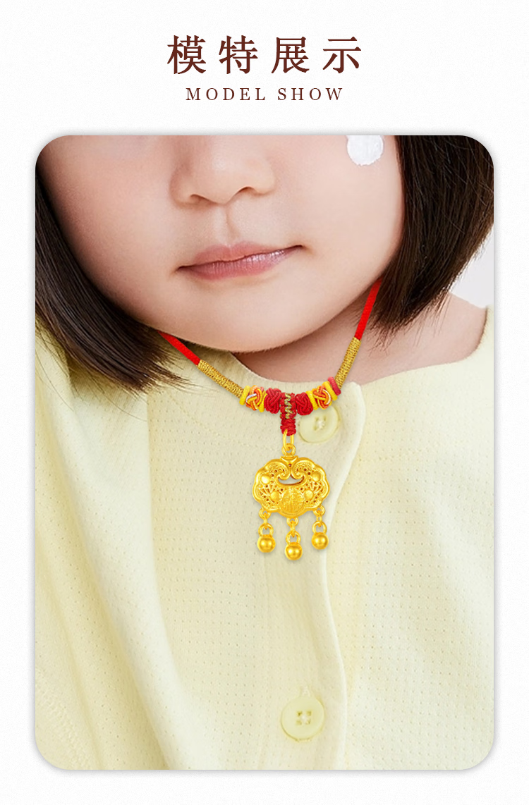 China Gold (CHINA GOLD) gold blessing gold lock necklace baby set pure gold long life safety lock pendant baby gold jewelry one-year gift today/next day delivery safety lock necklace red rope about 0.8g