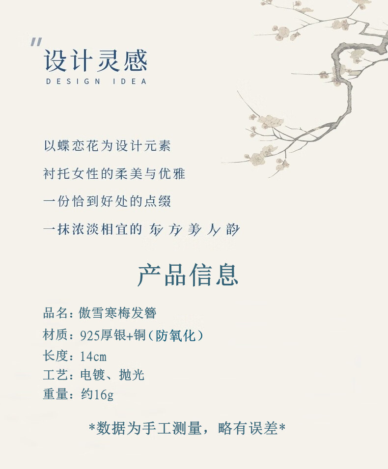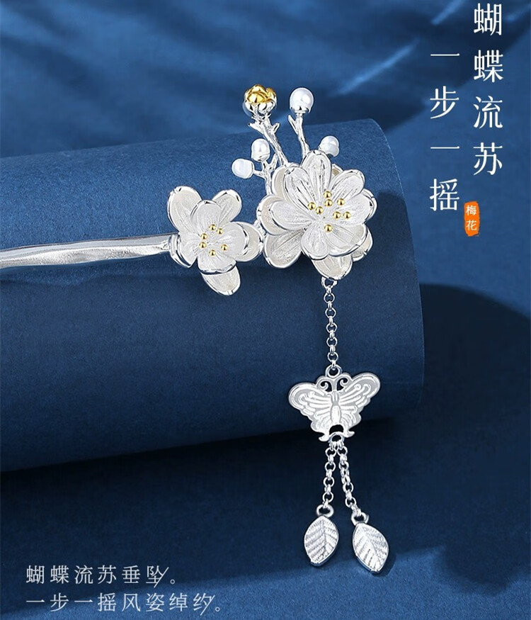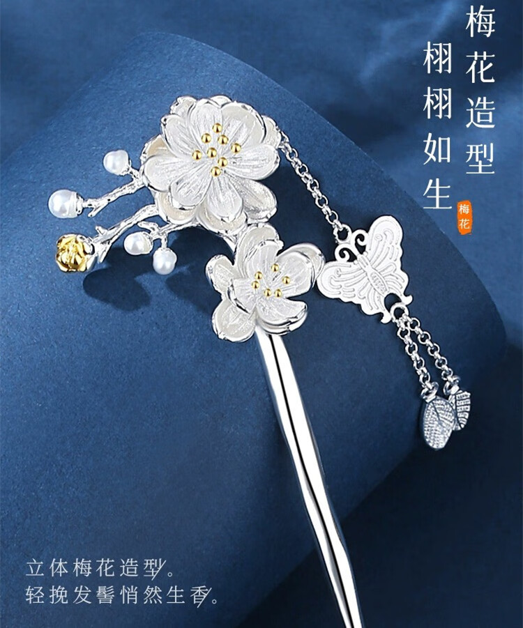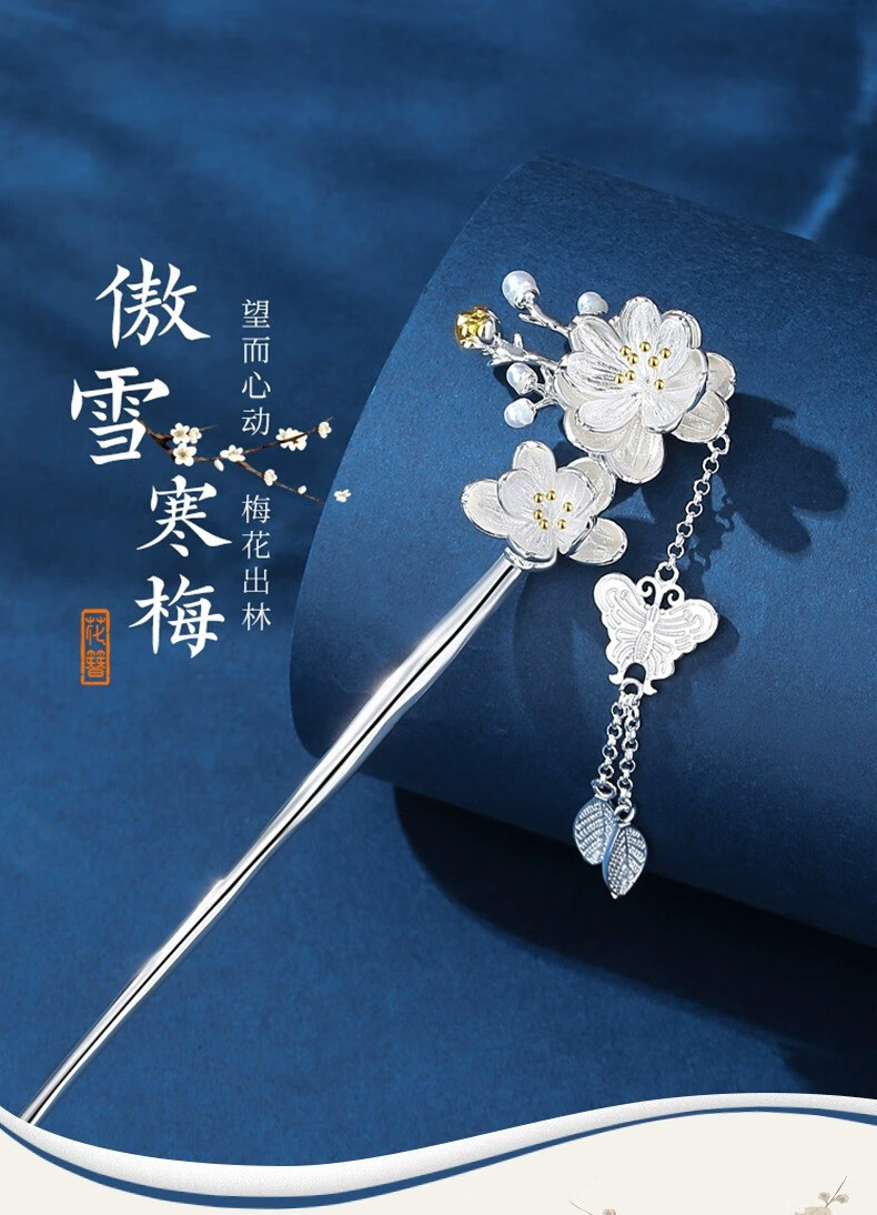 Muqianmeihua Dingqing 925 sterling silver new Chinese style daily wear plate found modern silver hairpin as a gift for girlfriend Aoxue Hanmei hairpin + ordinary packaging