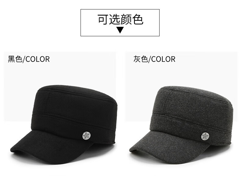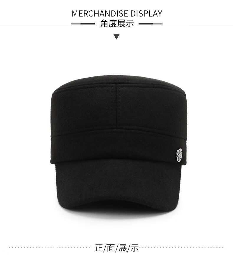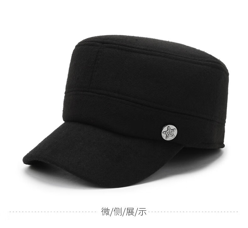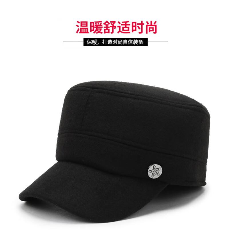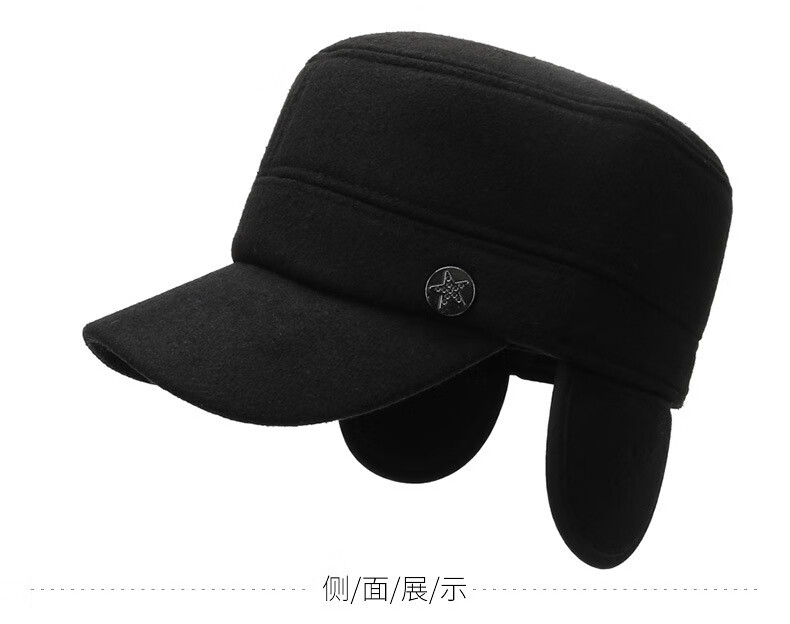 Wife charming middle-aged and elderly men's hat winter dad ear protection flat cap plus velvet thick peaked cap to keep grandpa old man cotton hat A51-1 style hat black adjustable