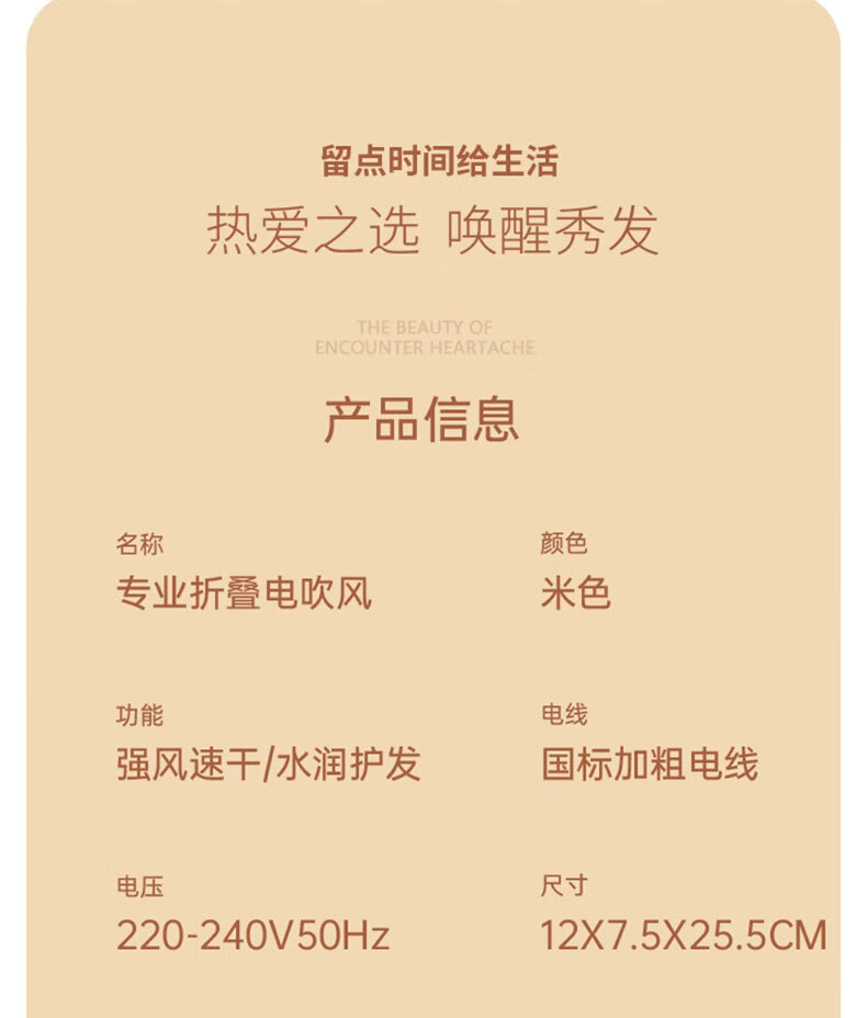 RURE Germany Negative Ion Care Hair Dryer Foldable Hair Dryer Home Light Sound High Power Negative Ions Does Not Hurt Hair Dormitory Students Portable Quick Drying Hair Dryer Top Model Blue Light Hair Care + 2 Billion Negative Ions + 2200W Khaki