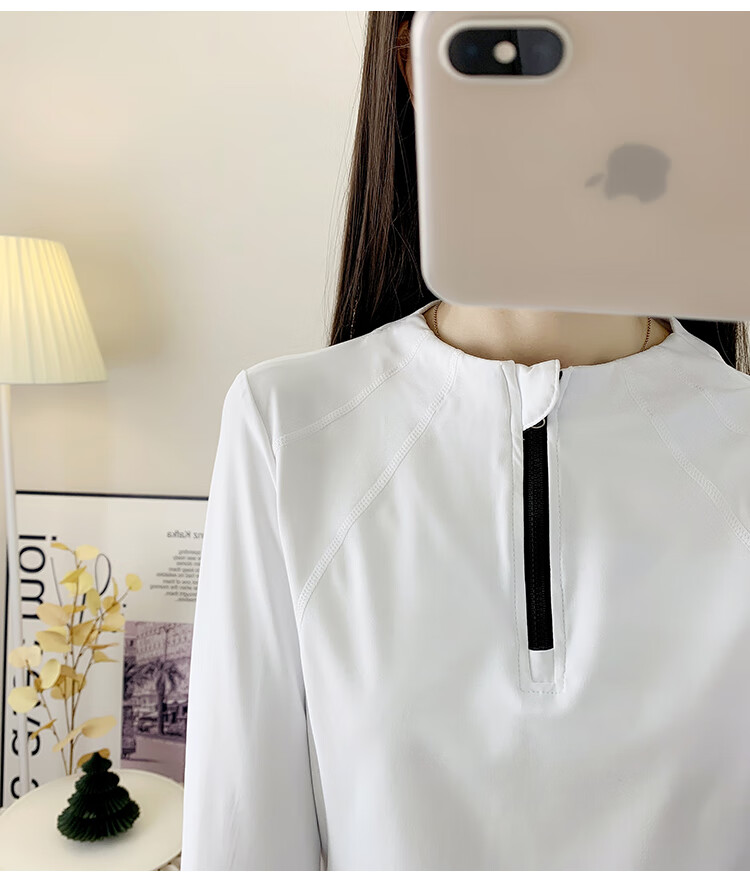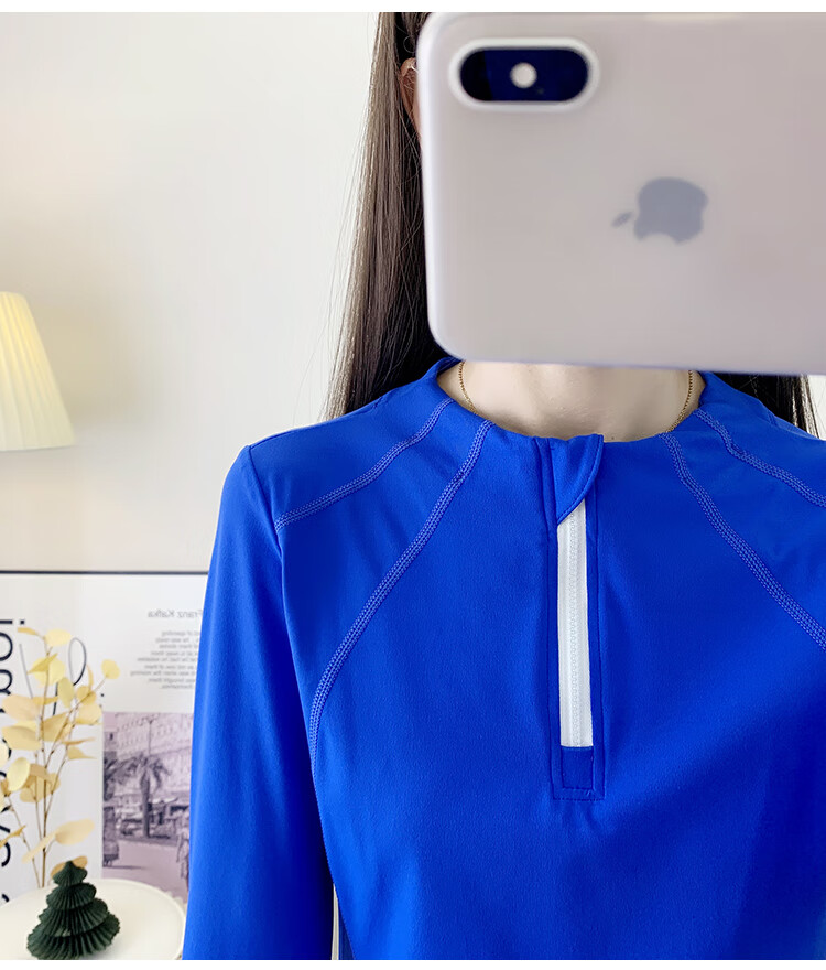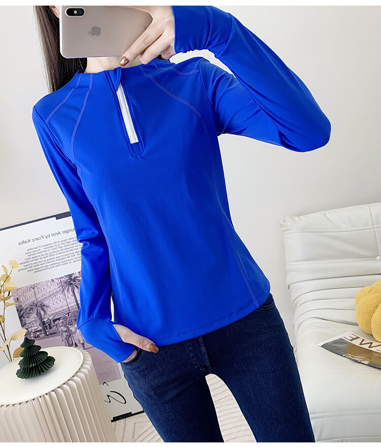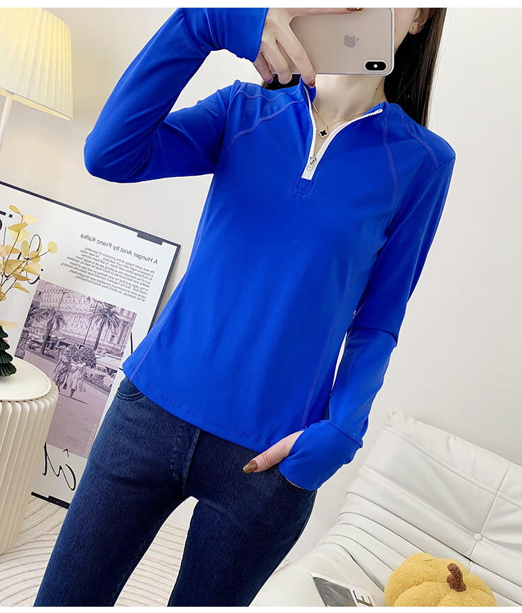 JEEP SPIRIT sports quick-drying t-shirt women's long-sleeved slim half-zip fitness yoga wear Pilates outdoor running hiking top blue L