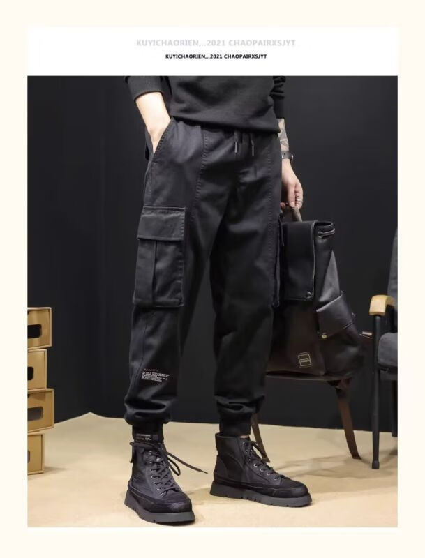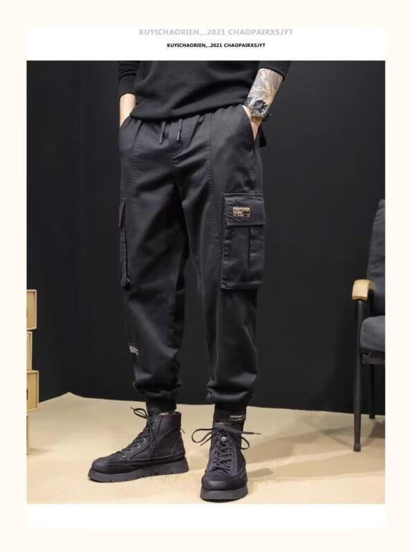 Men's overalls 2025 spring and summer velvet new style trousers for men, slim, sporty, loose-fitting, versatile, wear-resistant, black velvet, 4XL