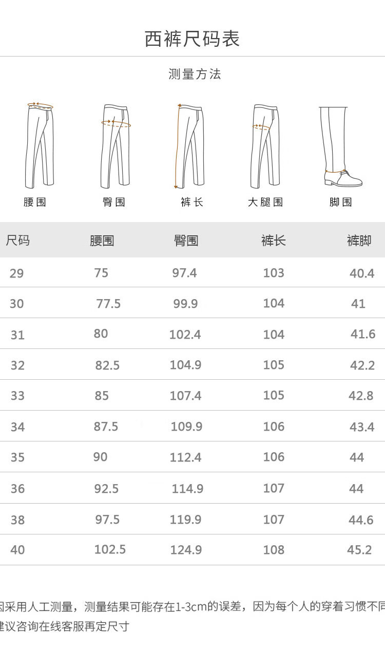 Outseam (cm) 99 cm 101.5 cm 104 cm 106.5 cm 109 cm