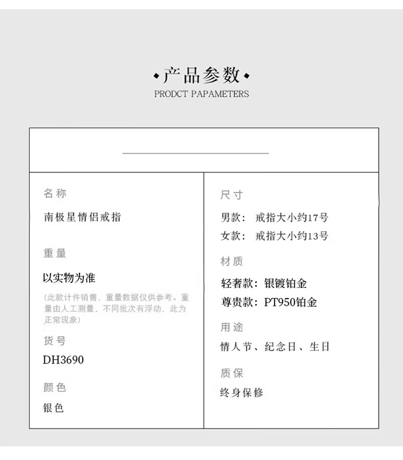 Dirholl Nanjixing platinum ring PT950 light luxury couple ring birthday 520 Valentine's Day gift for girlfriend and wife light luxury model-Nanjixing ring-no engraving