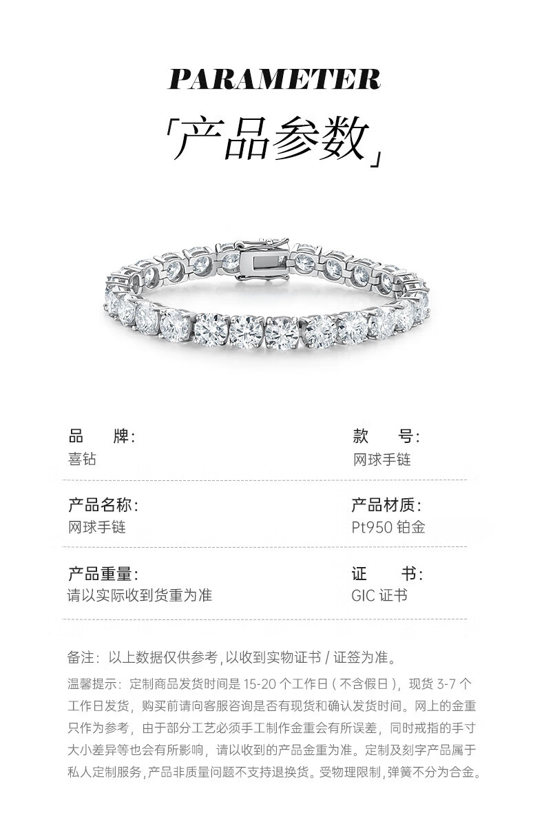 Hi diamond platinum diamond bracelet for women 1 carat four-claw tennis bracelet full of diamonds row of diamonds bracelet for girlfriend Valentine's Day gift Pt950 platinum total 1 carat full diamond bracelet