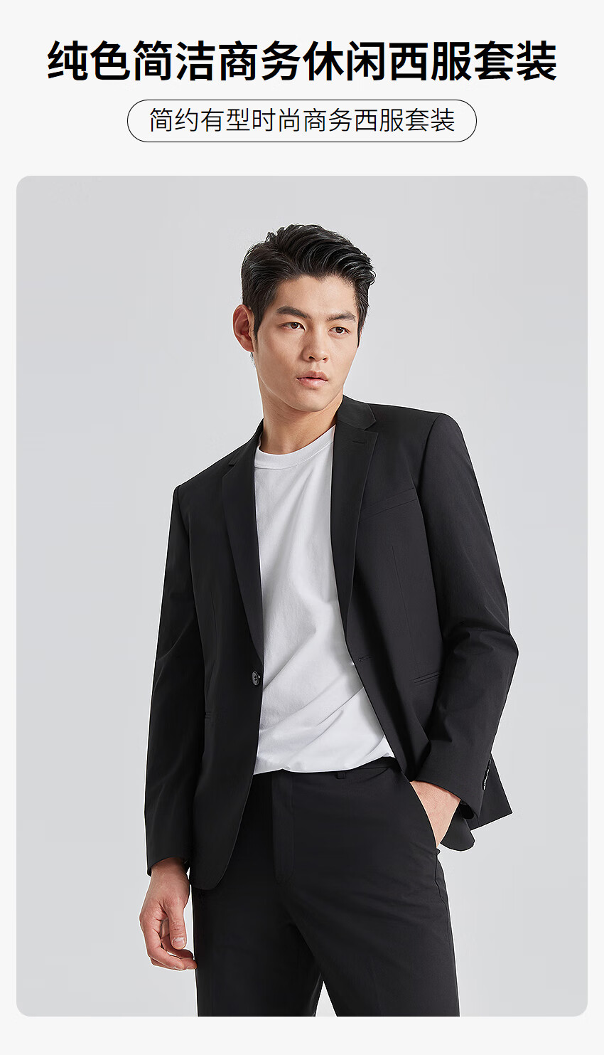 Lilang Stretch Sports Suit Suit Men's Spring 2025 New Business Men's Light Suit Wedding Formal Suit Black (G5CXF861SA) 2XL 180/92A Pants 180/86A