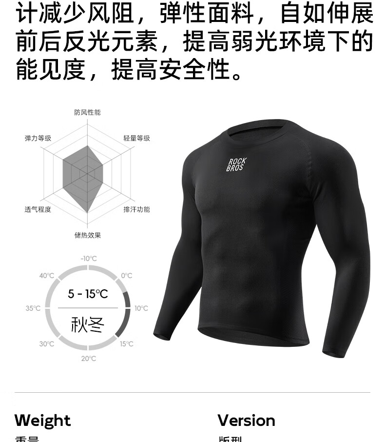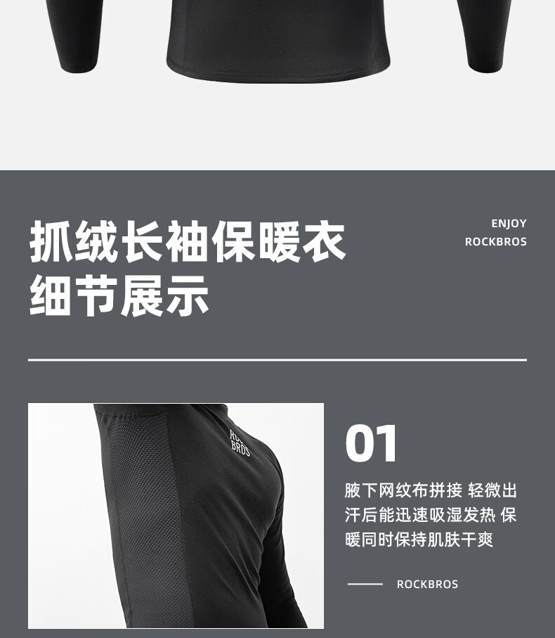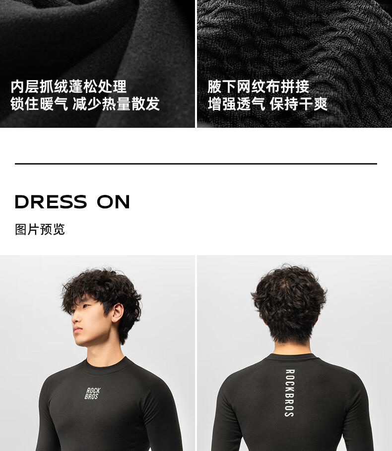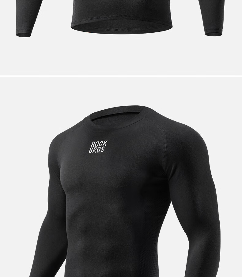ROCKBROS Autumn and Winter Warm Sweatshirt Long Sleeve Men's Mountain Road Bike Fleece Cycling Suit Inner Top Black 3XL 4XL