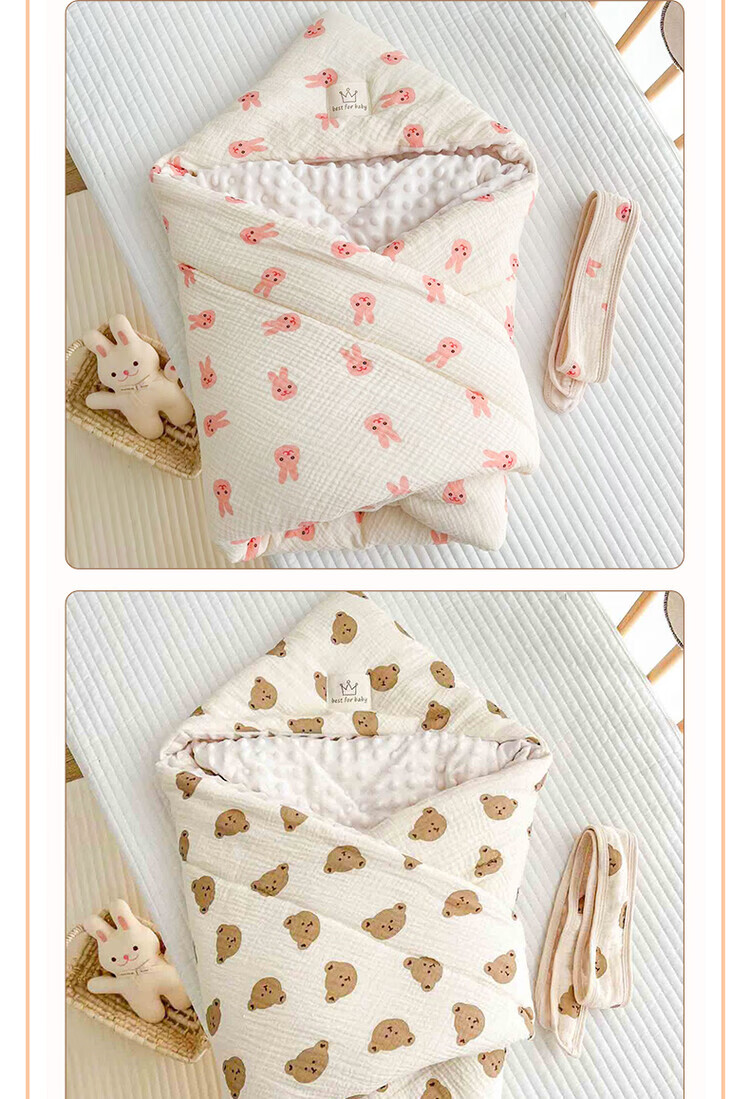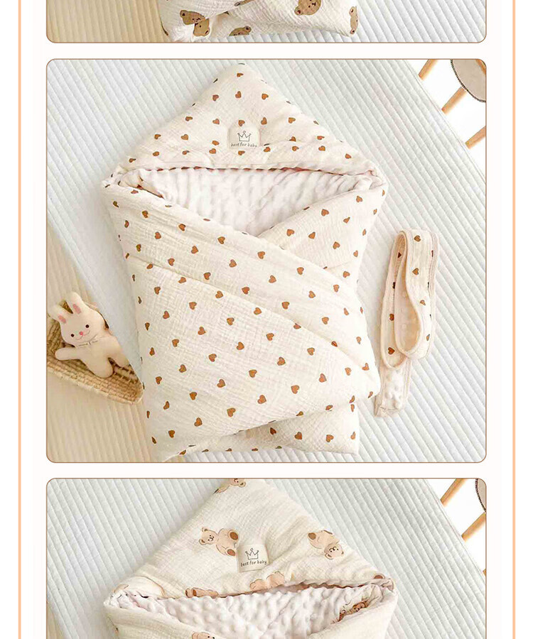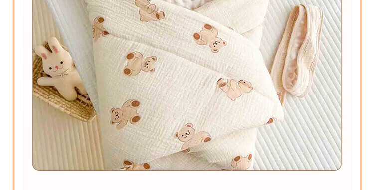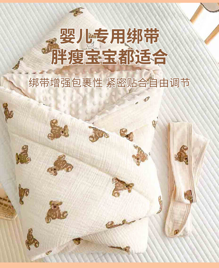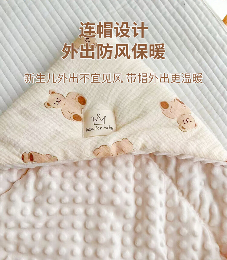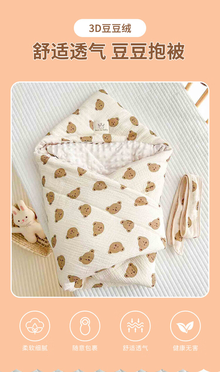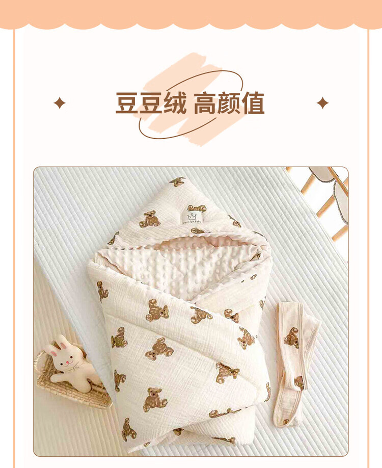 Cotton++ baby blanket, newborn blanket, anti-jumping bag, single bean velvet, pure cotton, Category A, spring, autumn and summer, swaddling for outings, bear head, comfort bean velvet, thickened 10-20 C, 95x95cm, Category A