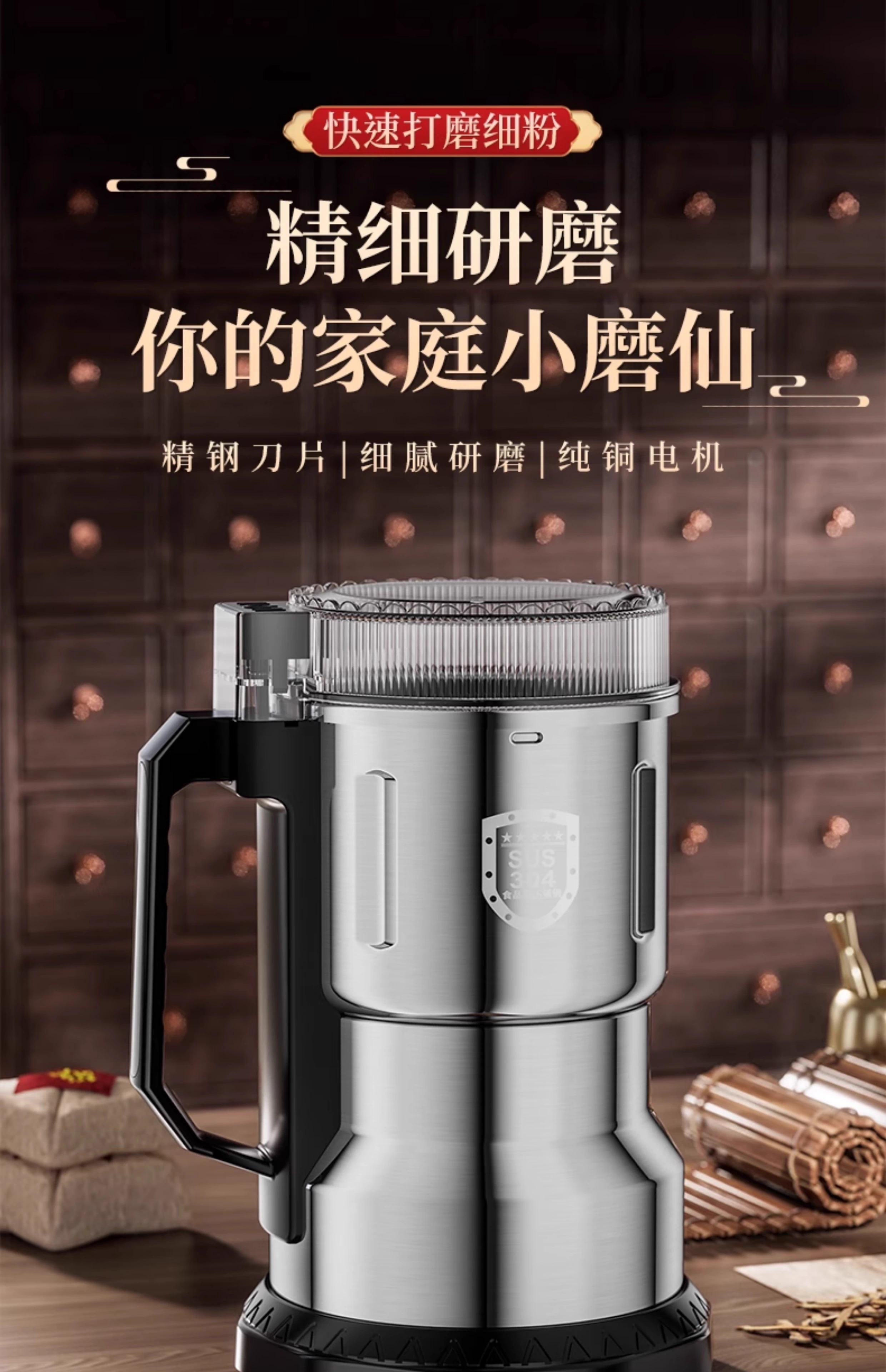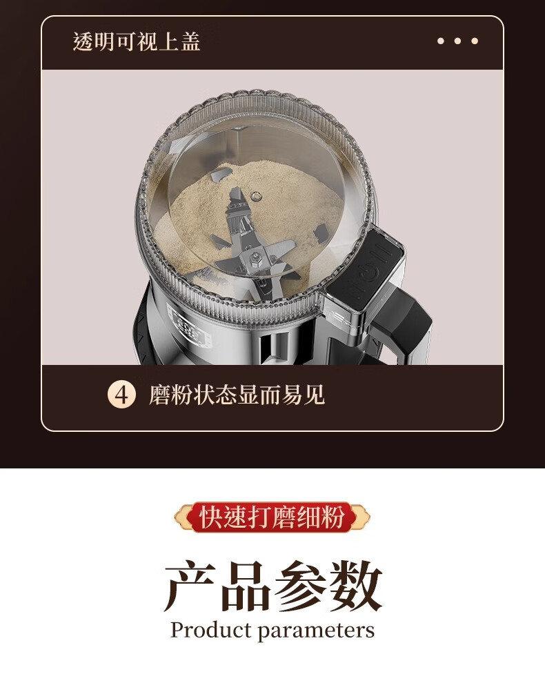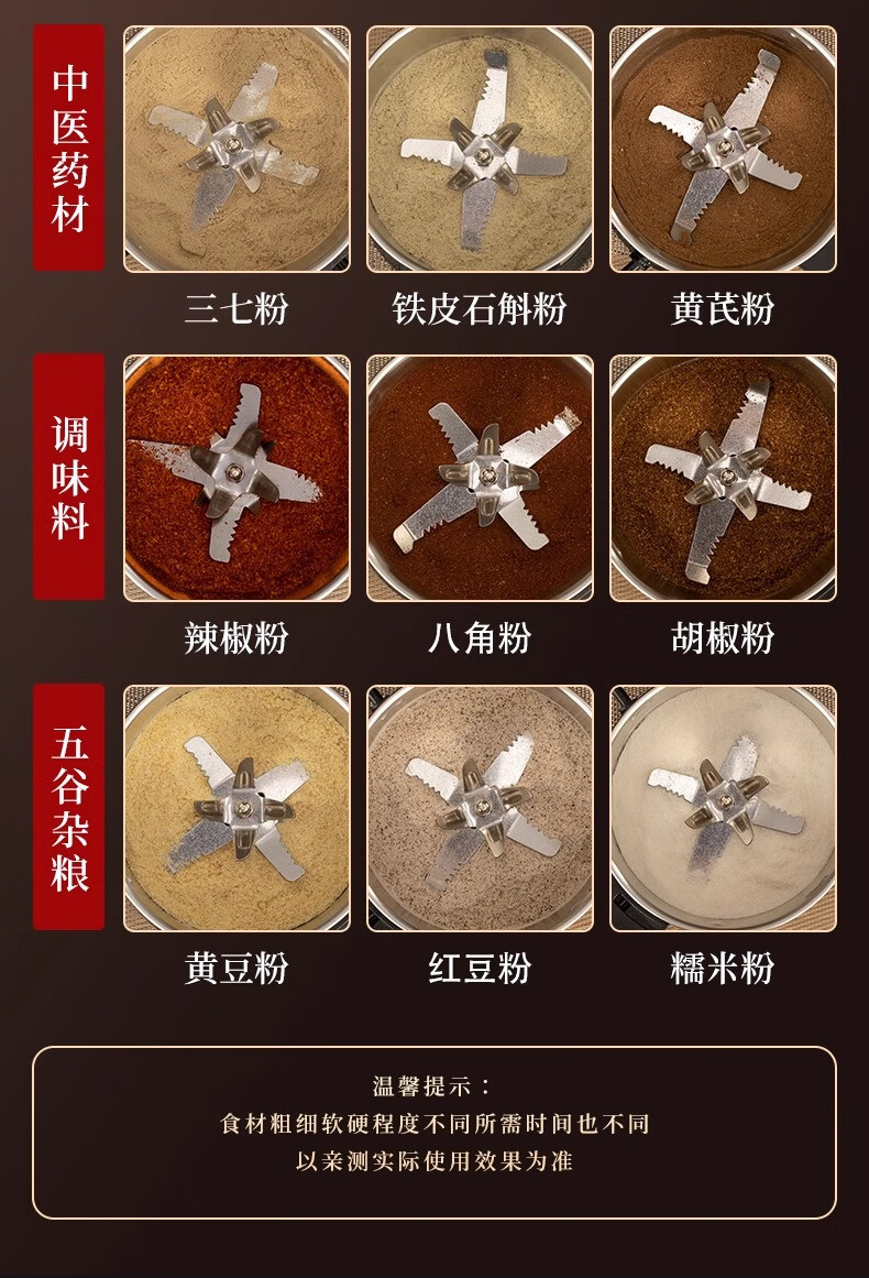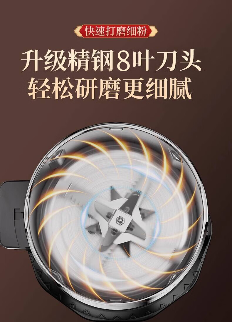 Baijie grinder ultra-fine grinder pulverizer Chinese herbal medicine household small notoginseng whole grain coffee bean grinder 800g 304 stainless steel Supreme Edition - Upgraded copper motor丨Eight-leaf stainless steel blade