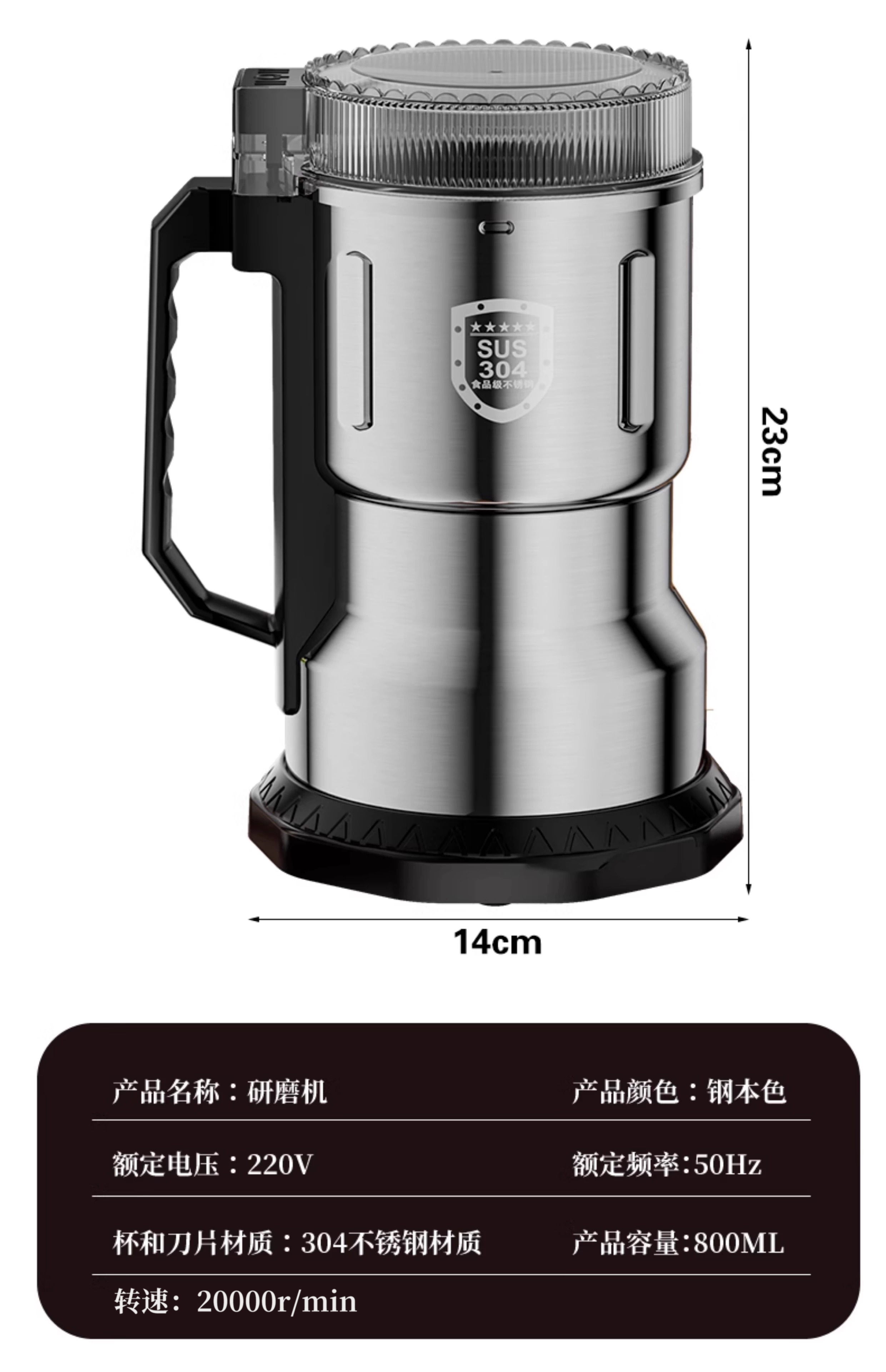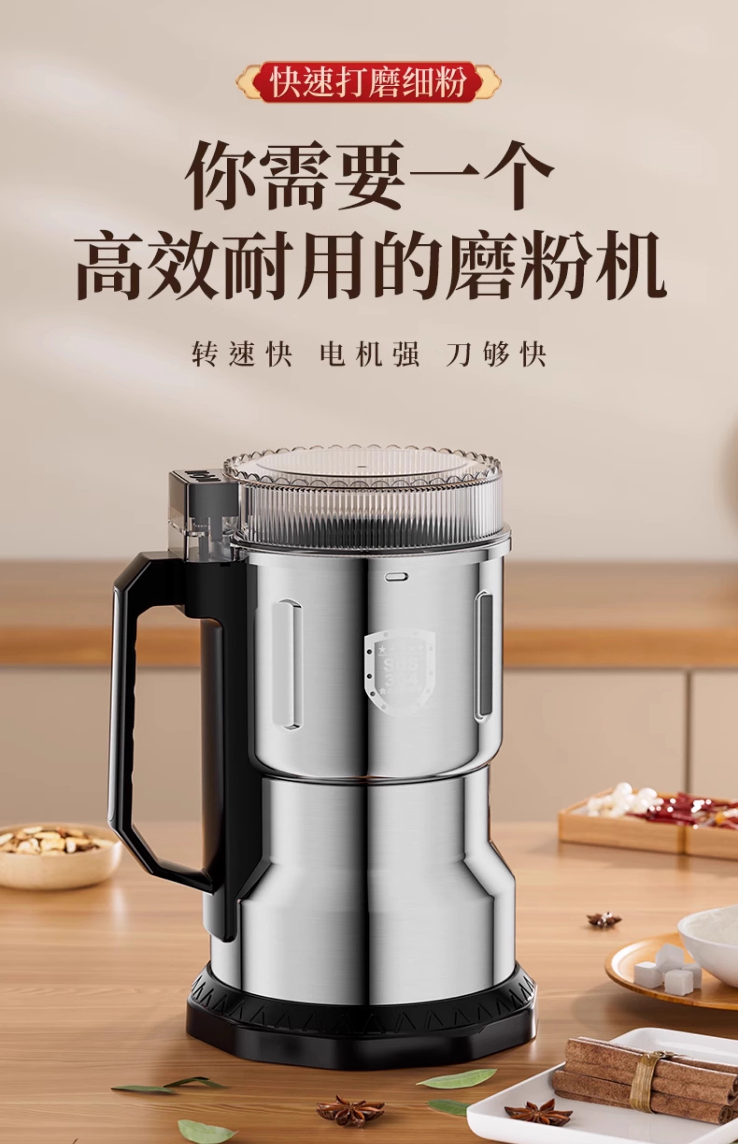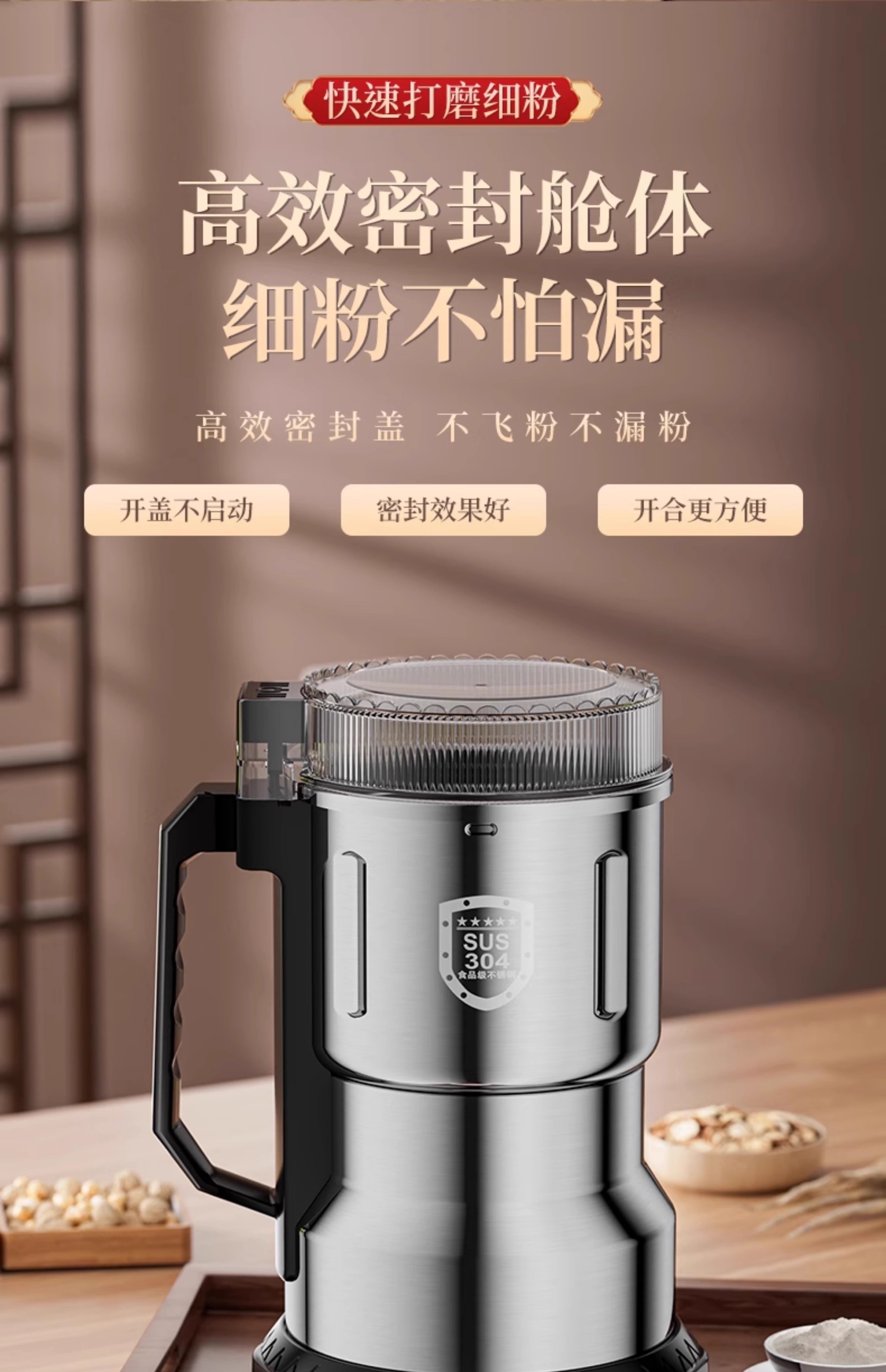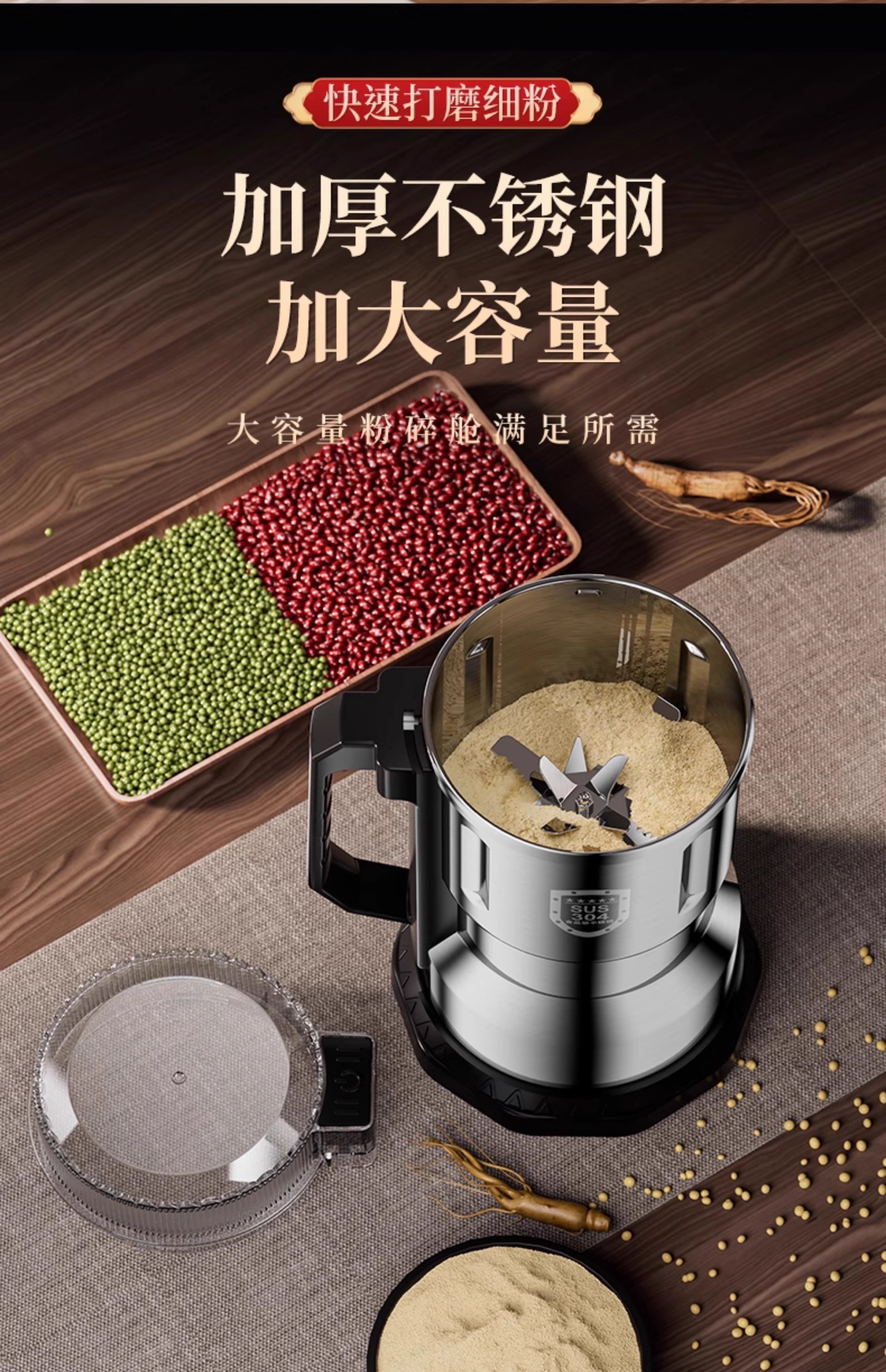 Baijie grinder ultra-fine grinder pulverizer Chinese herbal medicine household small notoginseng whole grain coffee bean grinder 800g 304 stainless steel Supreme Edition - Upgraded copper motor丨Eight-leaf stainless steel blade
